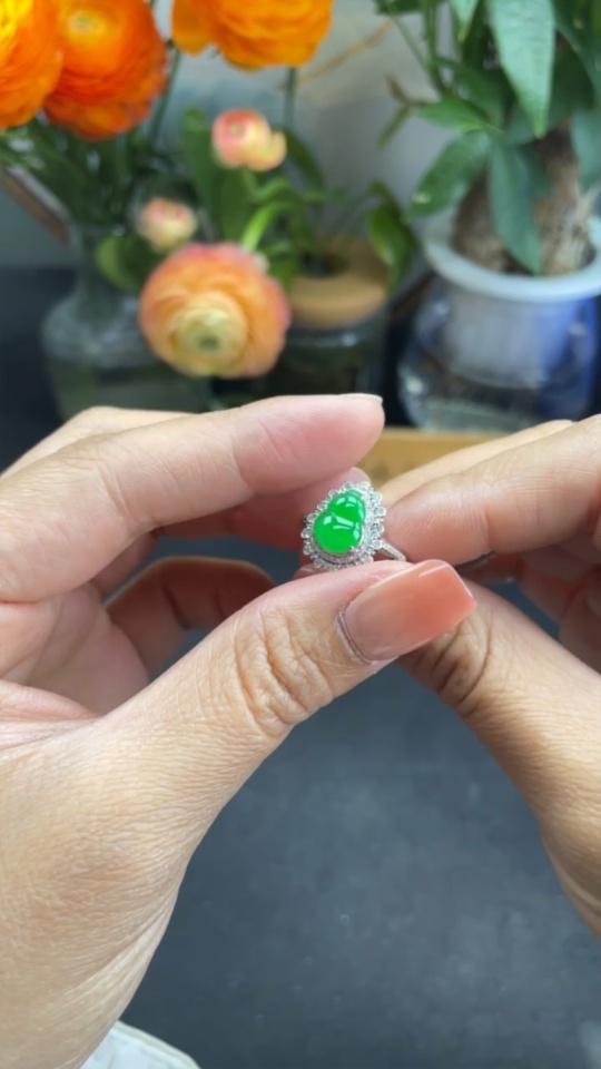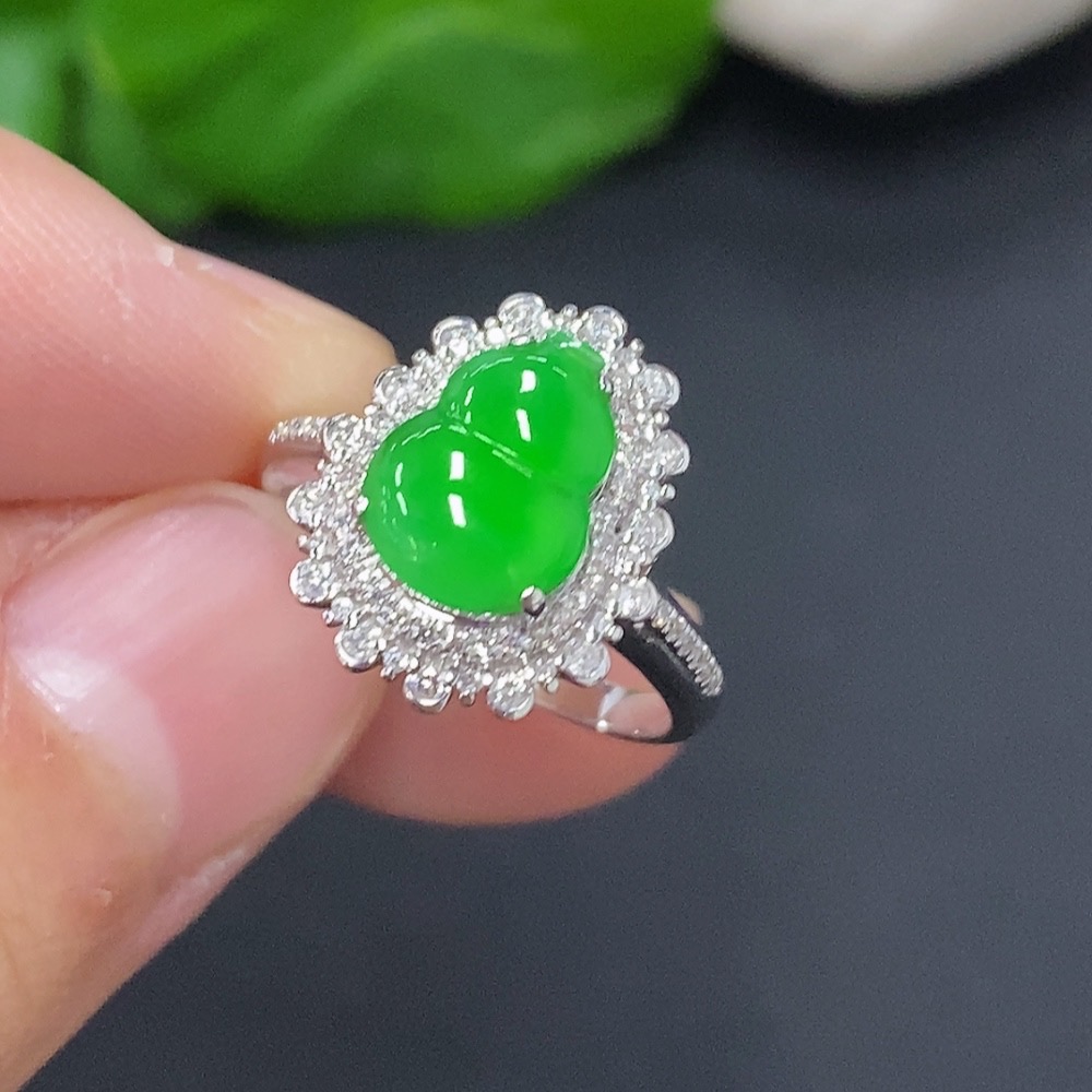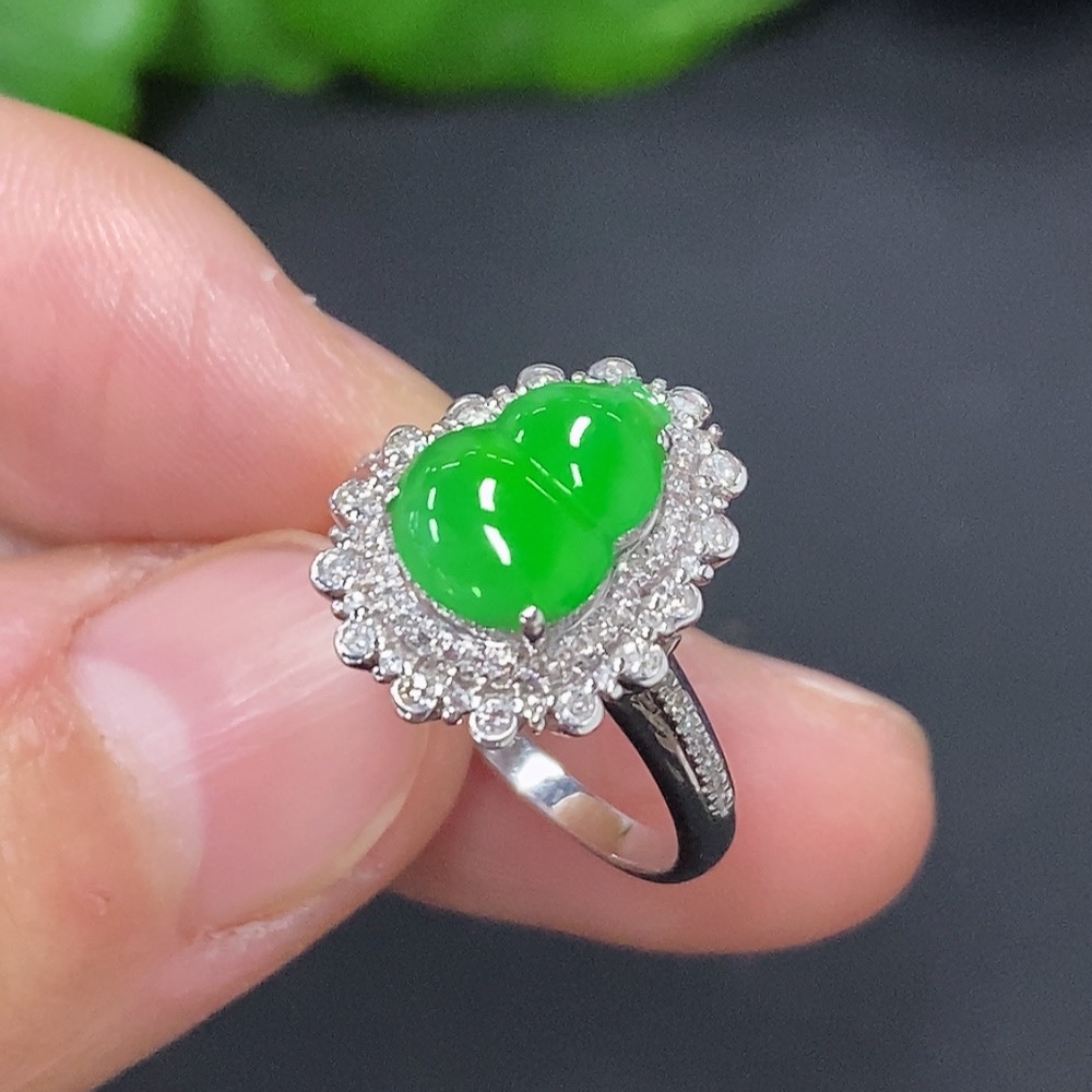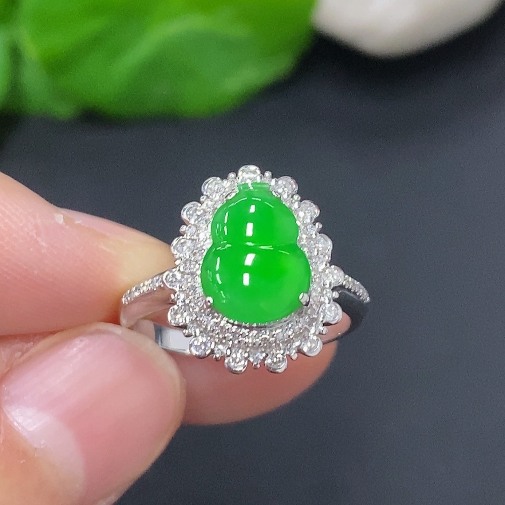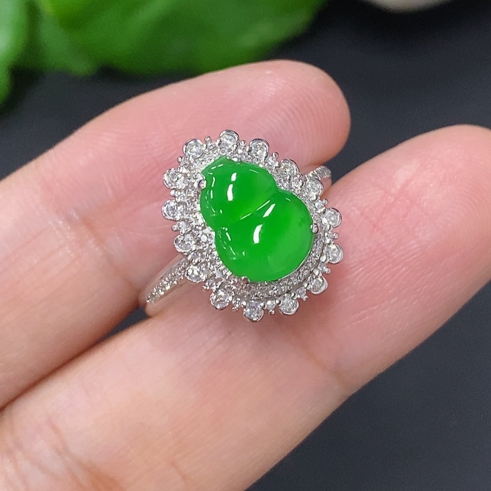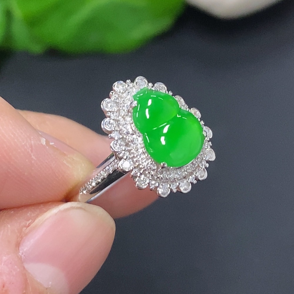 Jadeite gourd inlaid ring 18K gold size 11 total weight about 3.4g (with diamond accent)