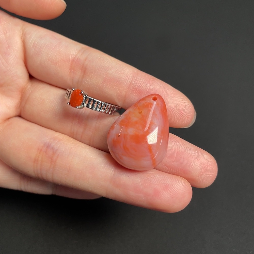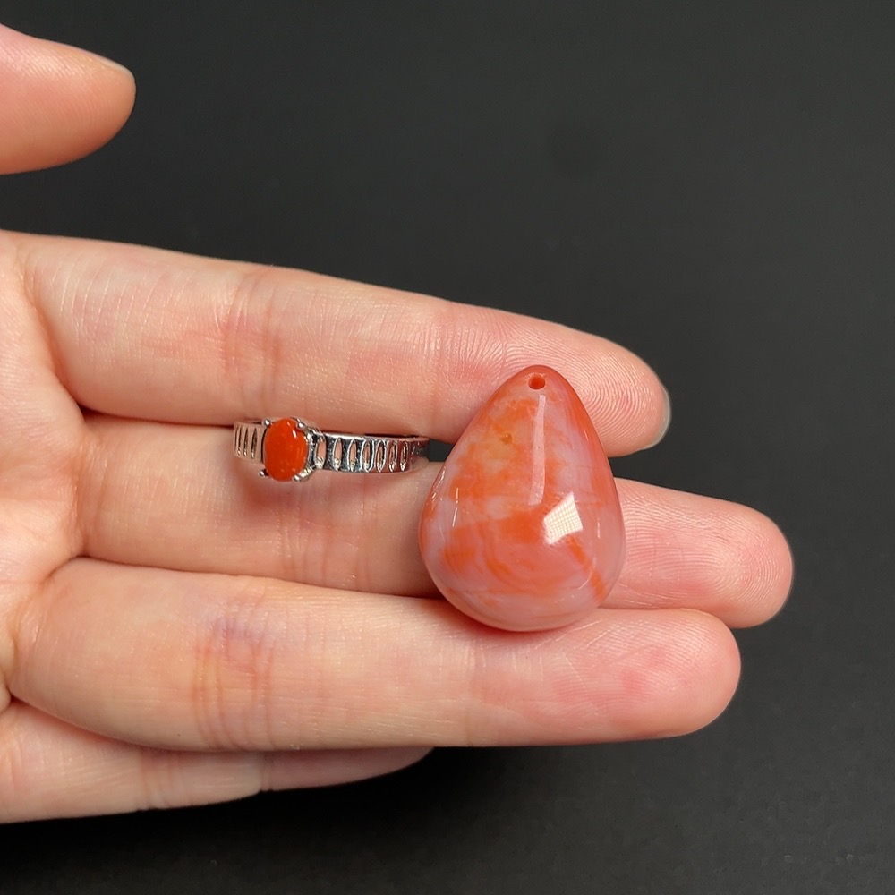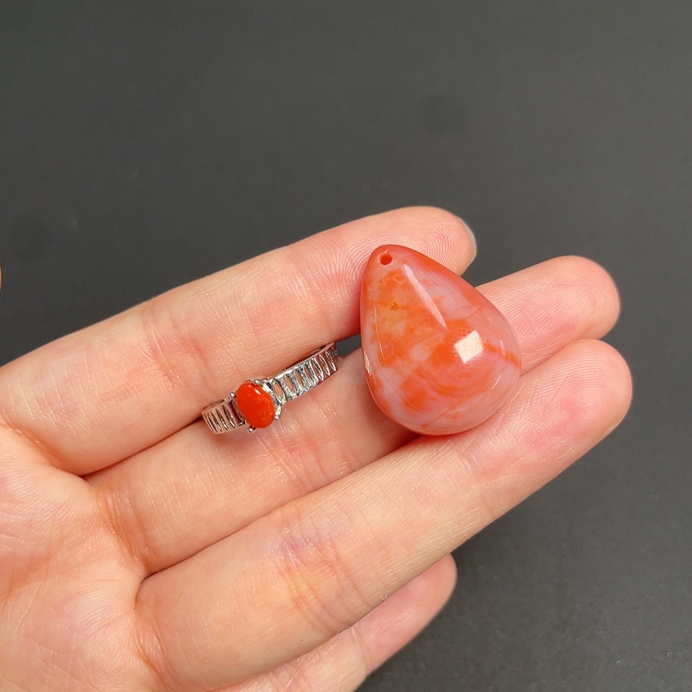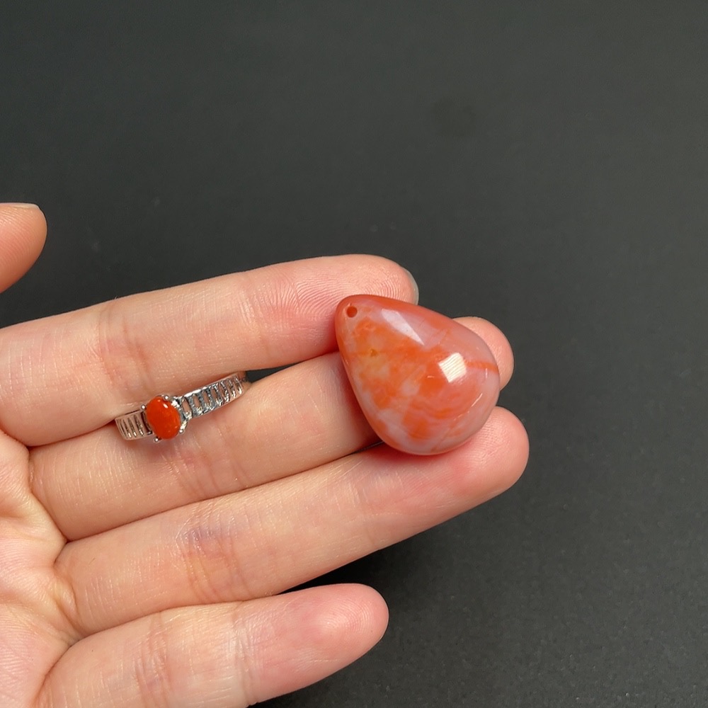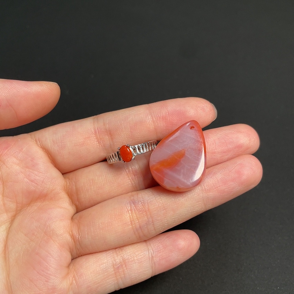Red Agate Inlaid Ring + Pendant, Non-Gold Inlay, Total Weight Approx. 8.25g, Visible Organic Matter