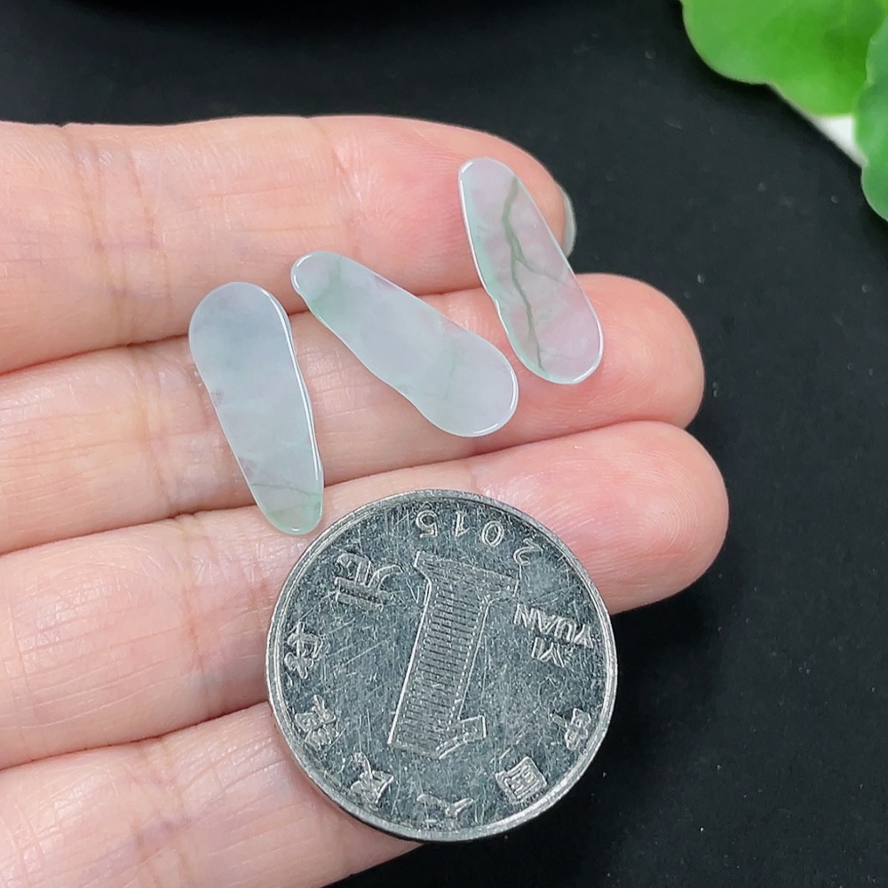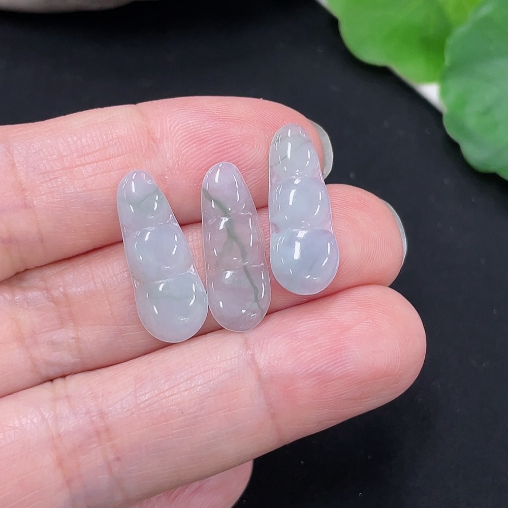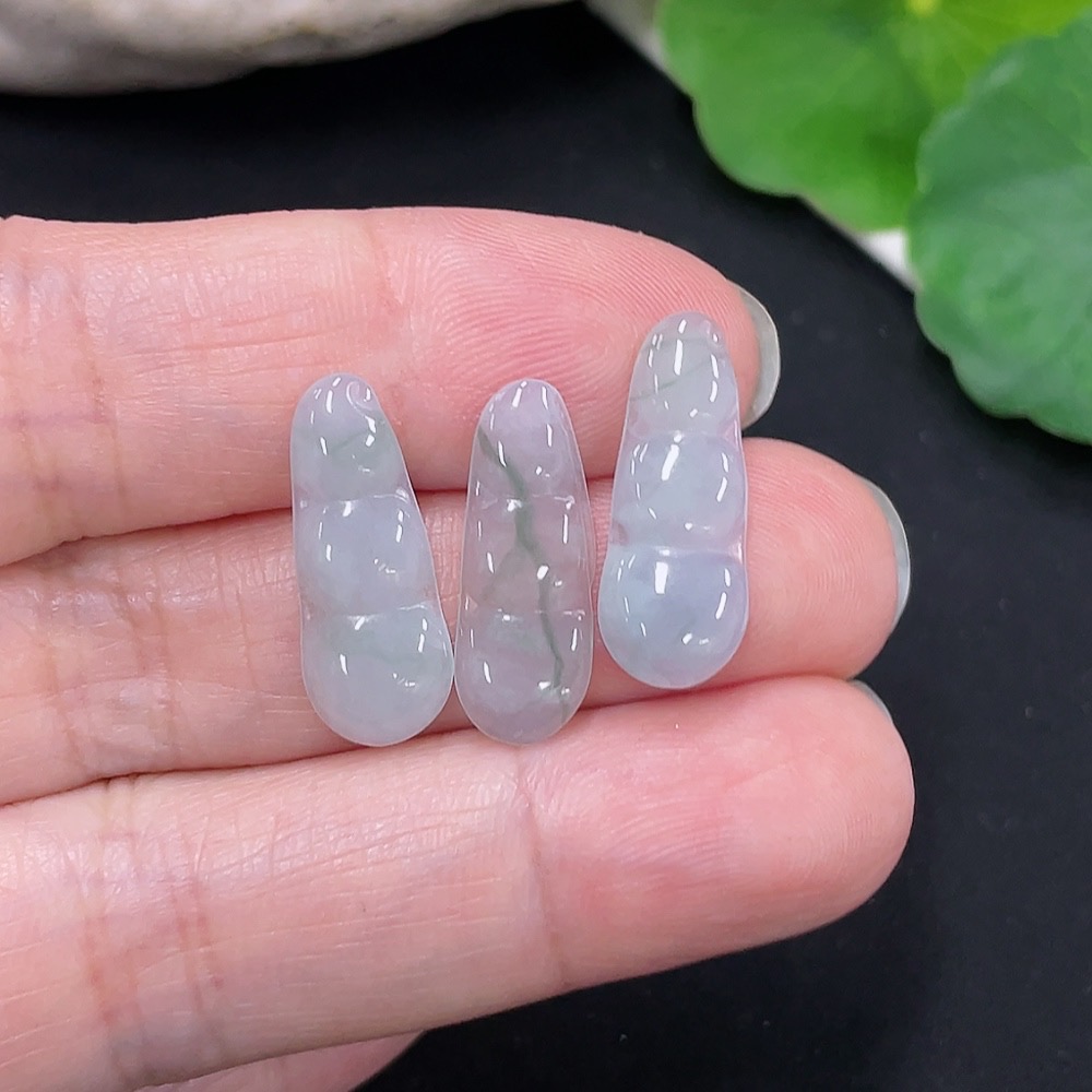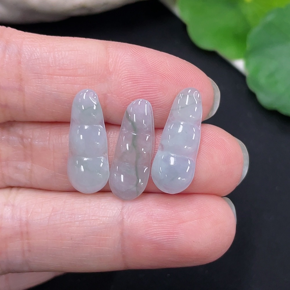 Jadeite Auspicious Bean Inlay Set Sell as a Lot