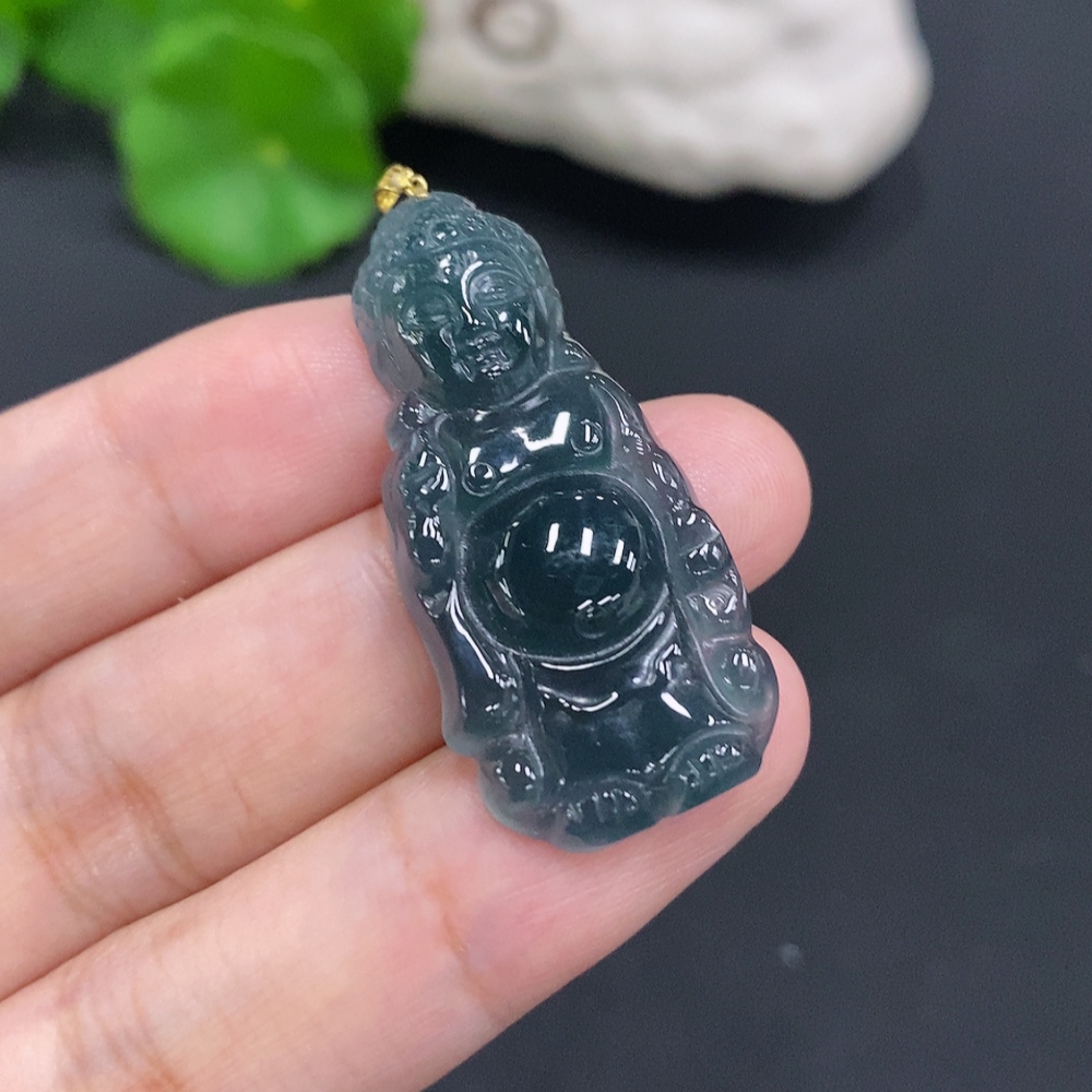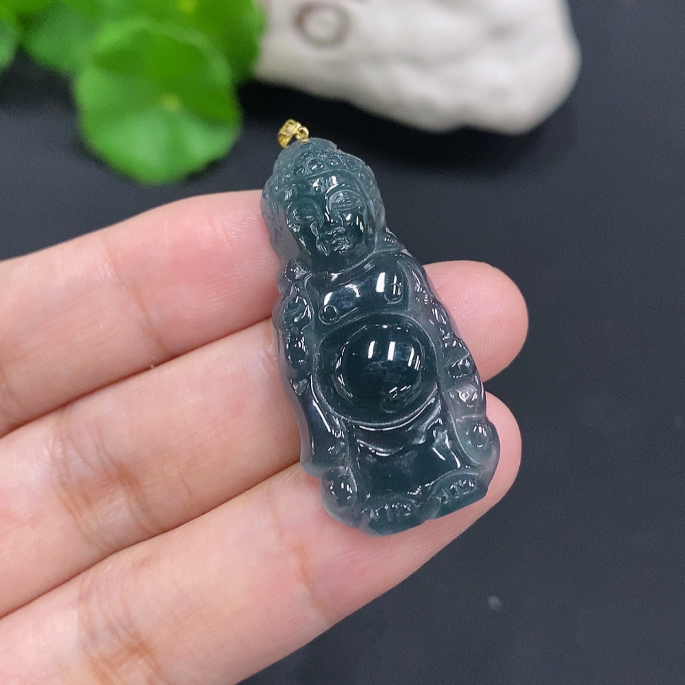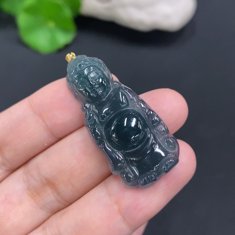 Jadeite Buddha Pendant with 18K Gold Clasp, Total Weight Approximately 6.1g