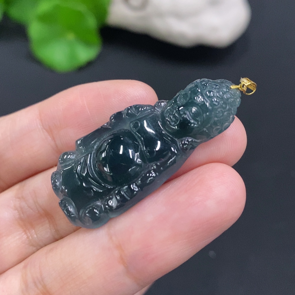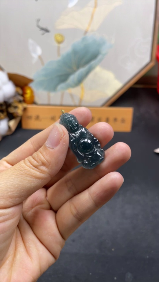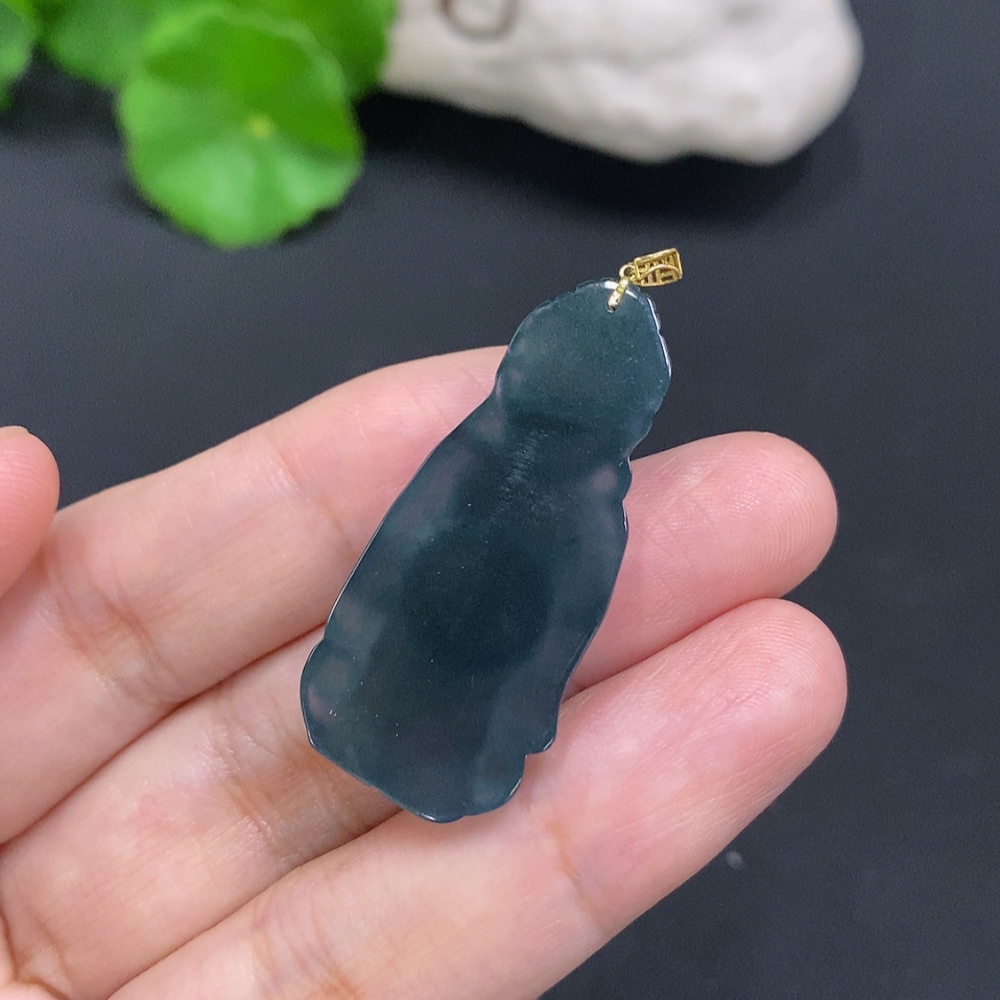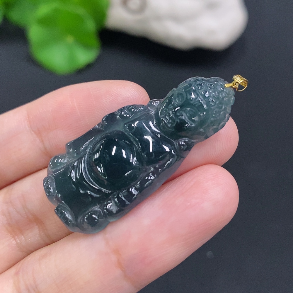 Jadeite Buddha Pendant with 18K Gold Clasp, Total Weight Approximately 6.1g