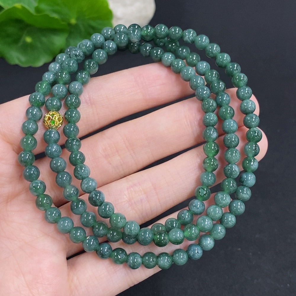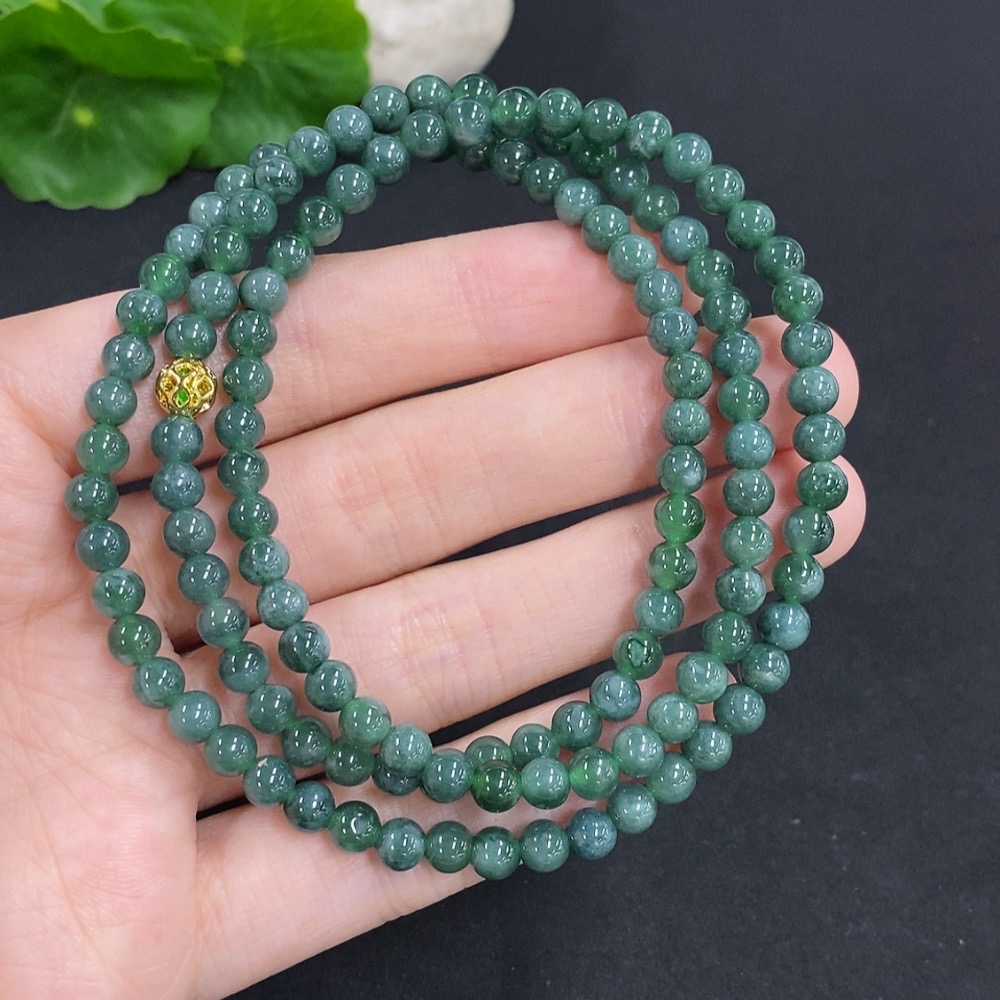 Jadeite Bead Necklace Non-Gold Total Weight Approx. 27g Size About 4.8mm