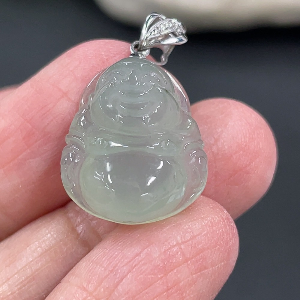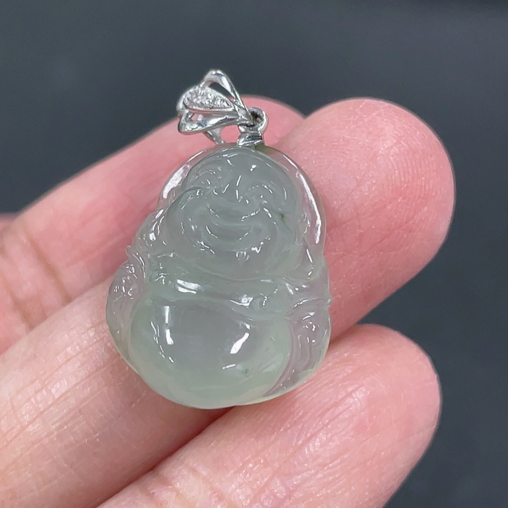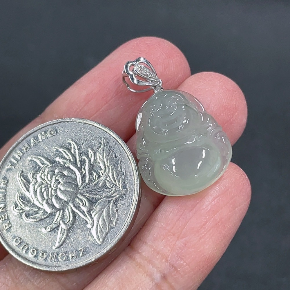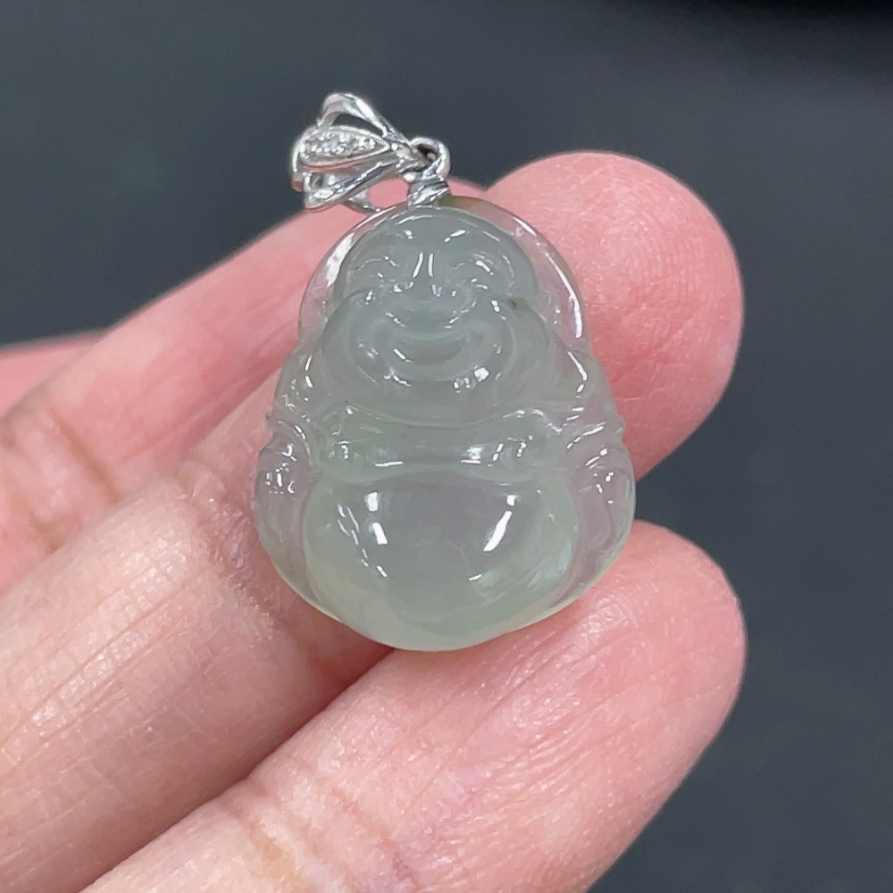 Jadeite Buddha Pendant with Unmarked Clasp, Approximately 75% Au Content, Diamond Accents, Total Weight Approximately 2.9g