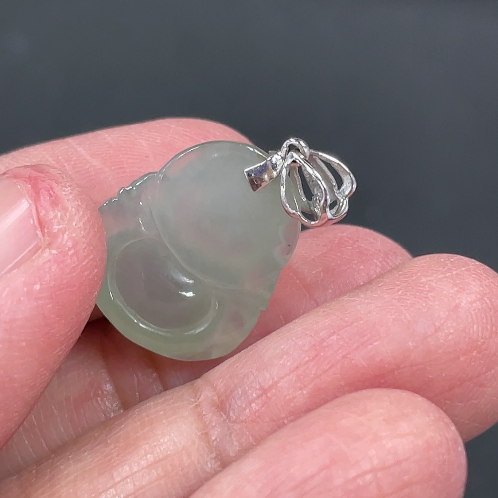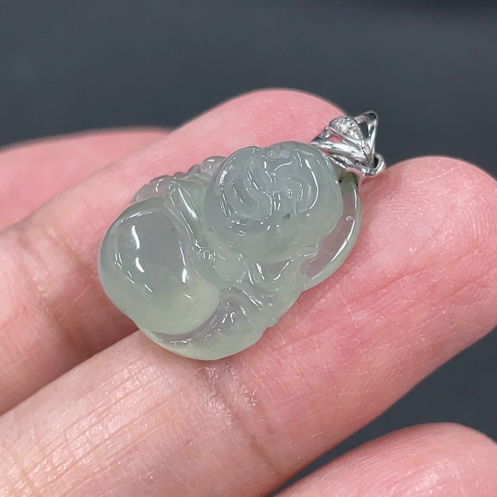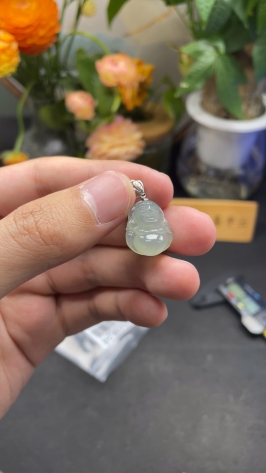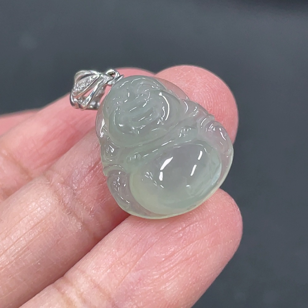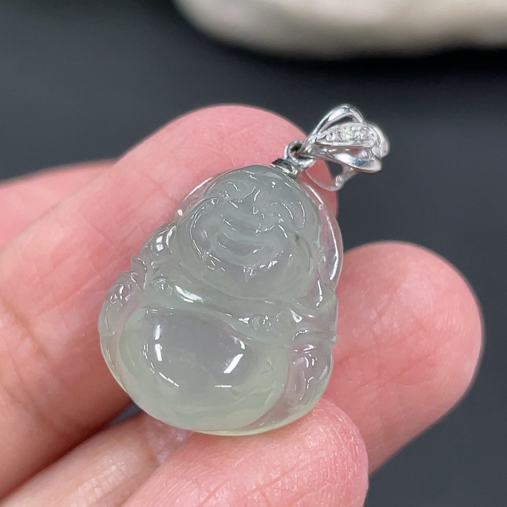 Jadeite Buddha Pendant with Unmarked Clasp, Approximately 75% Au Content, Diamond Accents, Total Weight Approximately 2.9g