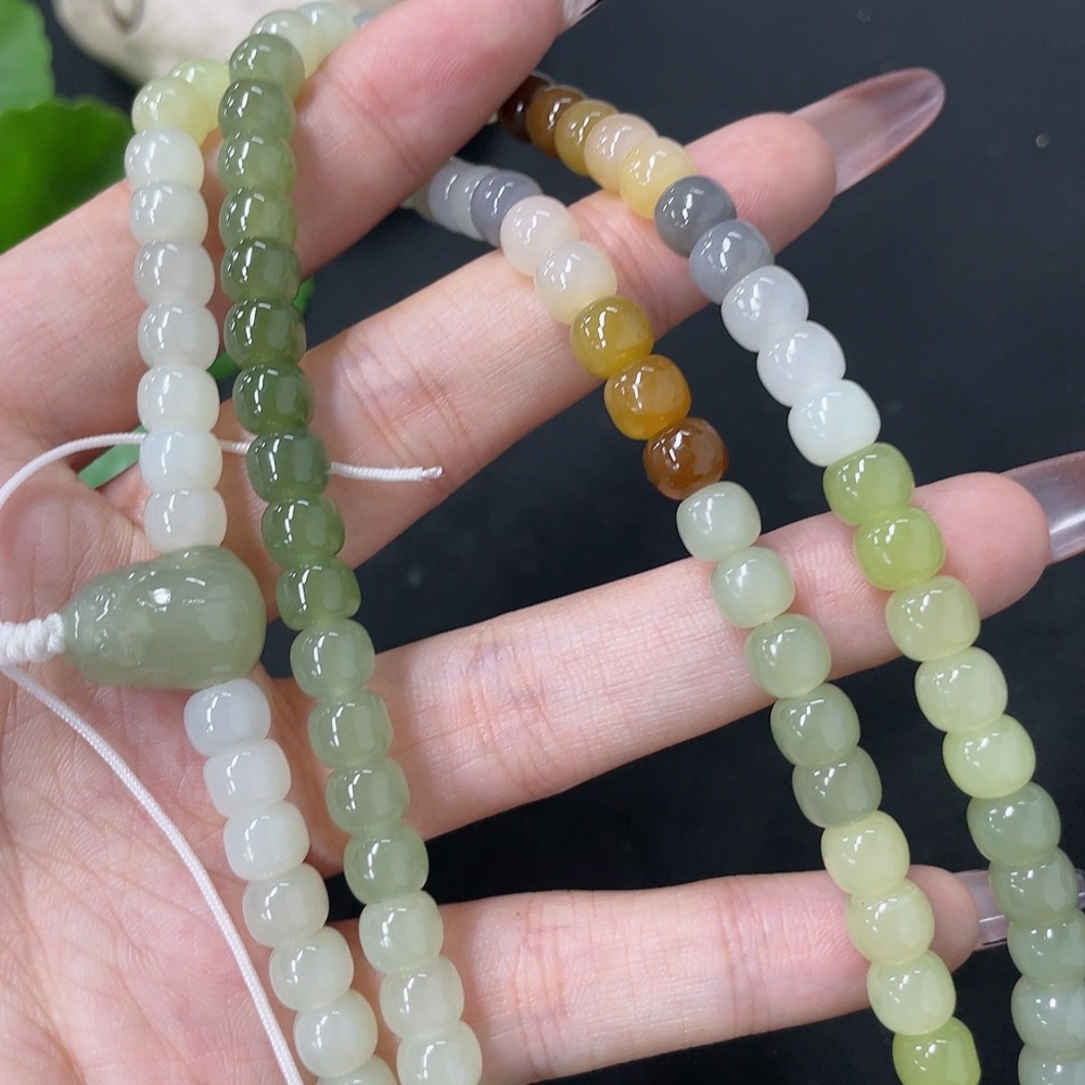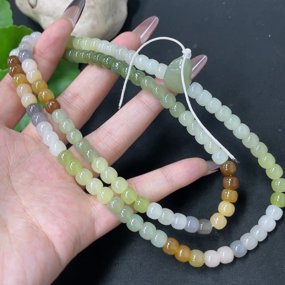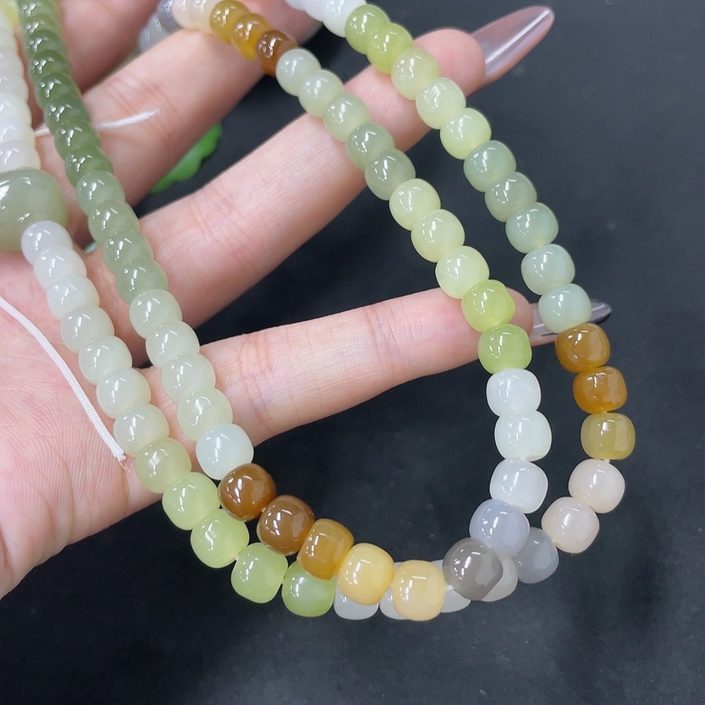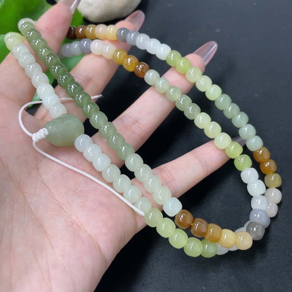 Hetian Jade Bead Necklace, Approx. 6.7mm, Total Weight Approx. 58.2g