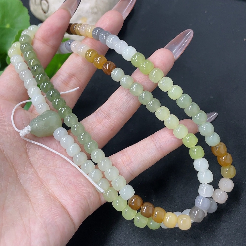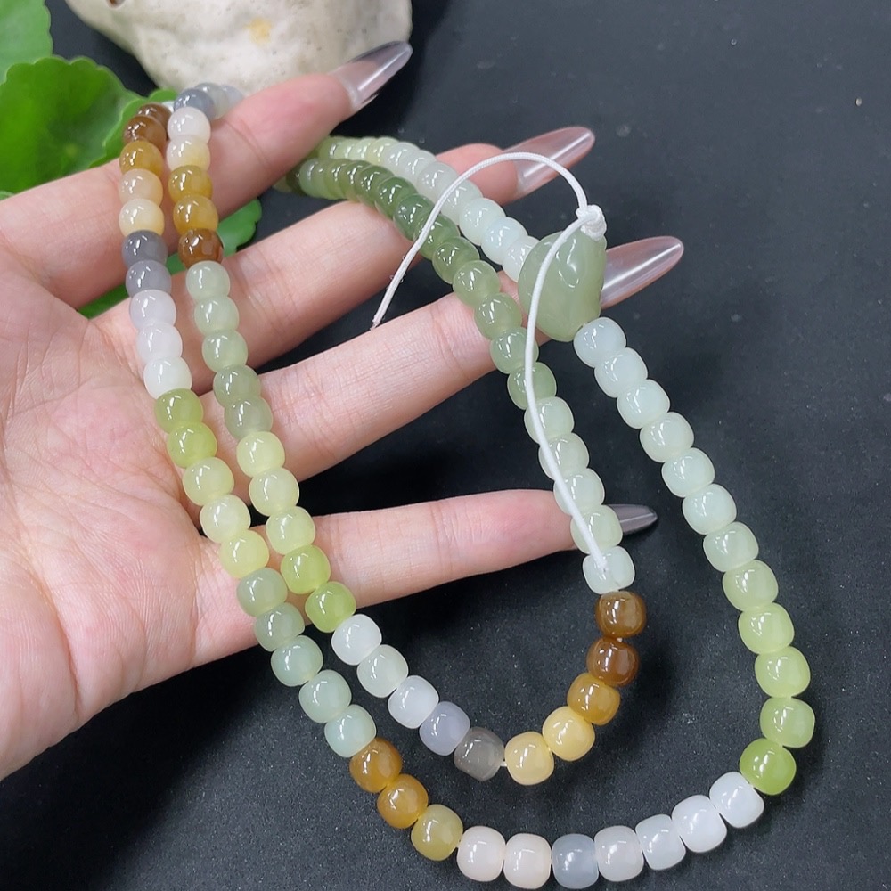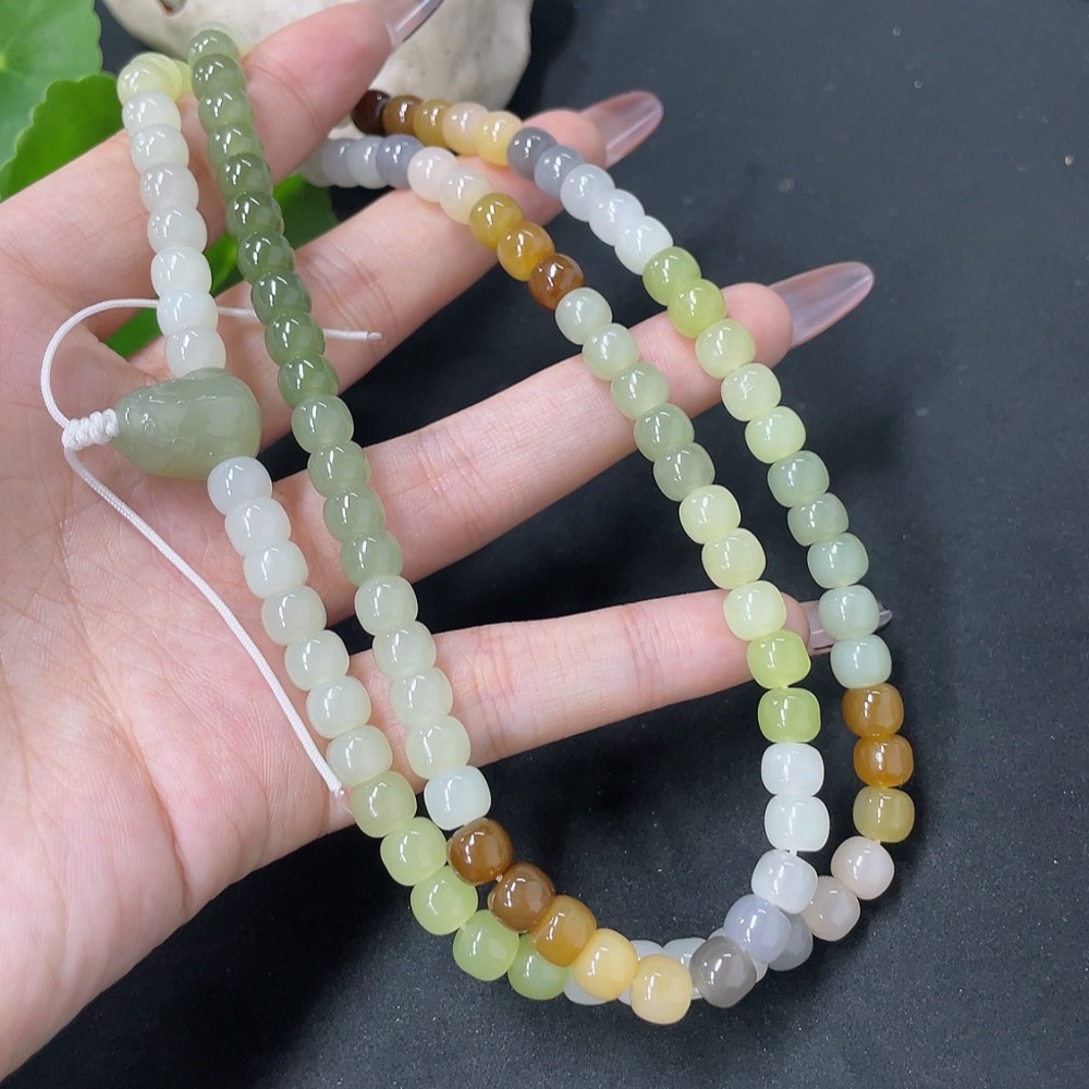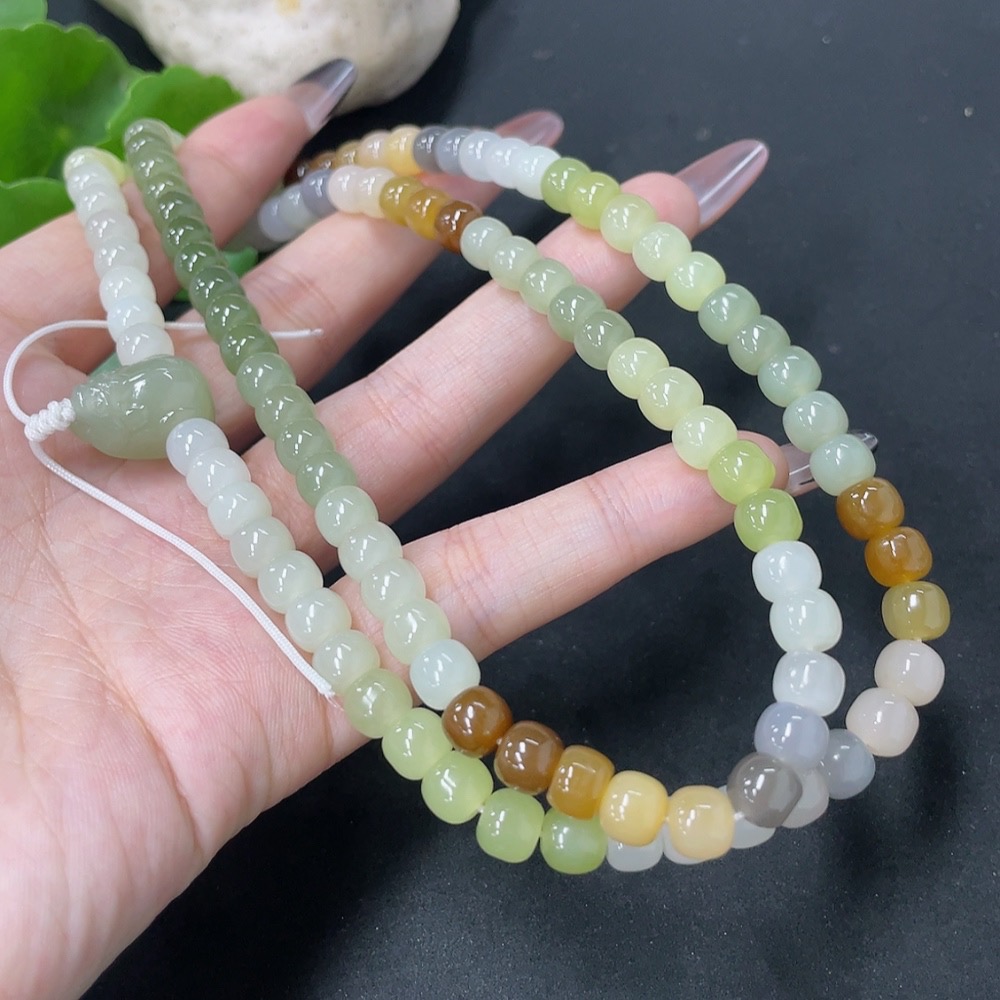 Hetian Jade Bead Necklace, Approx. 6.7mm, Total Weight Approx. 58.2g