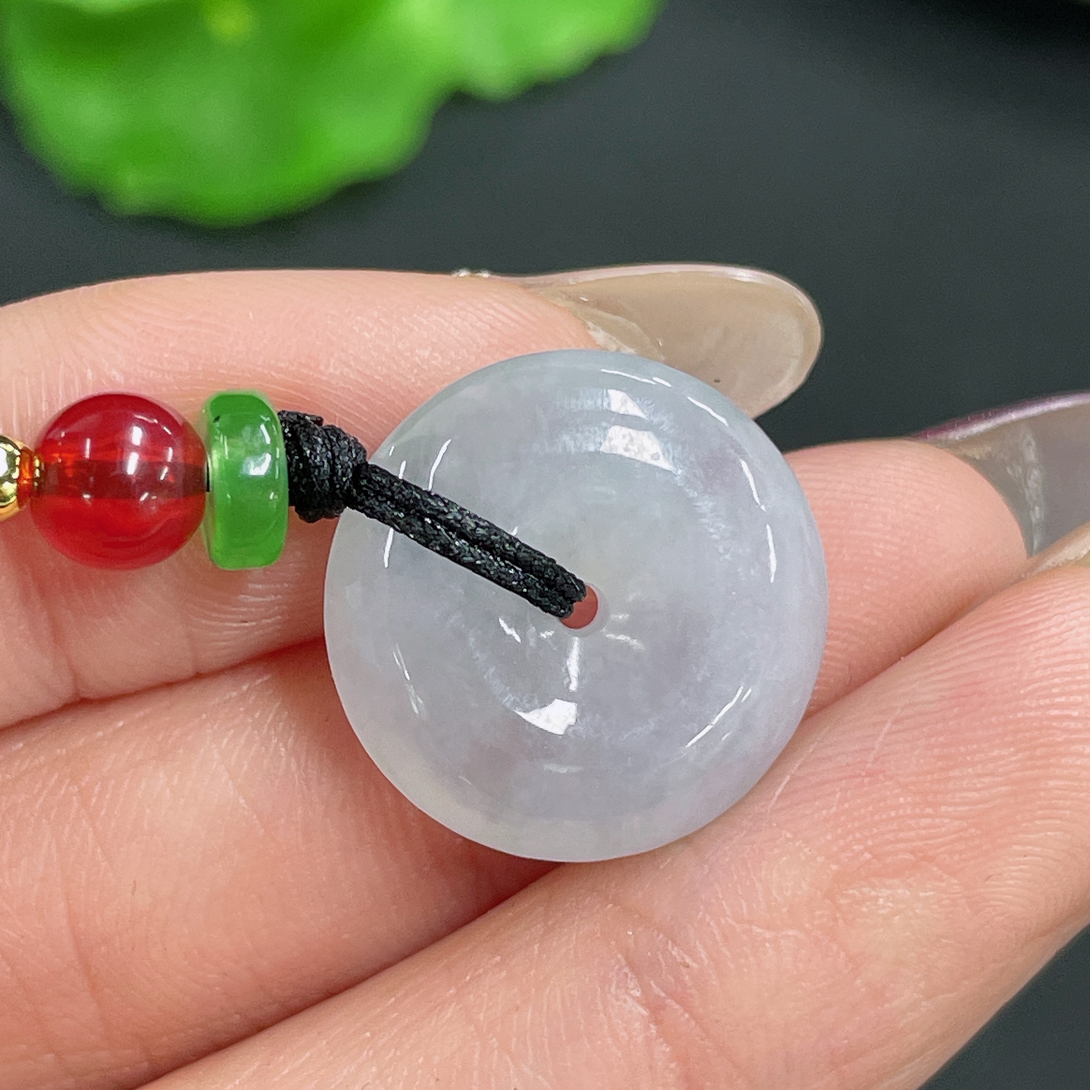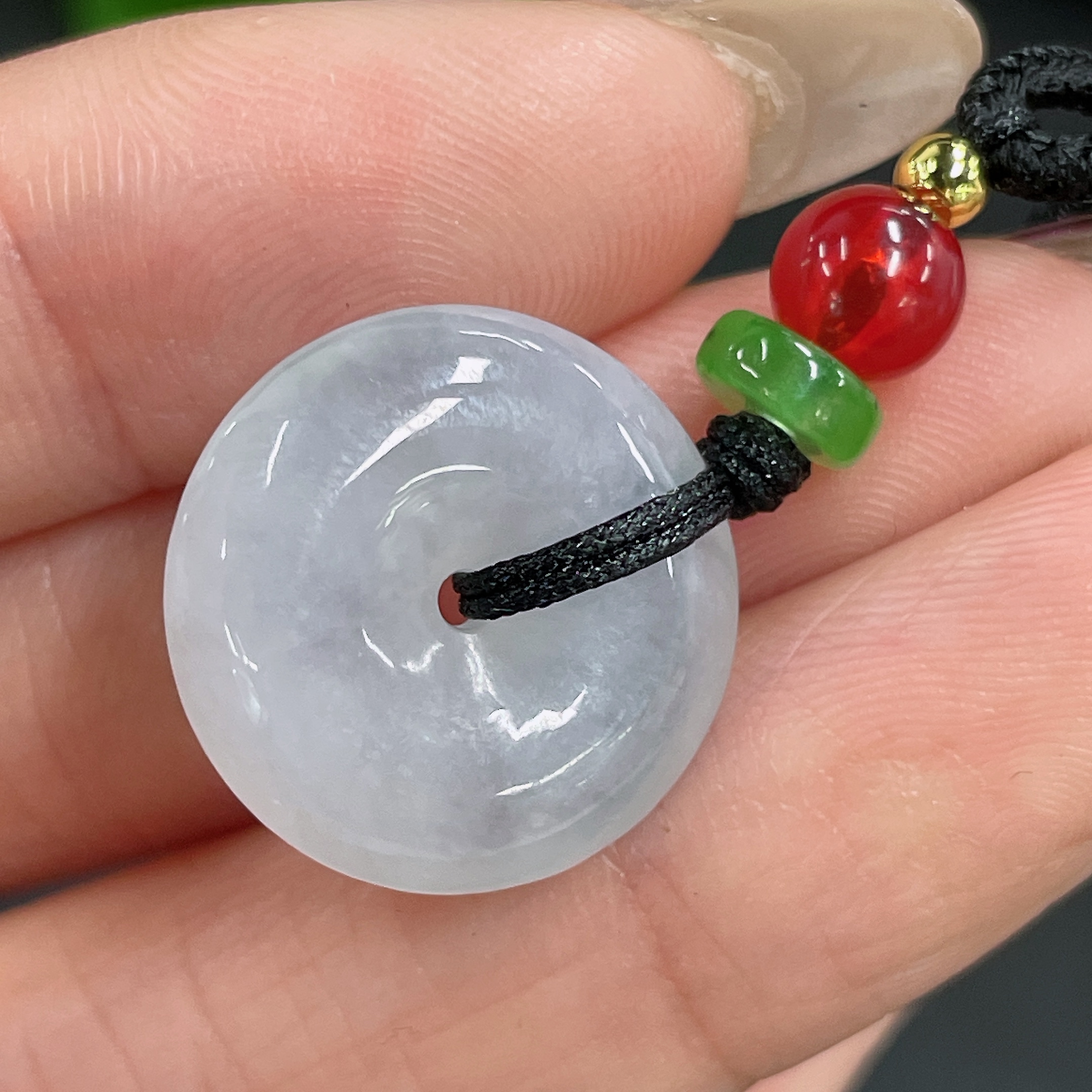 Jadeite Pendant Peace Knot with Non-Grade A Beads and Rope Total Weight Approx. 5.17g