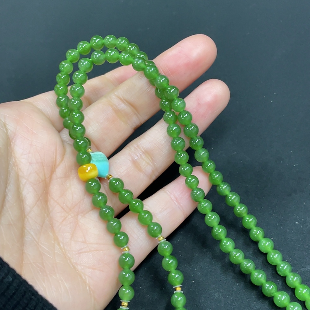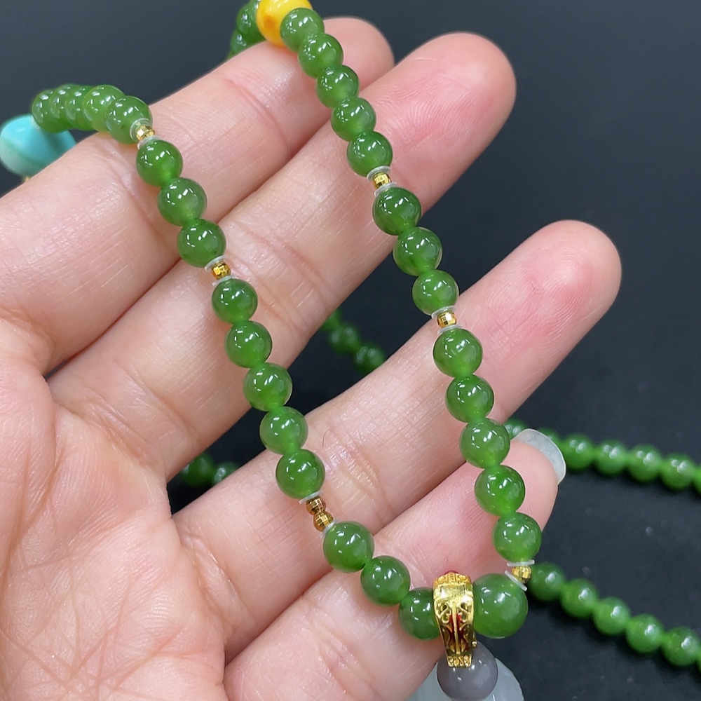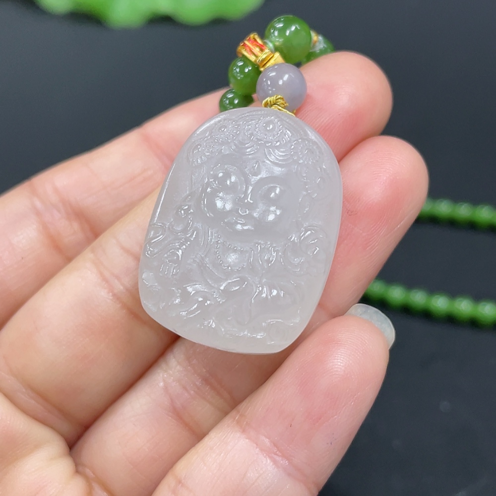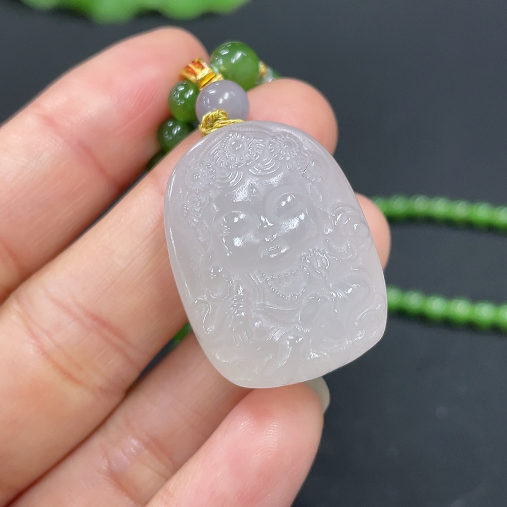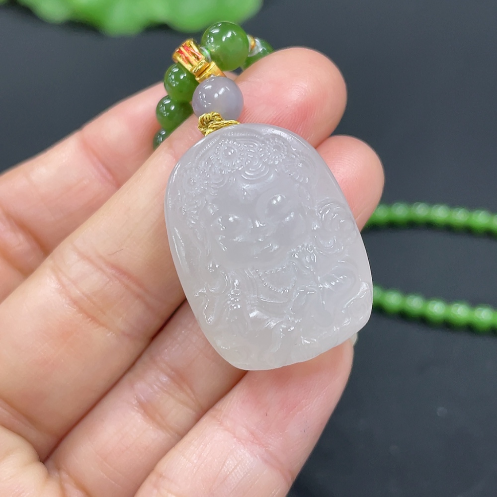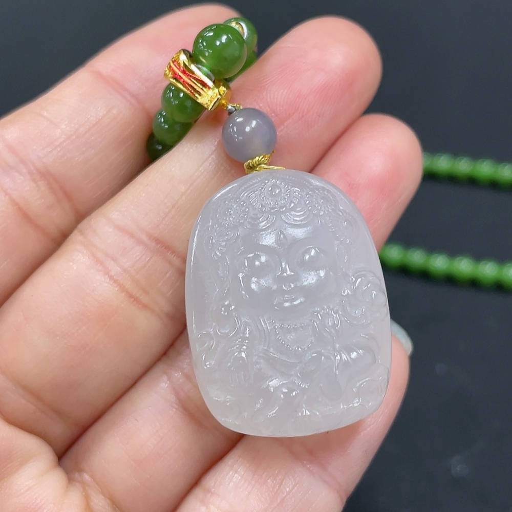 Hetian Jade Pendant Guanyin Pendant Body + Marked Non-Gold Rest 18k Gold Total Weight Approx. (Including Chain) 33.2g Beads Not Hetian Jade