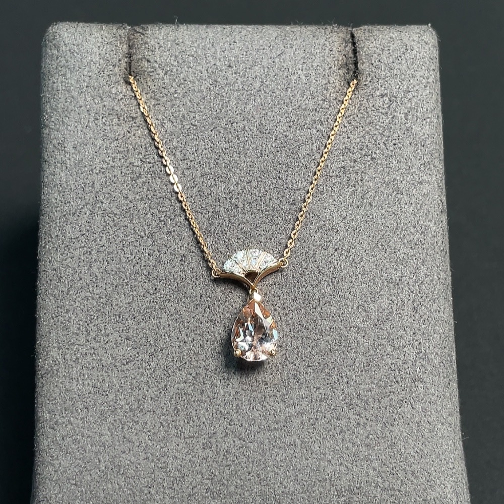 Beryl Inlaid Necklace, 18k Gold, Total Weight Approximately 2.72g, Color Origin Undetermined, Accented with Diamonds