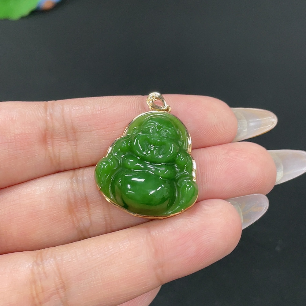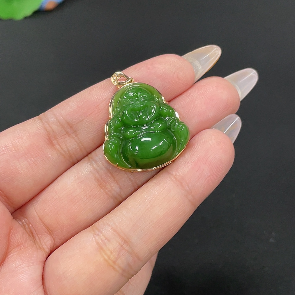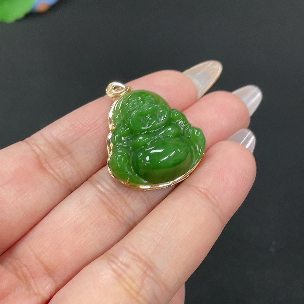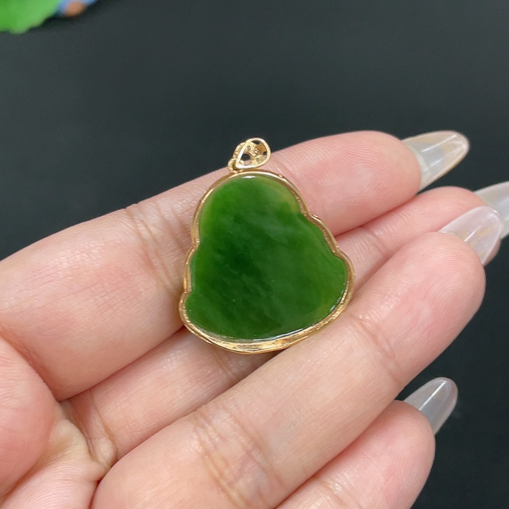 Hetian Jade Inlaid Pendant - Buddha, Total Weight Approx. 5.4g, 18K Gold with Diamond Accents