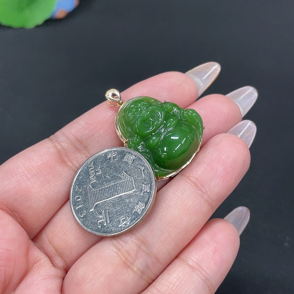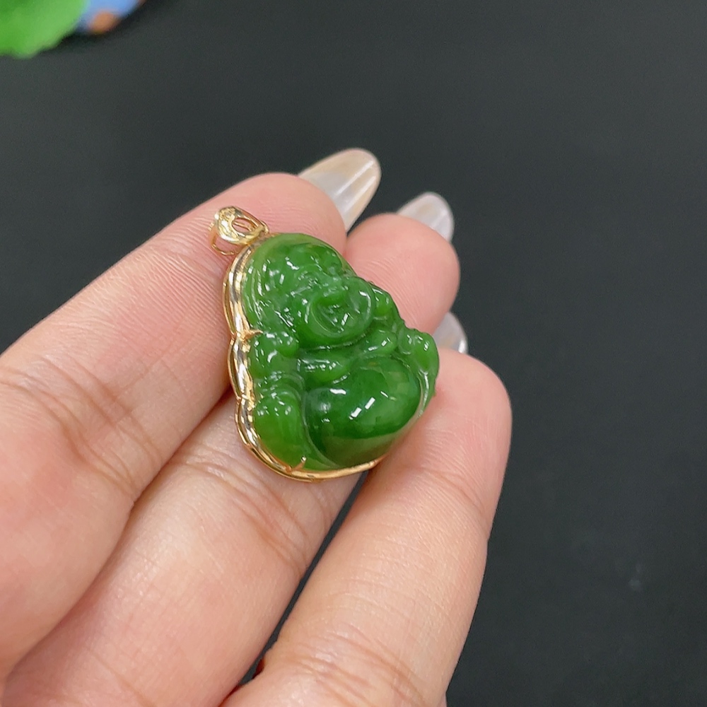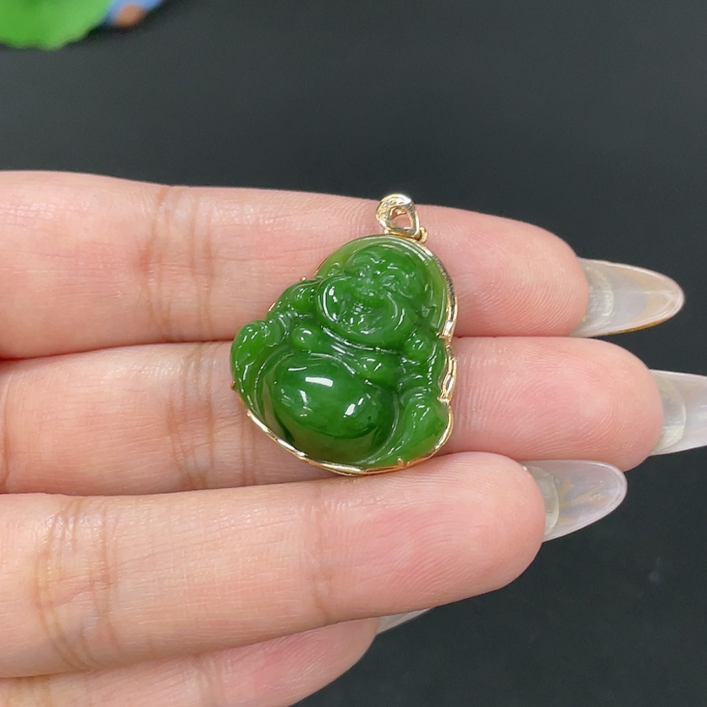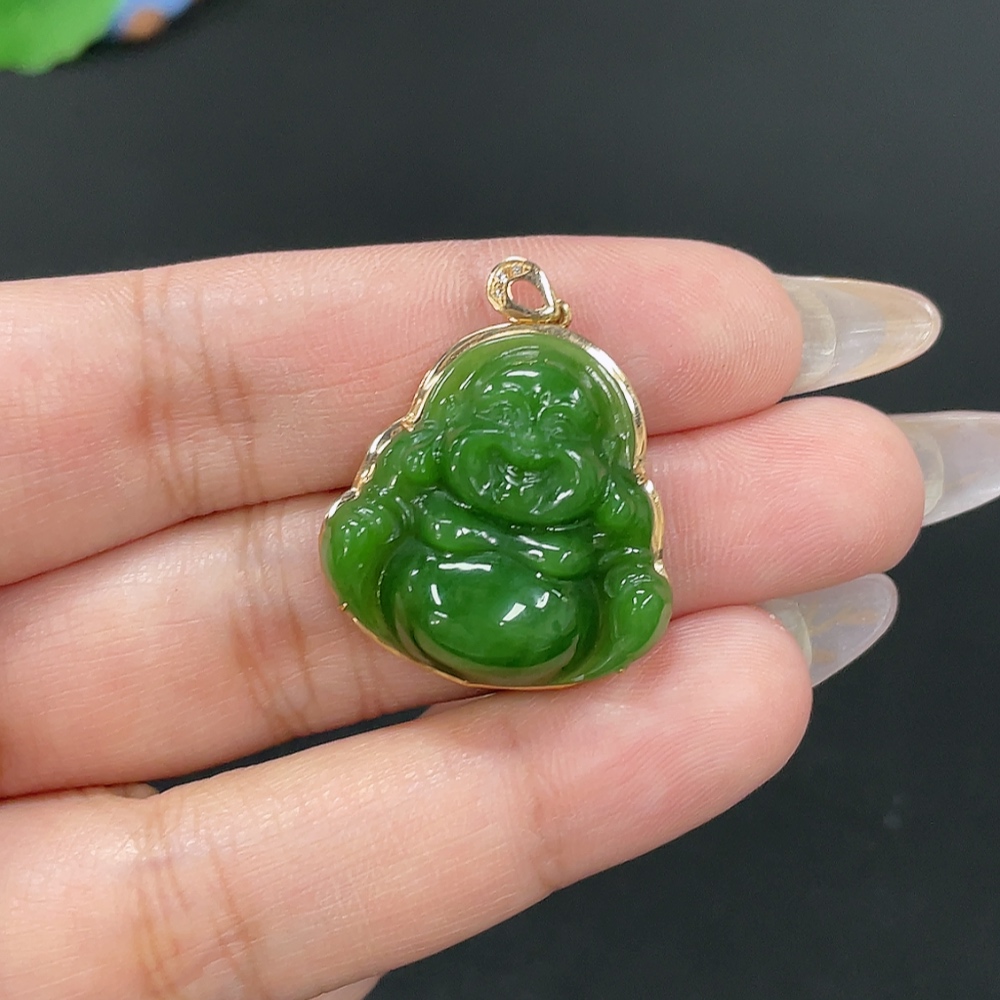 Hetian Jade Inlaid Pendant - Buddha, Total Weight Approx. 5.4g, 18K Gold with Diamond Accents