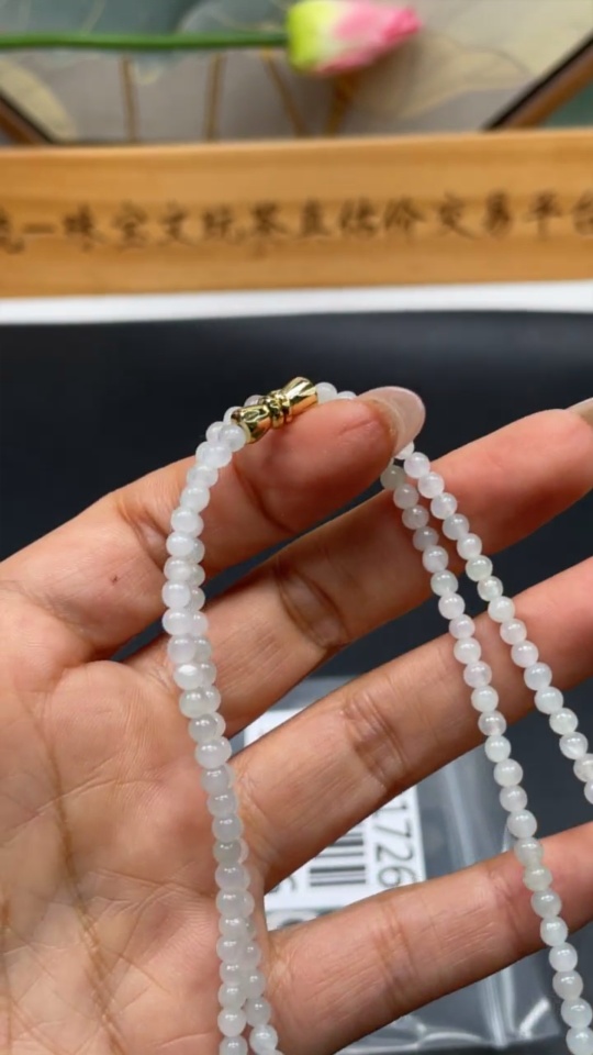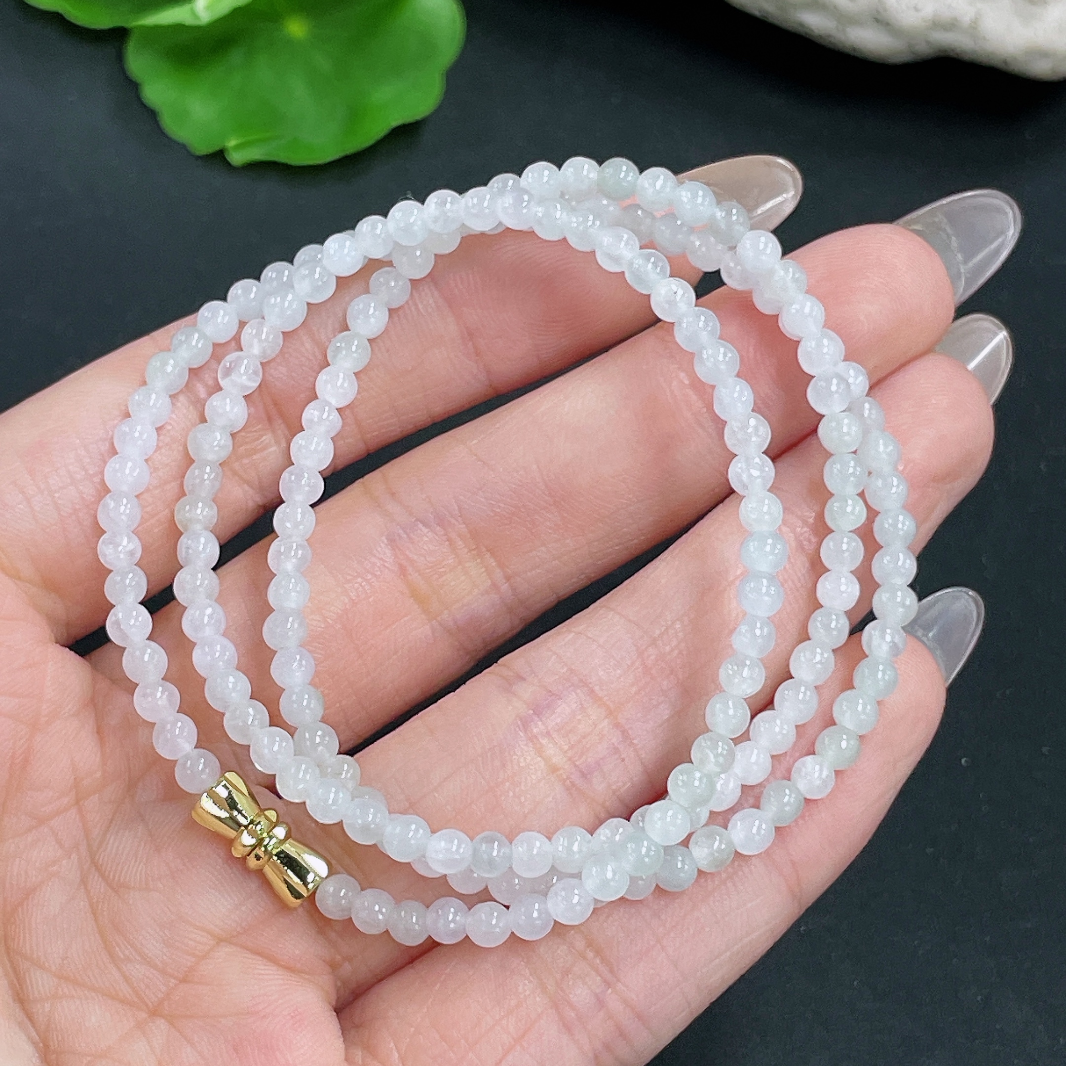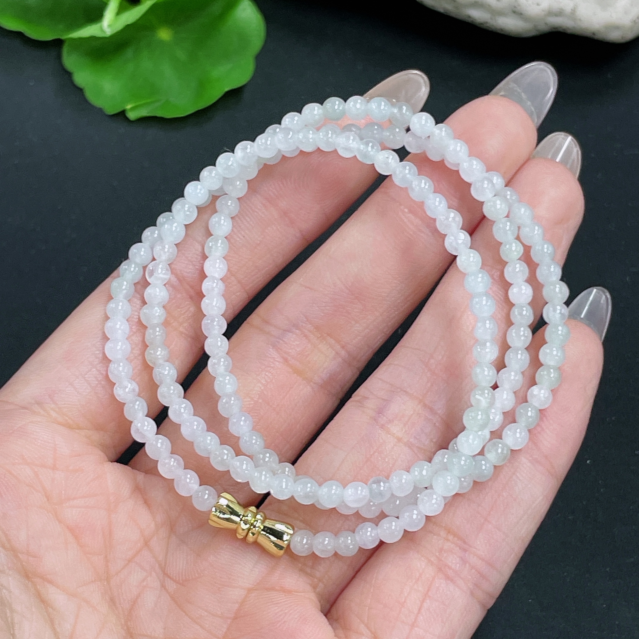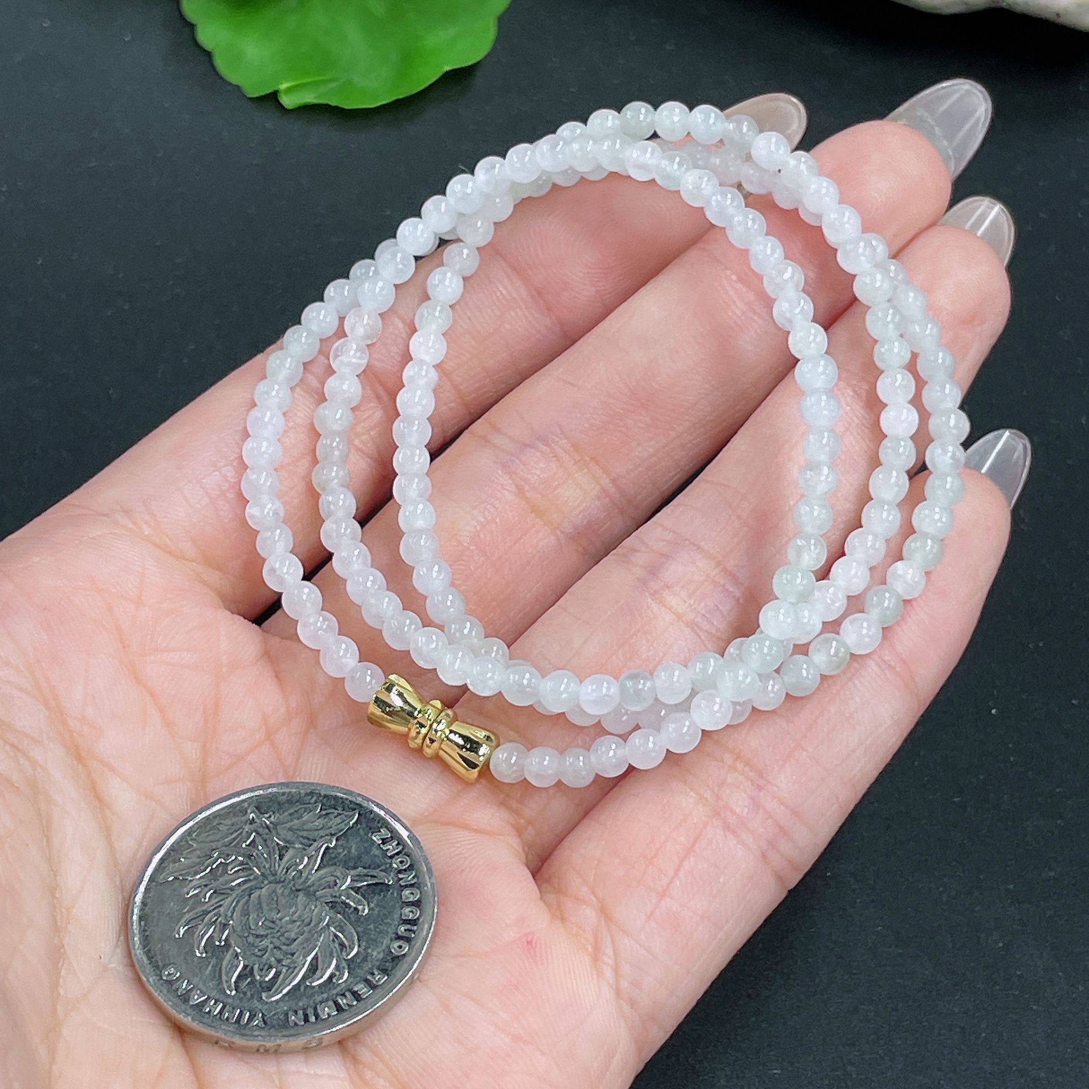 Jadeite Bead Necklace Non-Gold Total Weight Approx.10.59g Size About 3mm