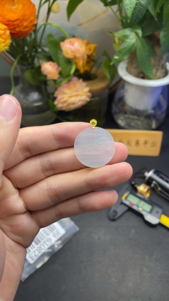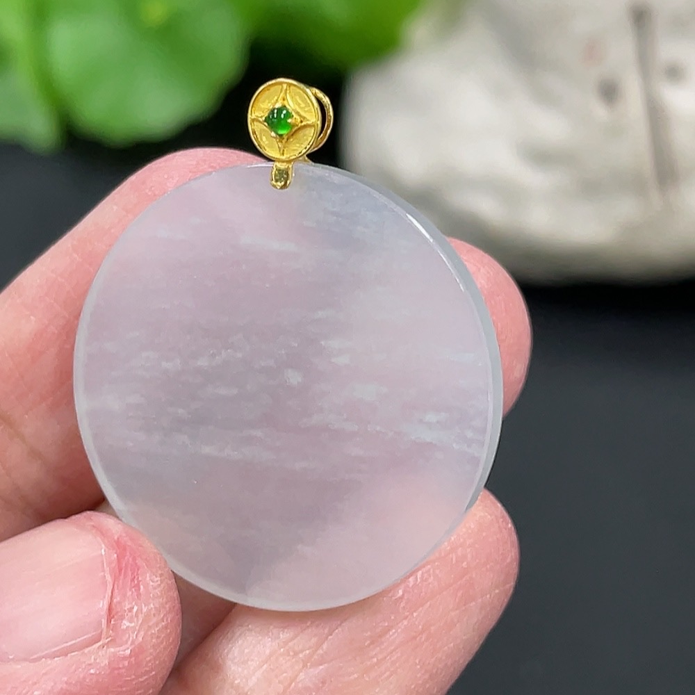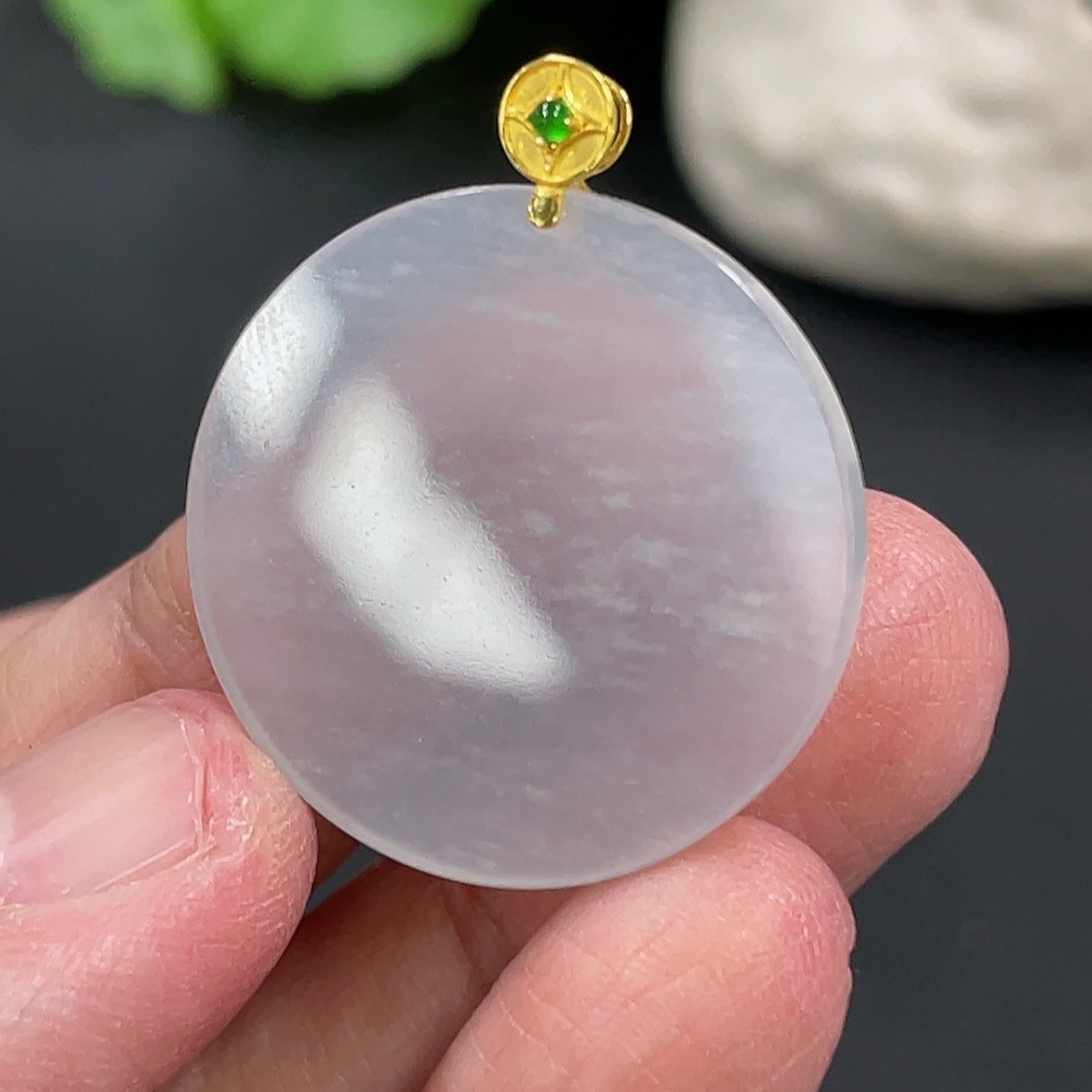 Jadeite Plain Pendant with 18K Gold Clasp, Total Weight Approx. 4.24g