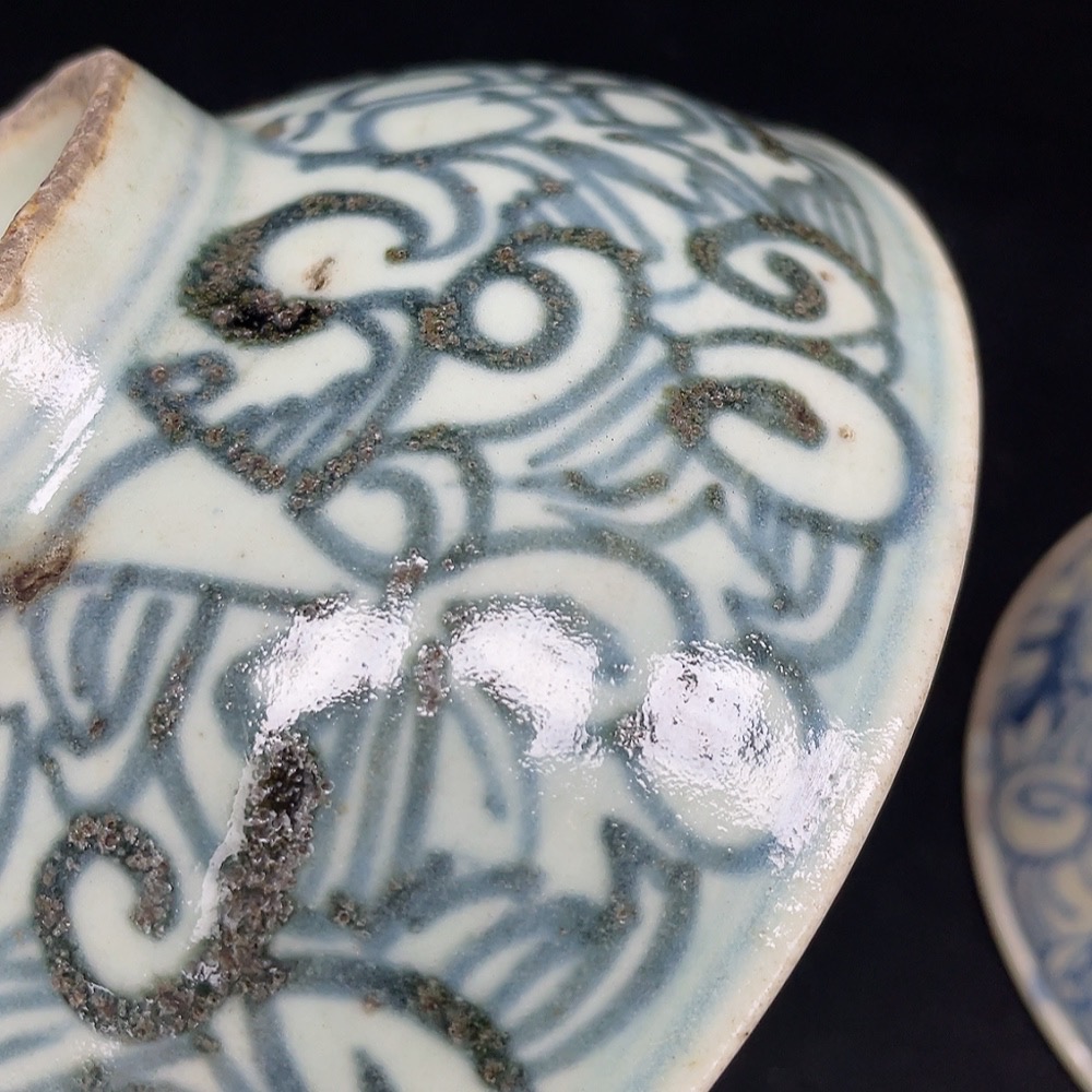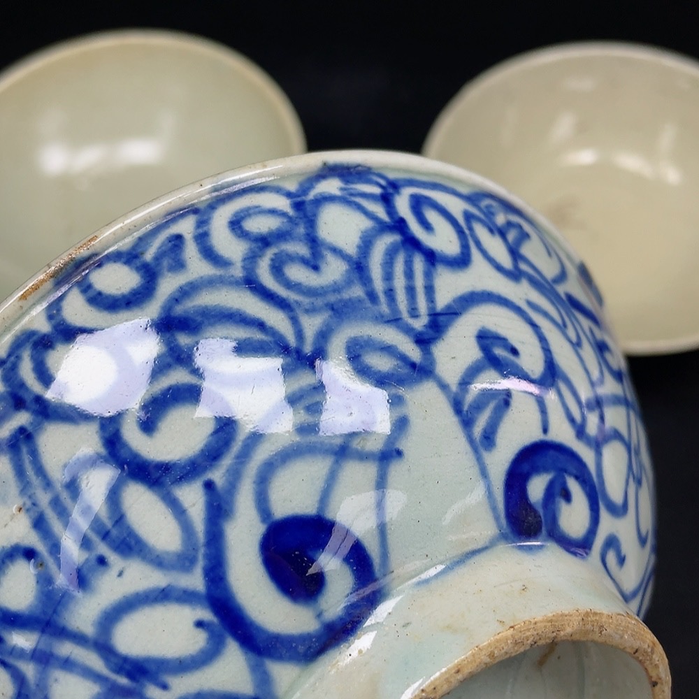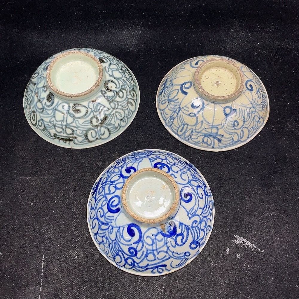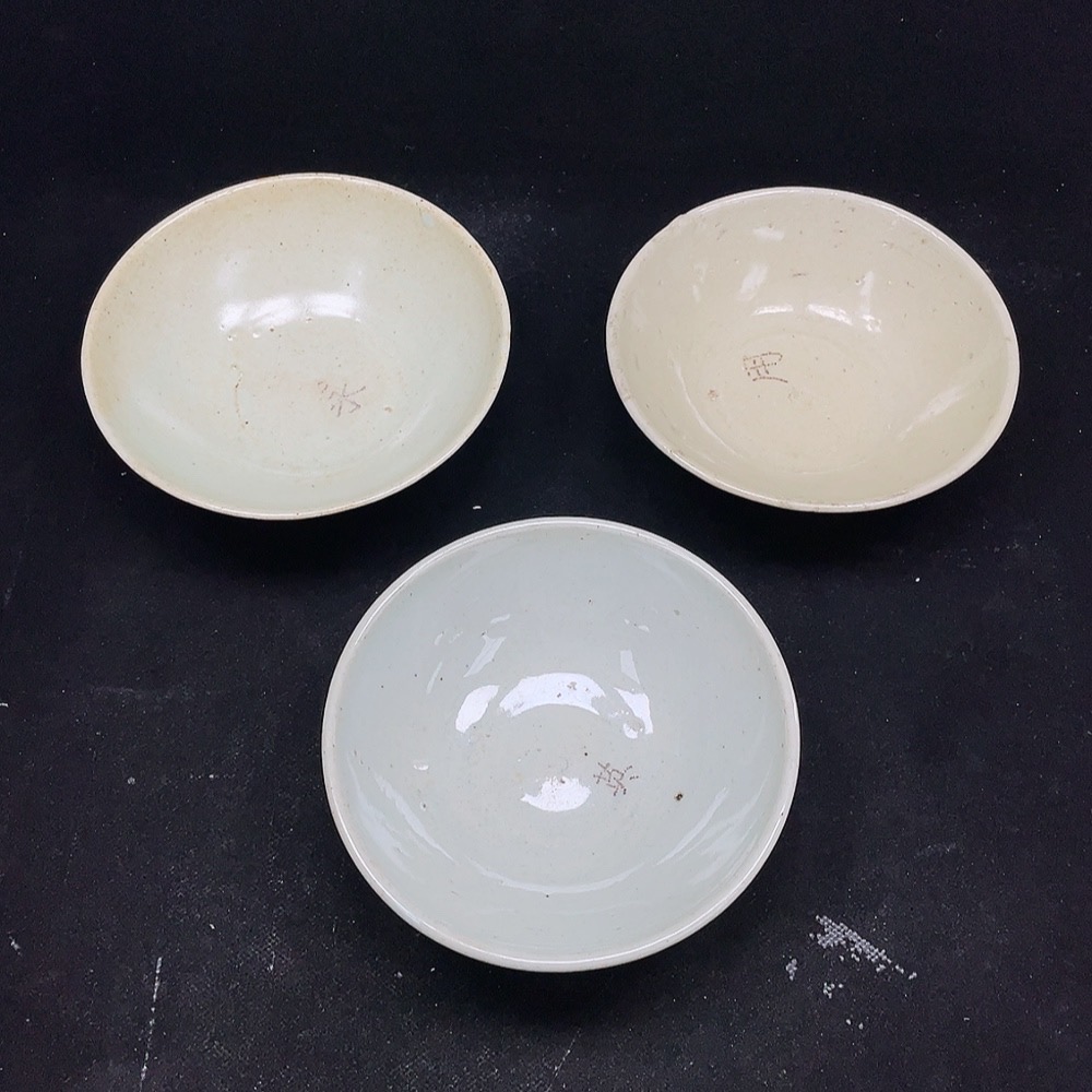 Porcelain 3-piece set, flawless, small kiln blue-and-white 'Double Happiness' character bowls
