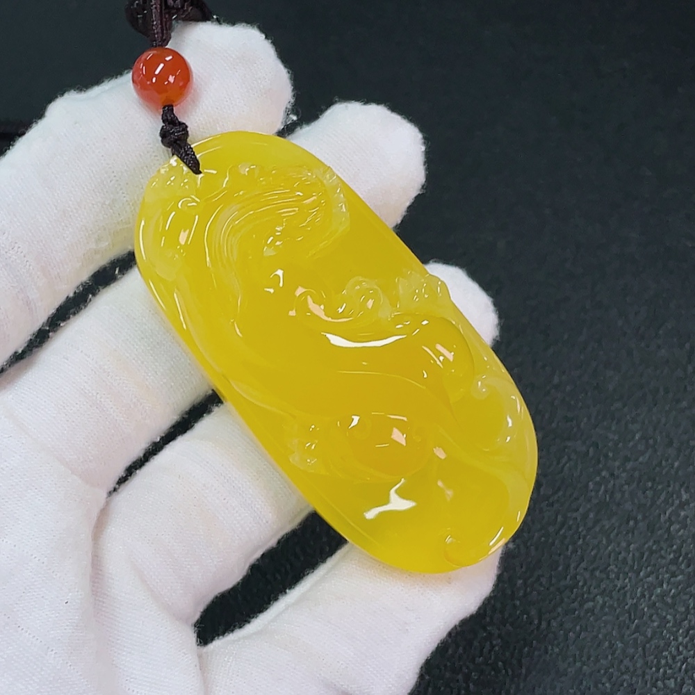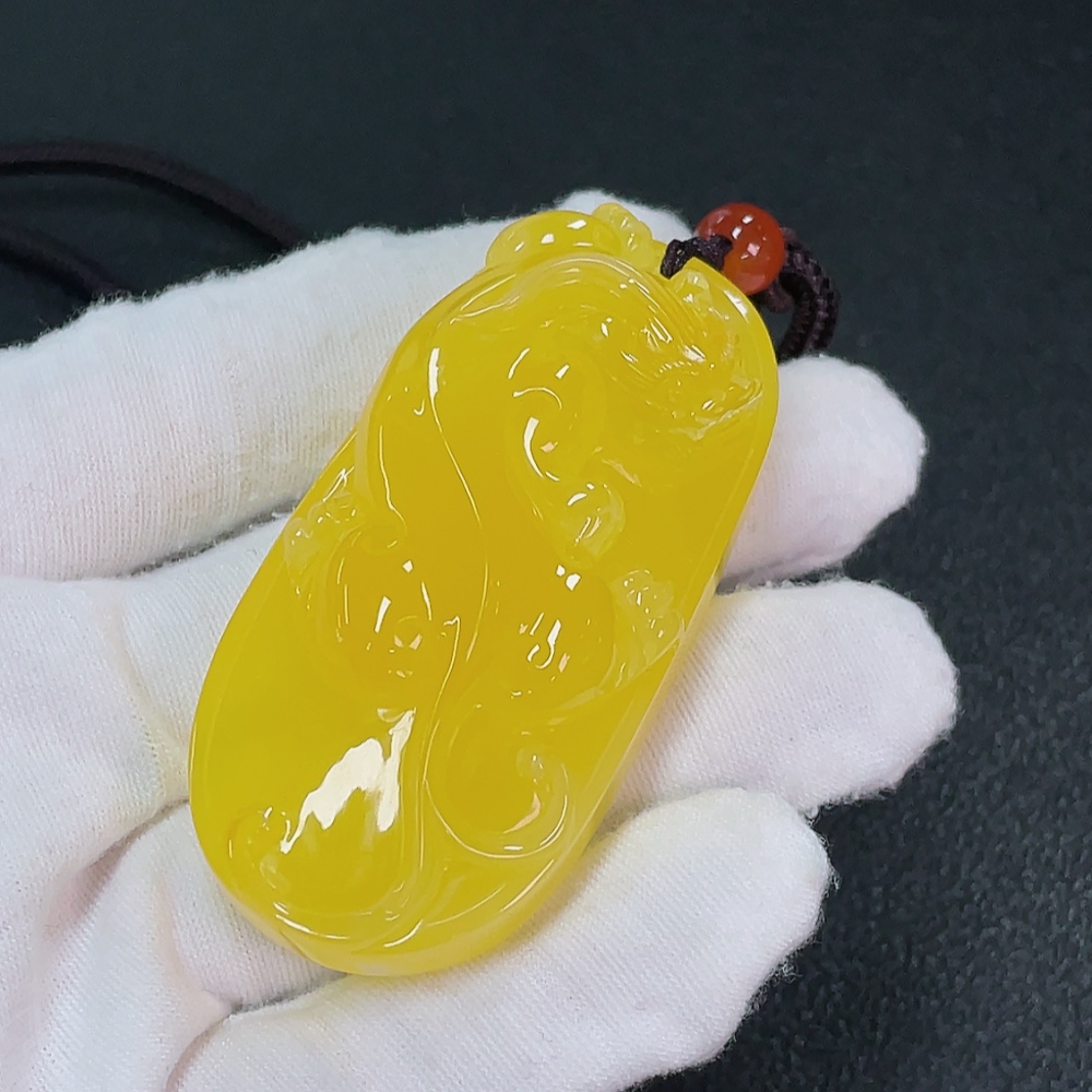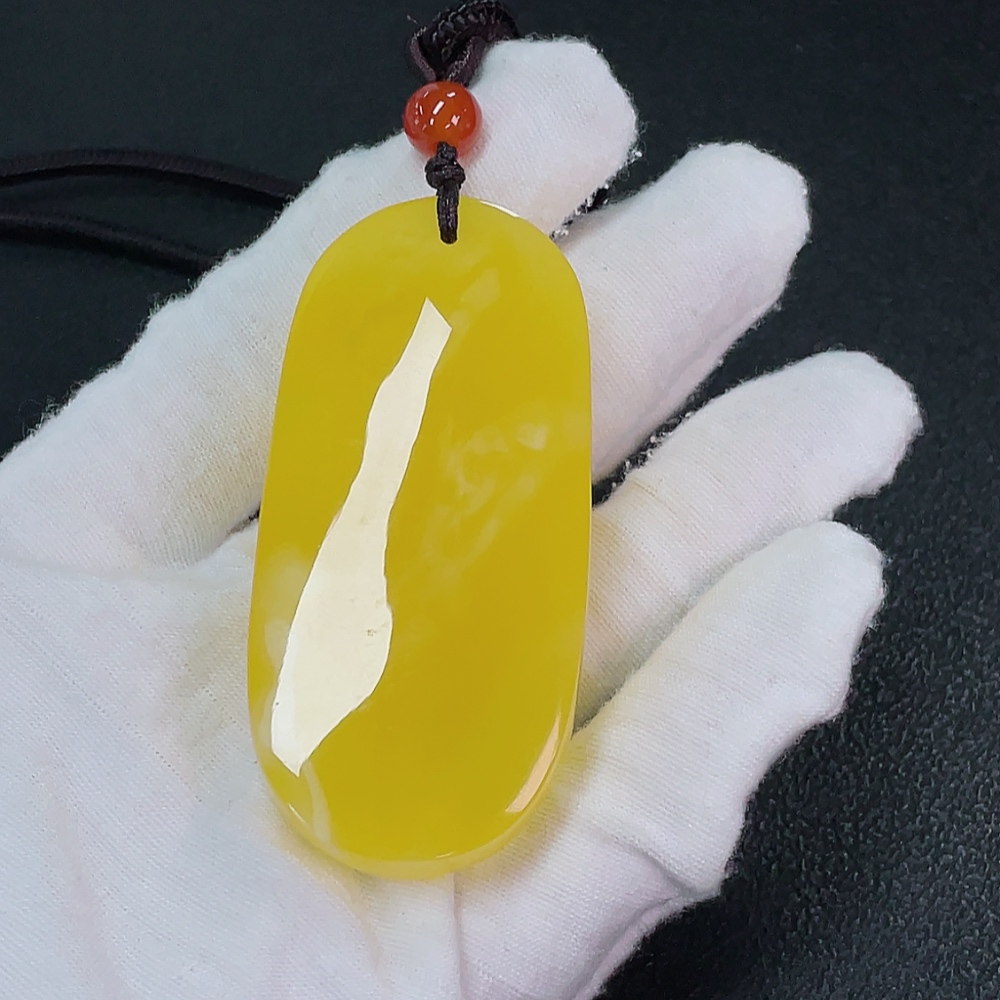 Amber Beeswax Pendant with Non-Natural Accent Stones, Non-Gold, Total Weight Approx. 31.91g Including Cord