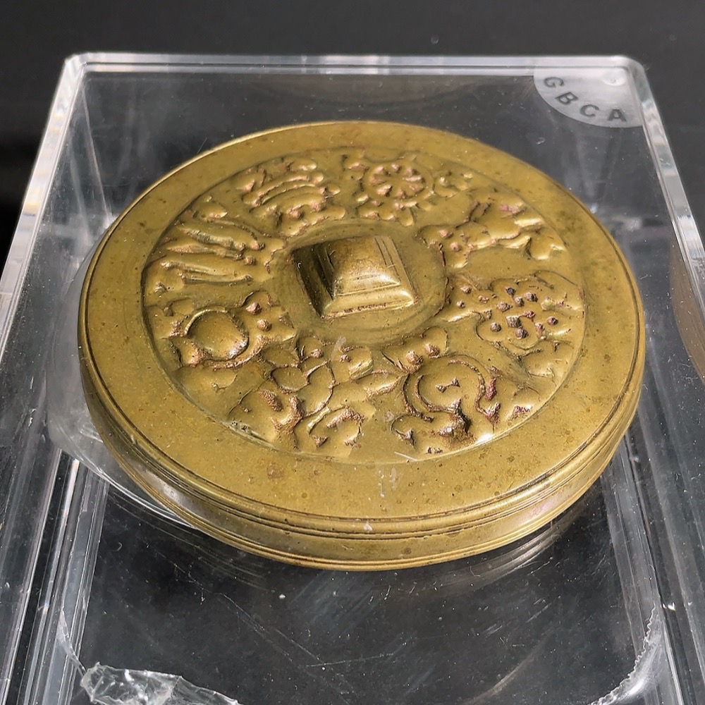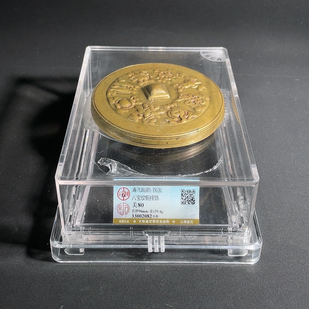 Gongbo and Tongbo Jointly Graded Late Qing to Republic Period Eight Treasures Pattern Bronze Pendant (Miscellaneous)