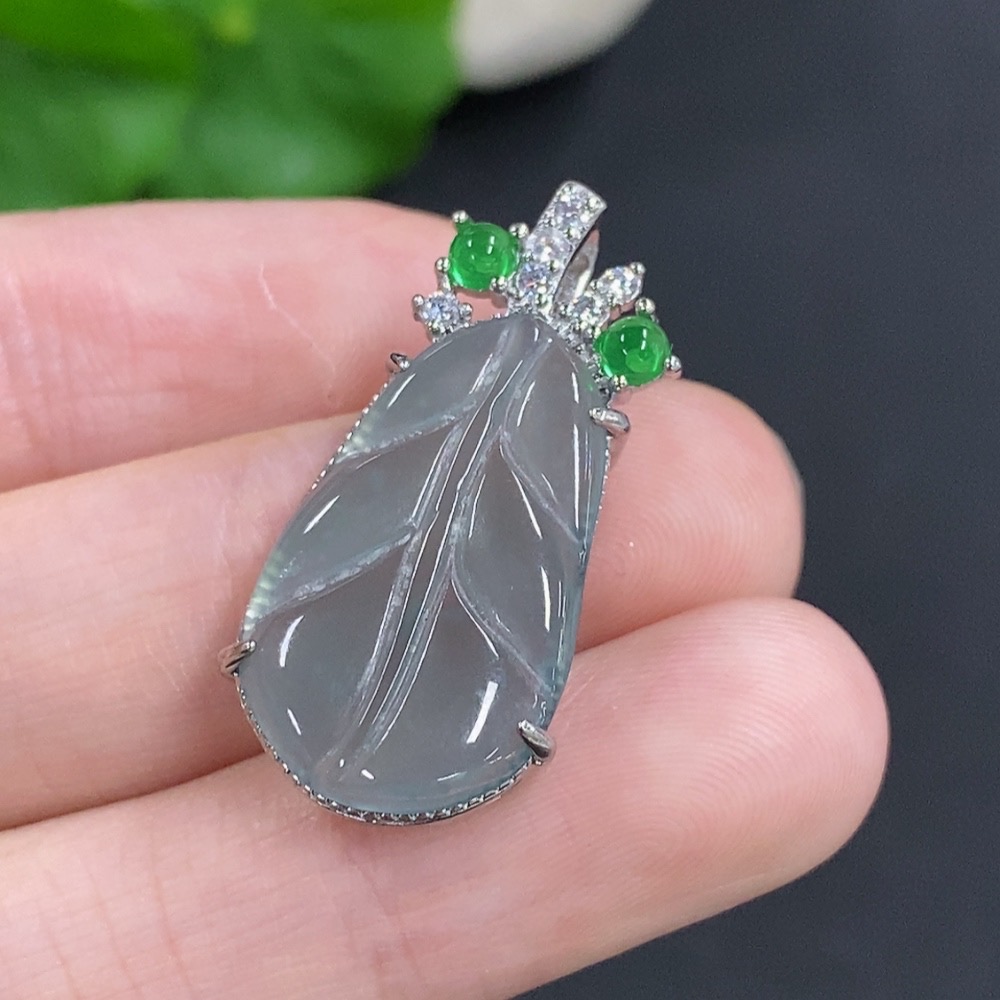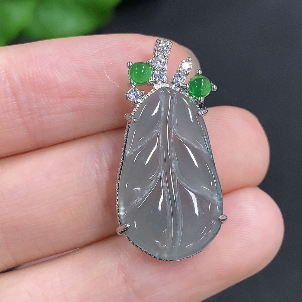 Jadeite Leaf Pendant Non-Gold Total Weight Approx. 3g