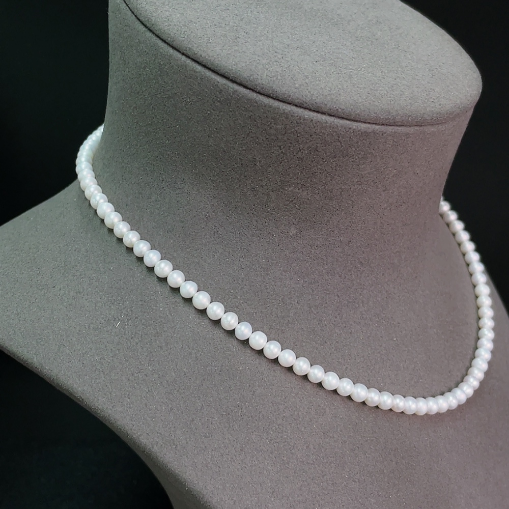 Trezaar - Pearl bead necklace, non-gold, total weight approx. 12.97g, bead size approx. 4.6mm