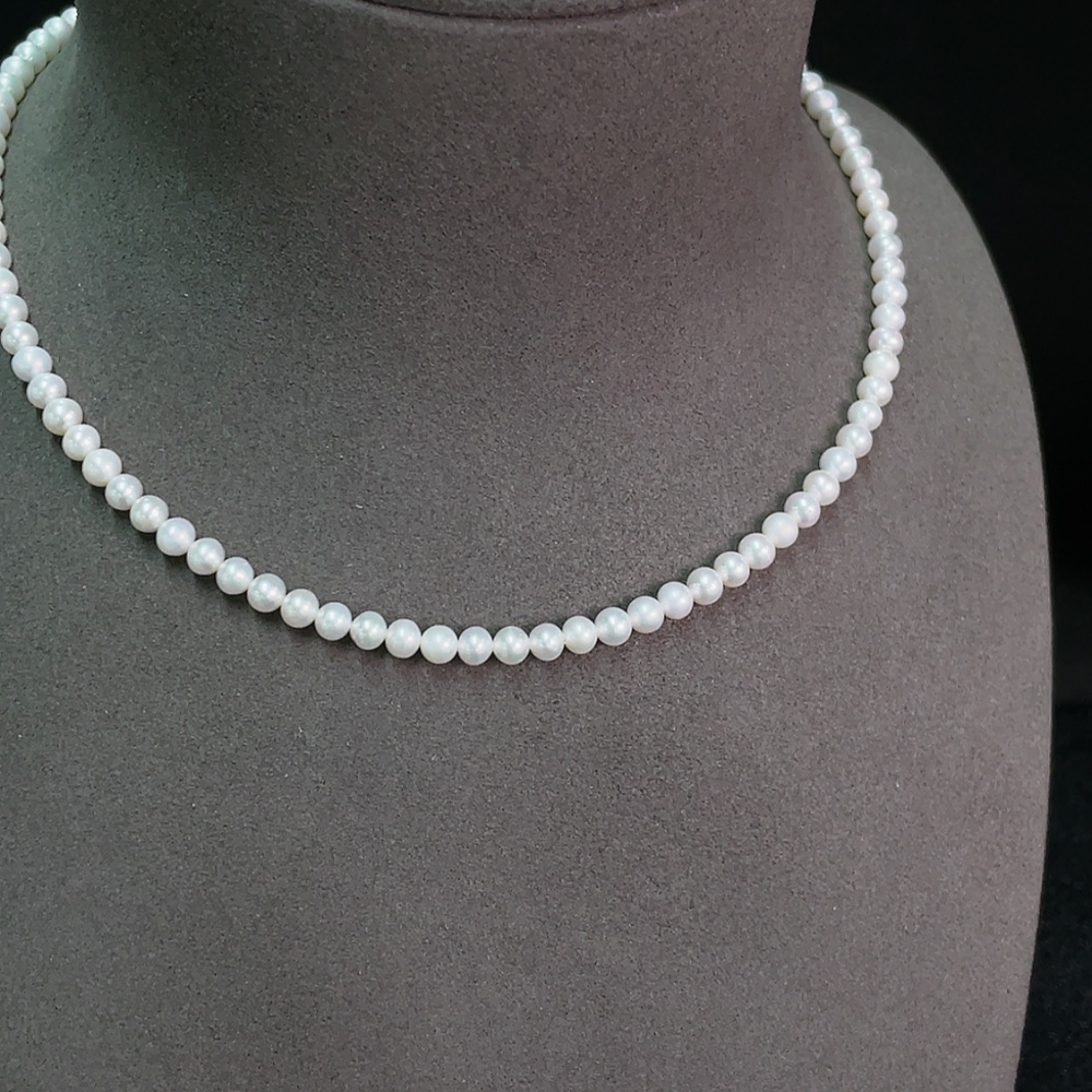 Trezaar - Pearl bead necklace, non-gold, total weight approx. 12.66g, bead size approx. 4.5mm