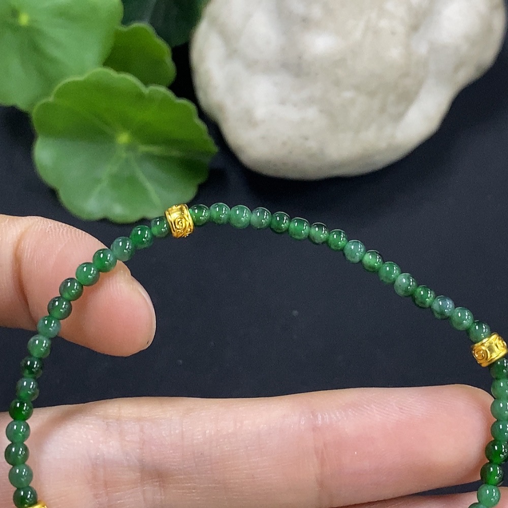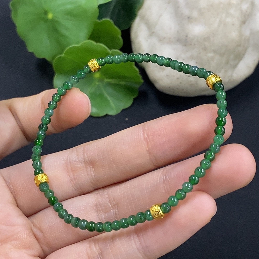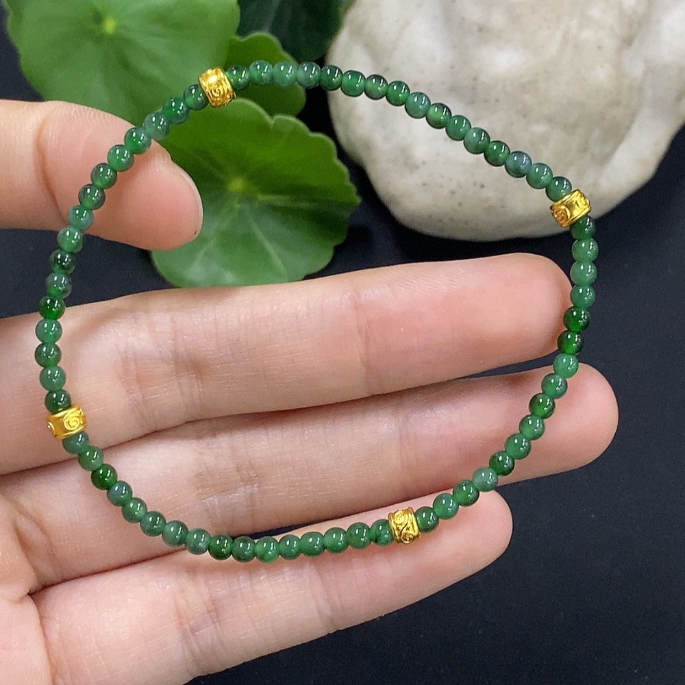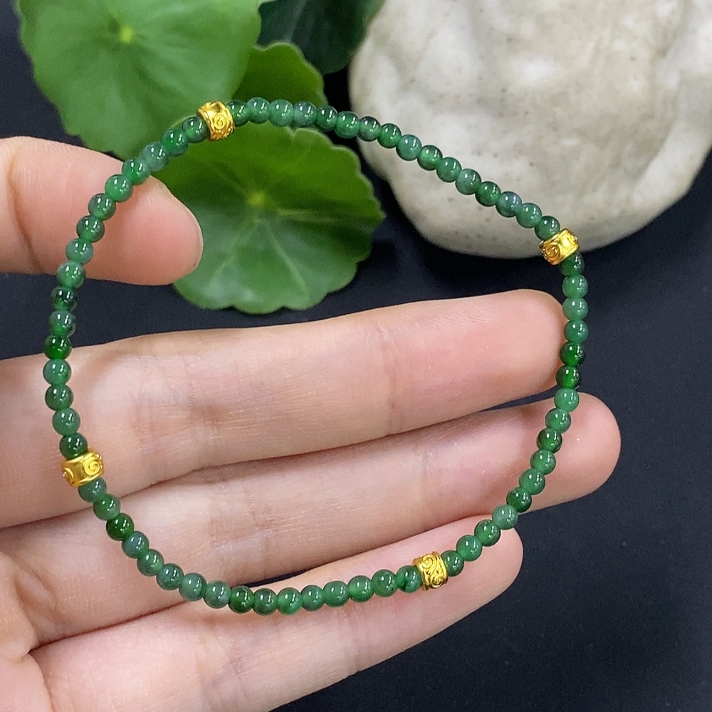 Jadeite Bracelet 3mm Approx. Total Weight 3.5g (Non-Gold Inlaid)