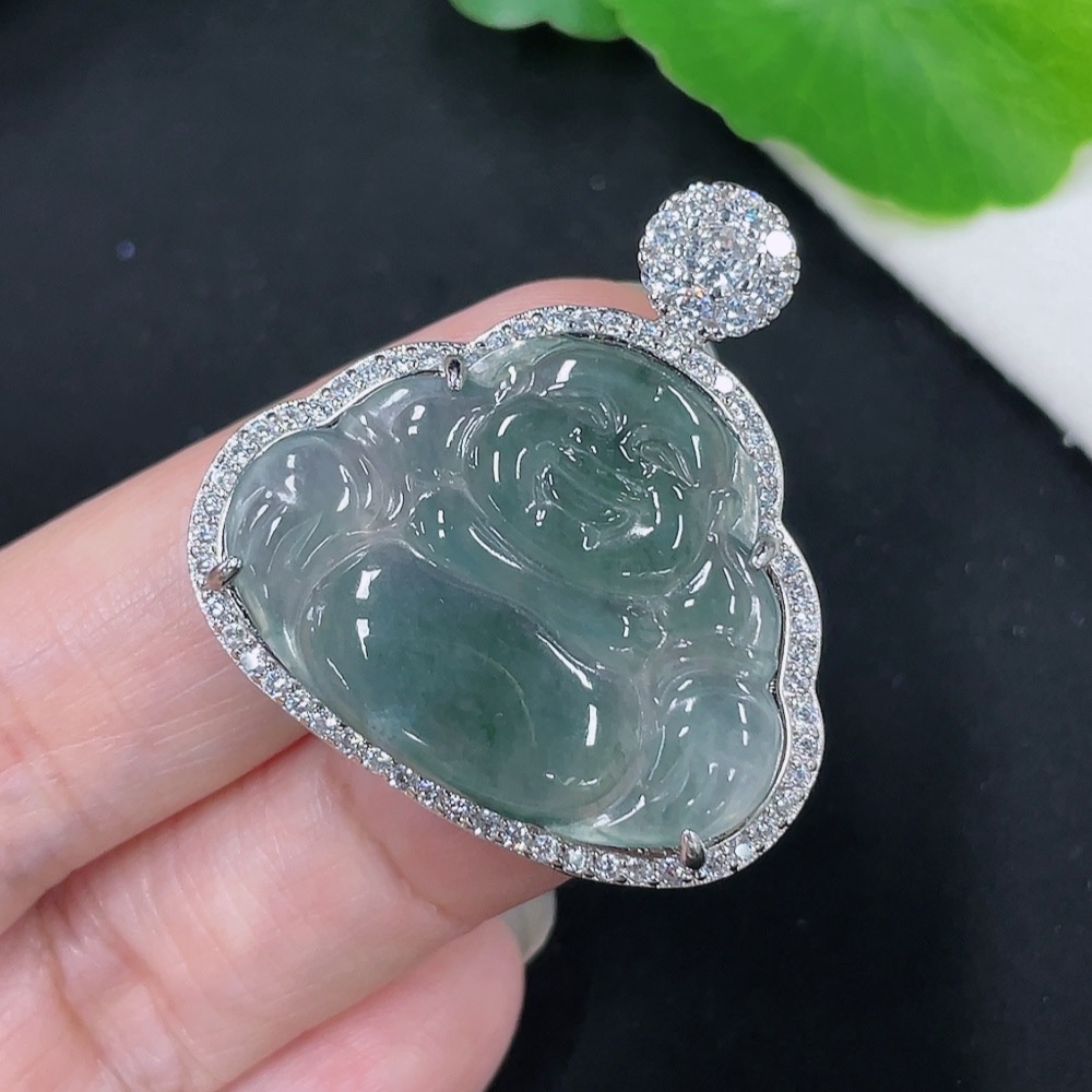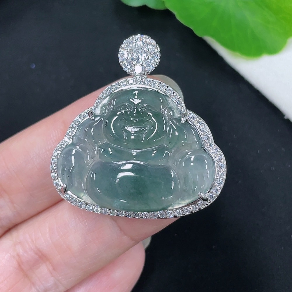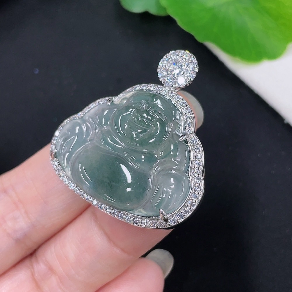 Jadeite Buddha Pendant with Inlay Setting, Non-Gold Inlay, Total Weight Approximately 7.35g