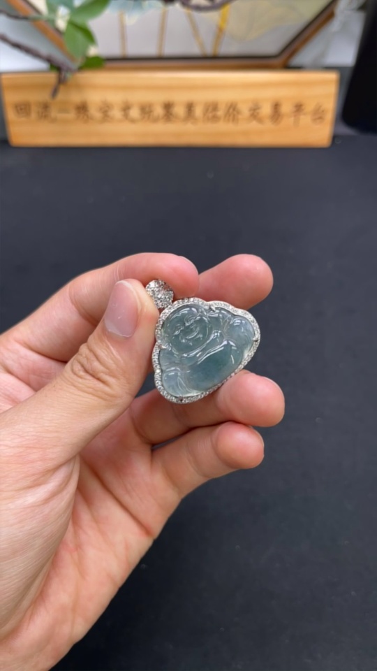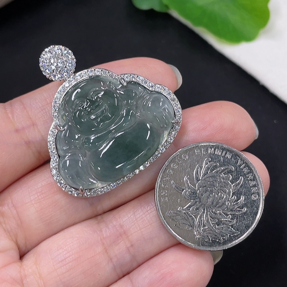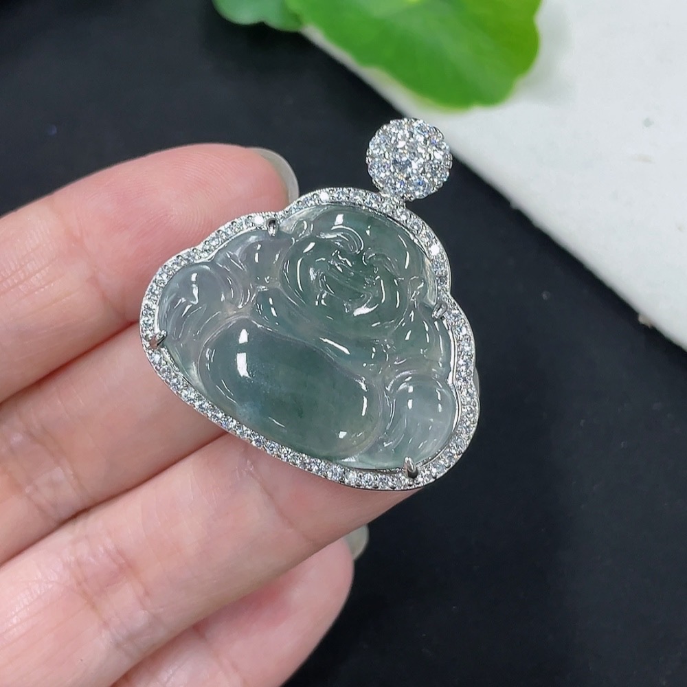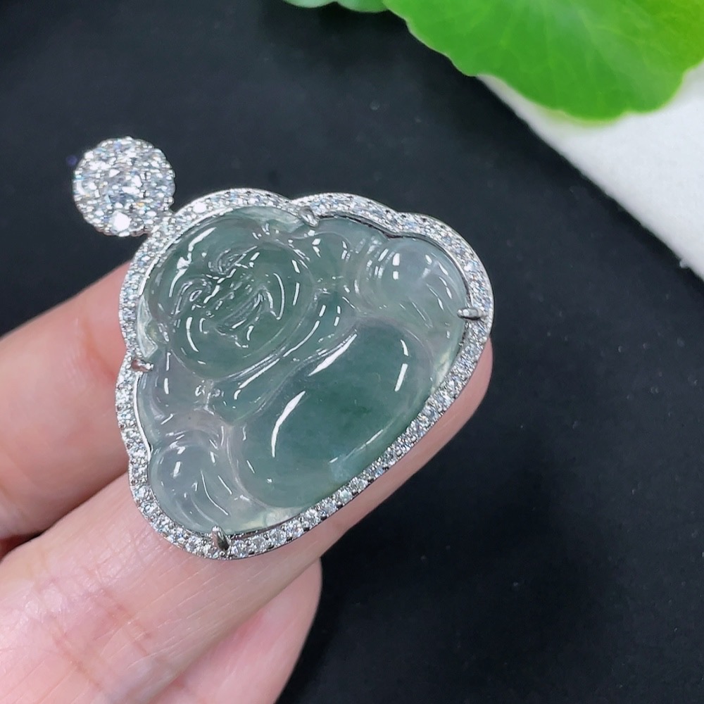 Jadeite Buddha Pendant with Inlay Setting, Non-Gold Inlay, Total Weight Approximately 7.35g
