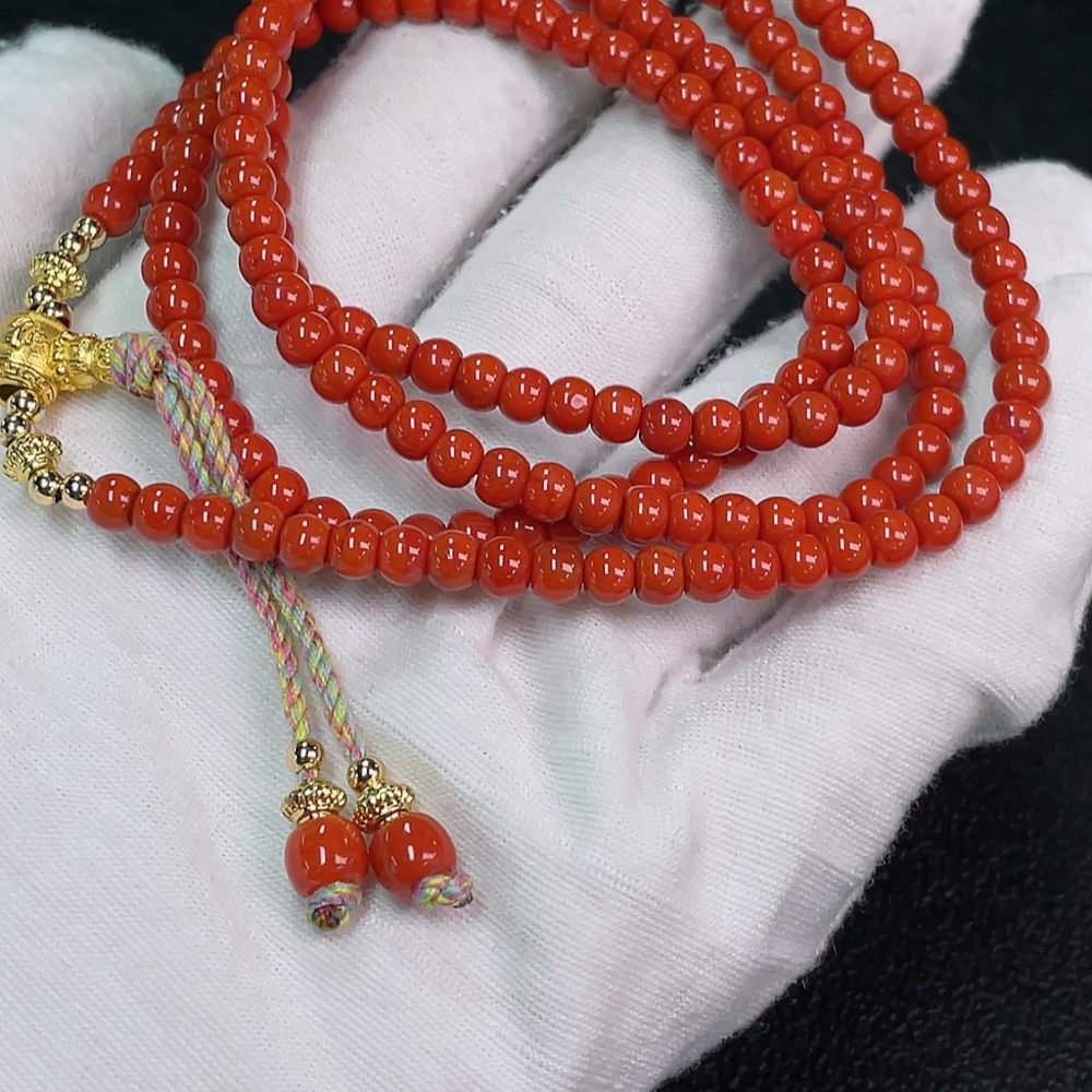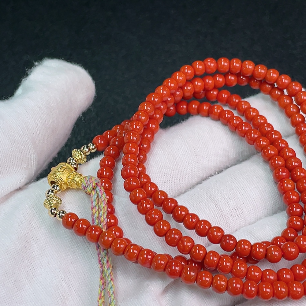 Red Agate Bead Strand with Visible Organic Matter, Non-Gold, Total Weight Approximately 25.83g, Size About 4.4mm