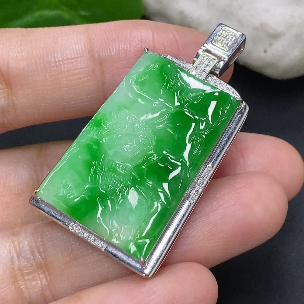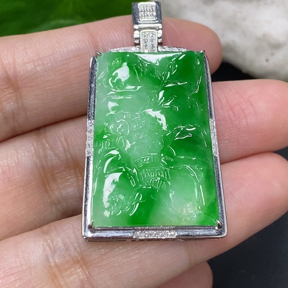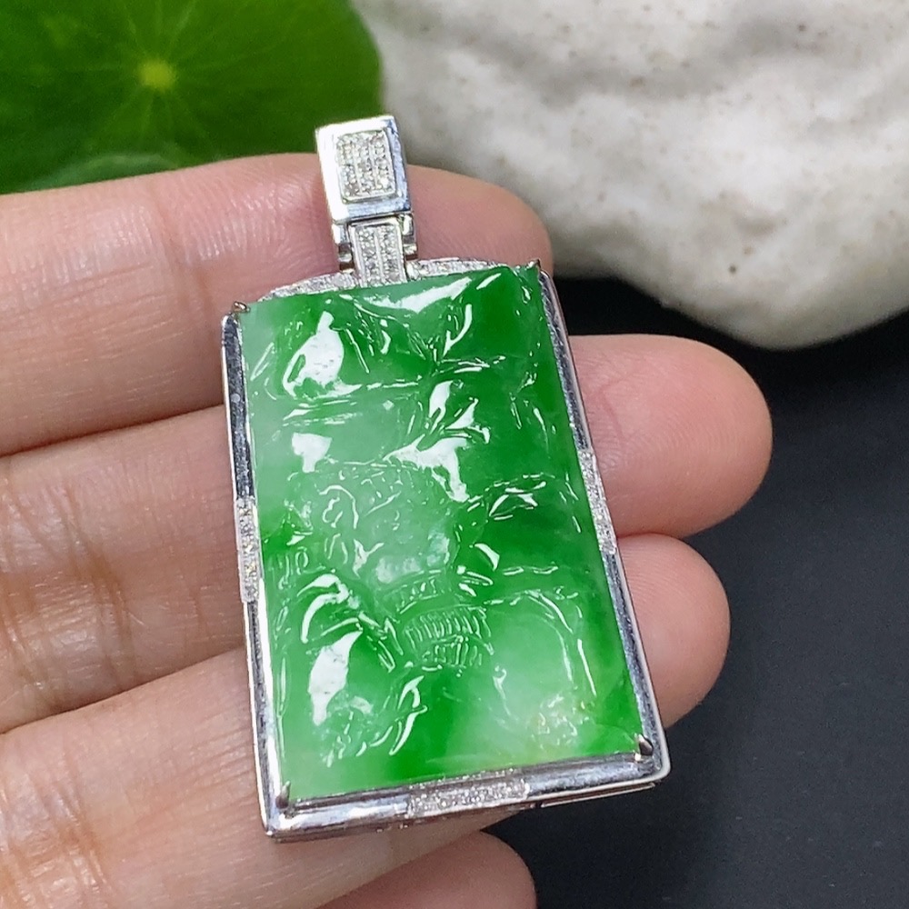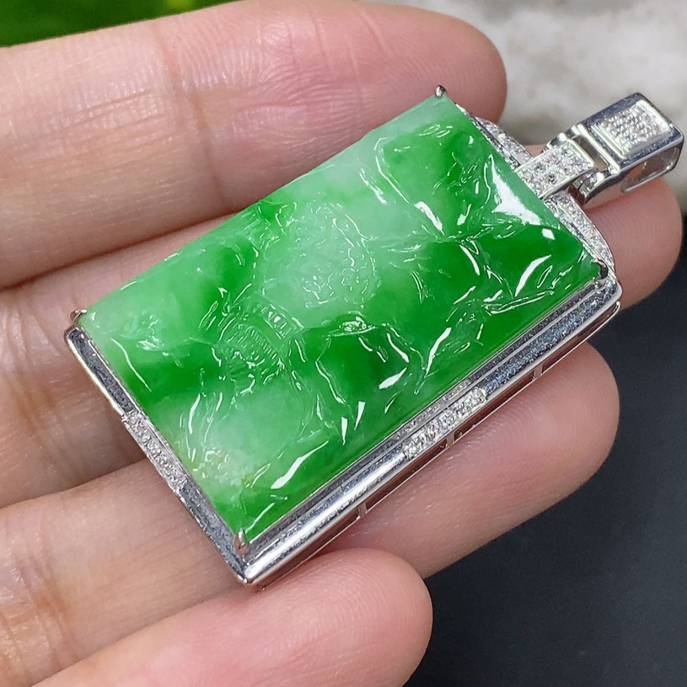 Jadeite Landscape Inlaid Pendant 18K Gold Total Weight Approx. 8.1g (with Diamond Accents)