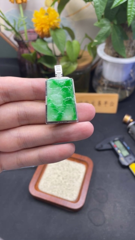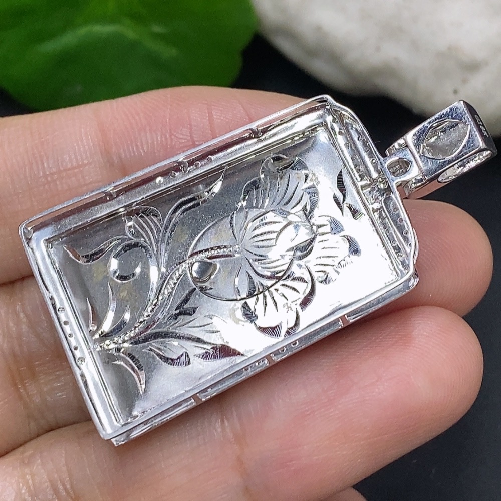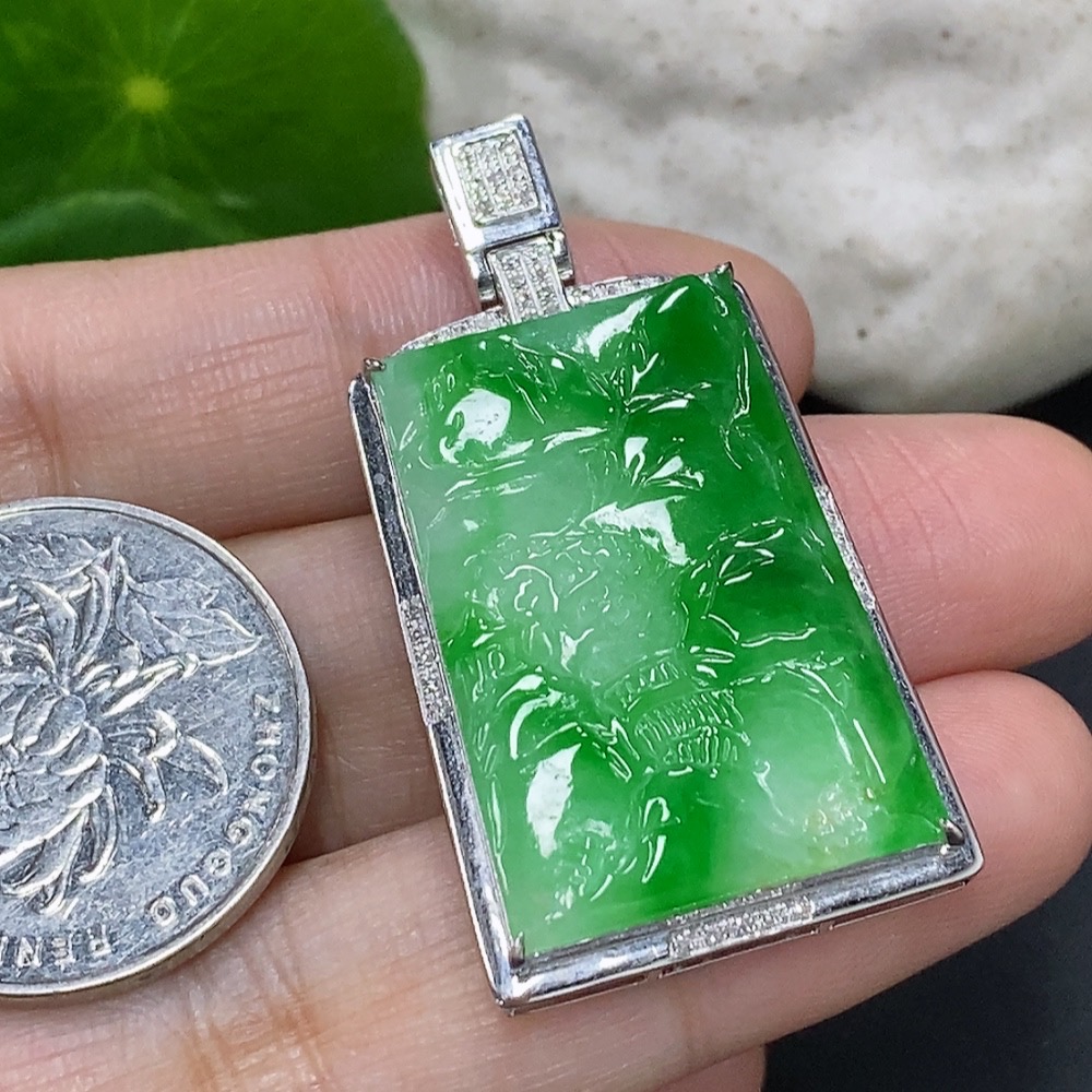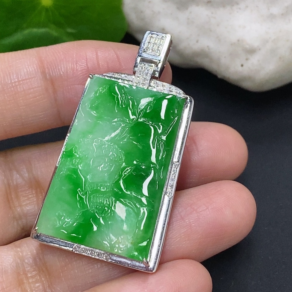 Jadeite Landscape Inlaid Pendant 18K Gold Total Weight Approx. 8.1g (with Diamond Accents)