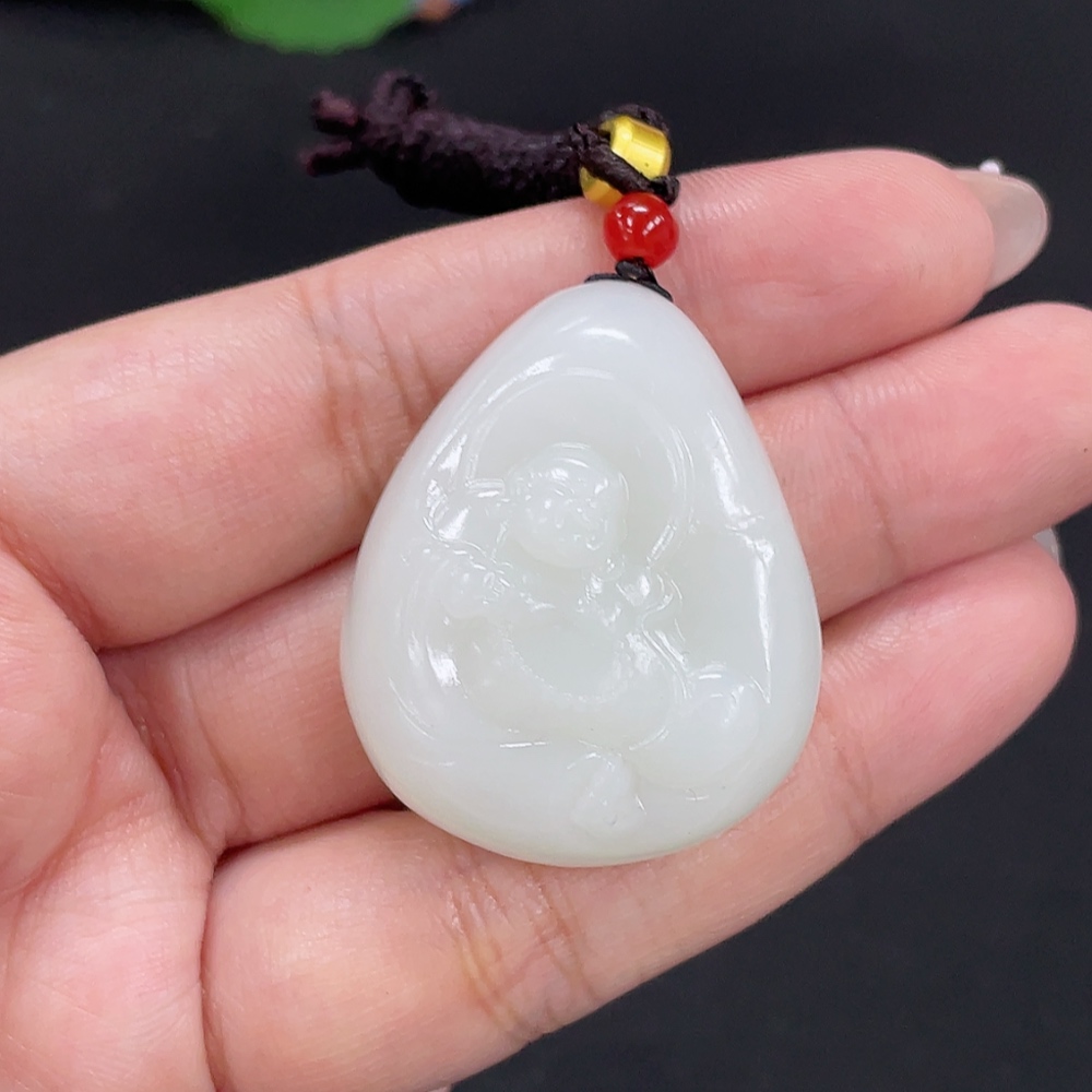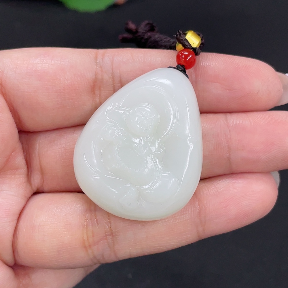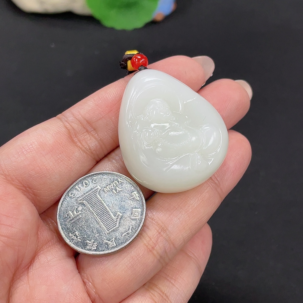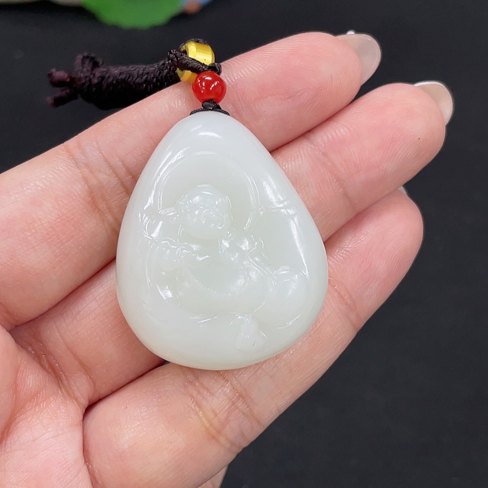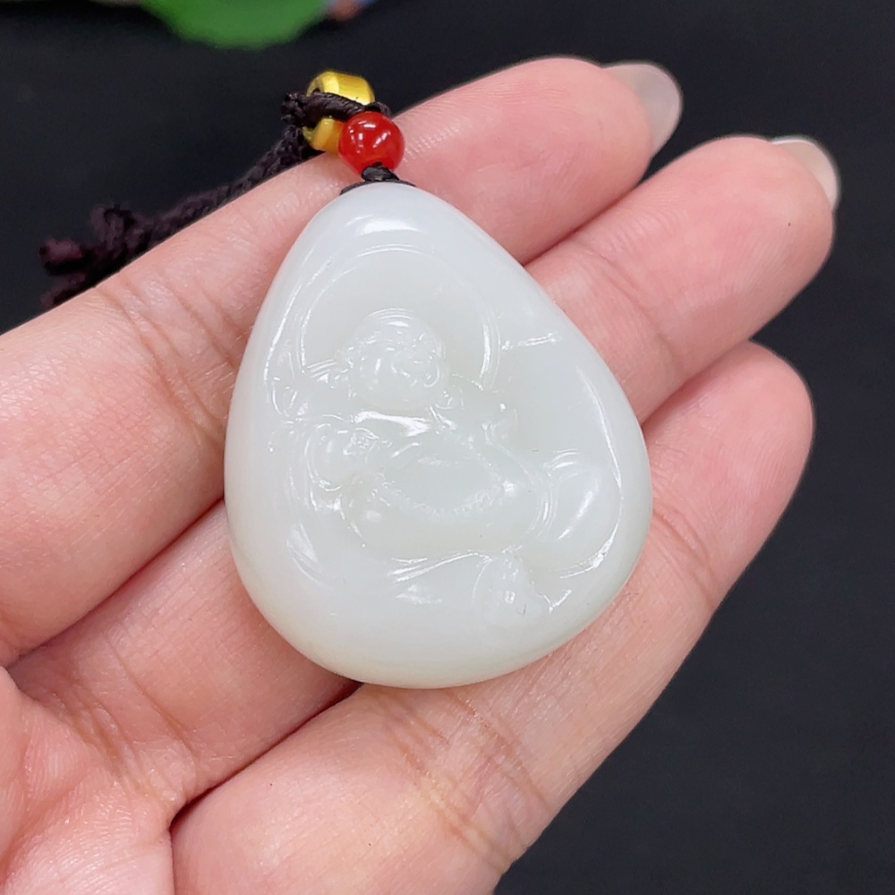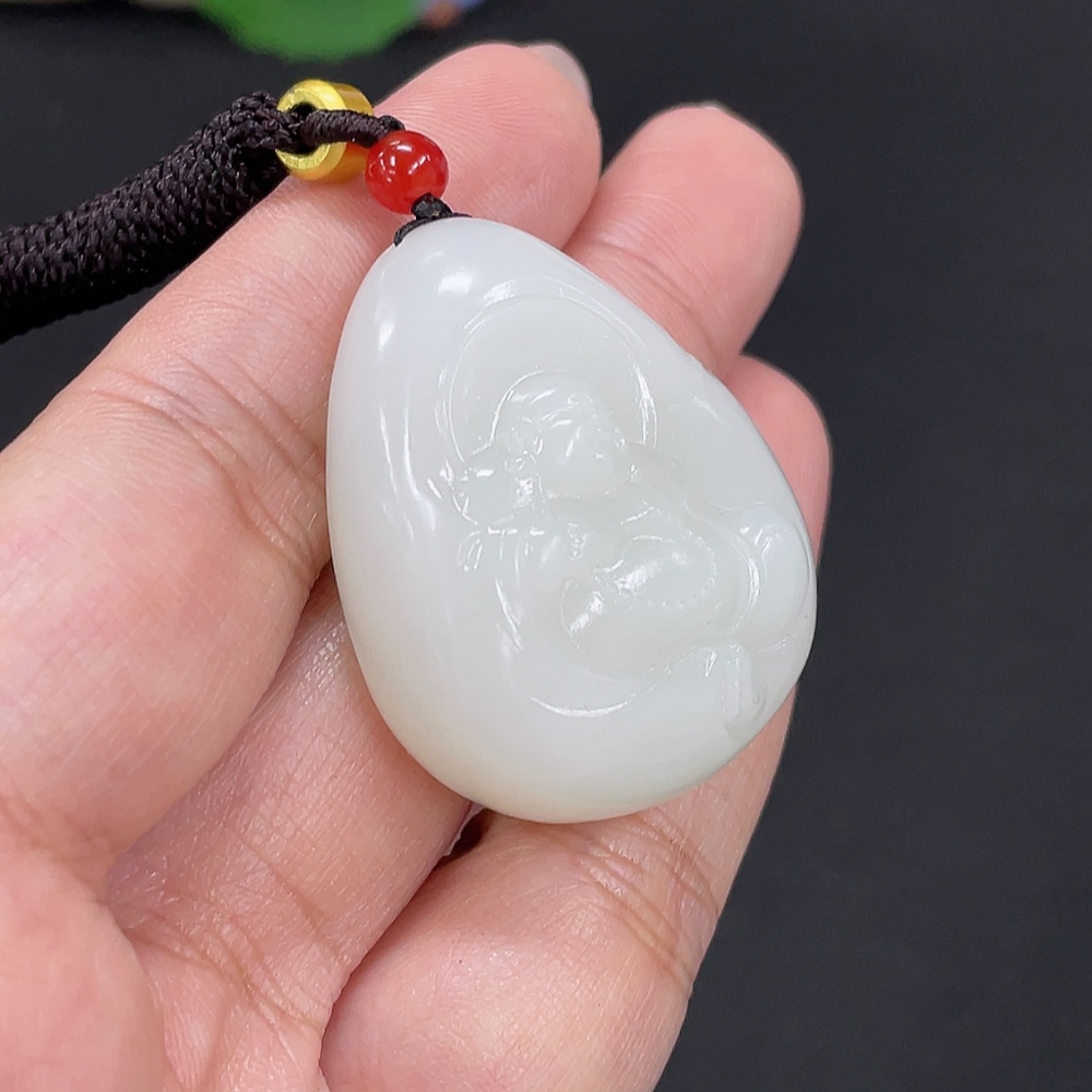 Hetian Jade Pendant Buddha, Total Weight Approx. [Including Rope] 28.8g, Beads Not Hetian Jade