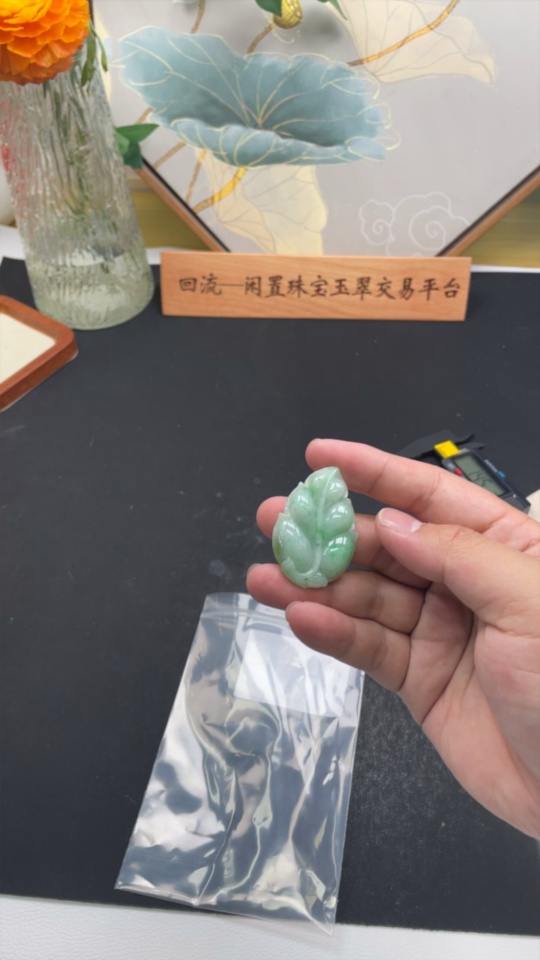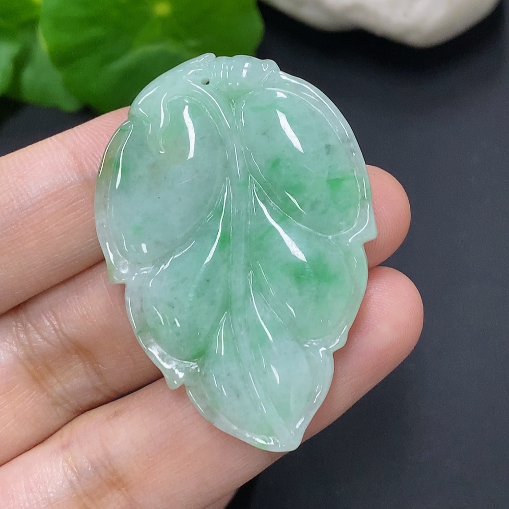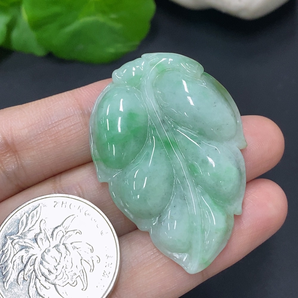 Jadeite Leaf Pendant Total Weight Approx. 15.9g