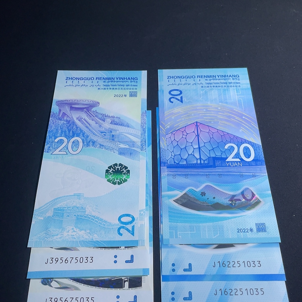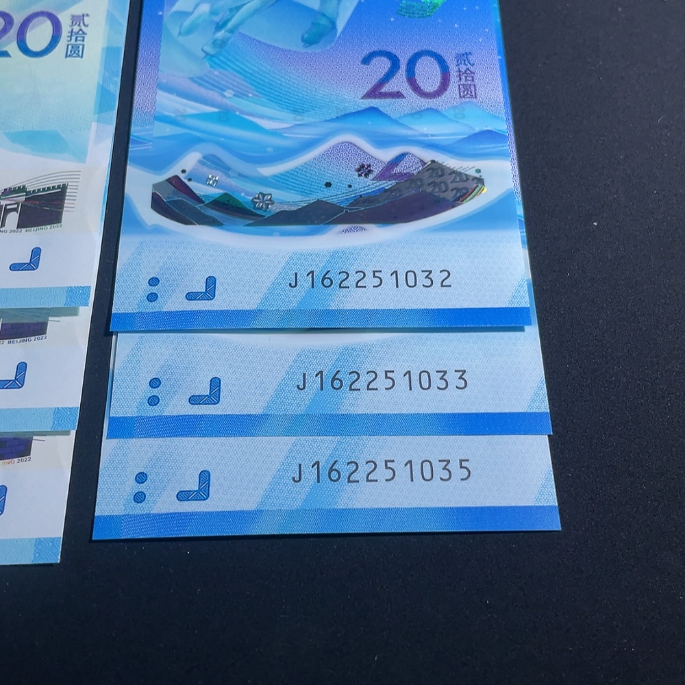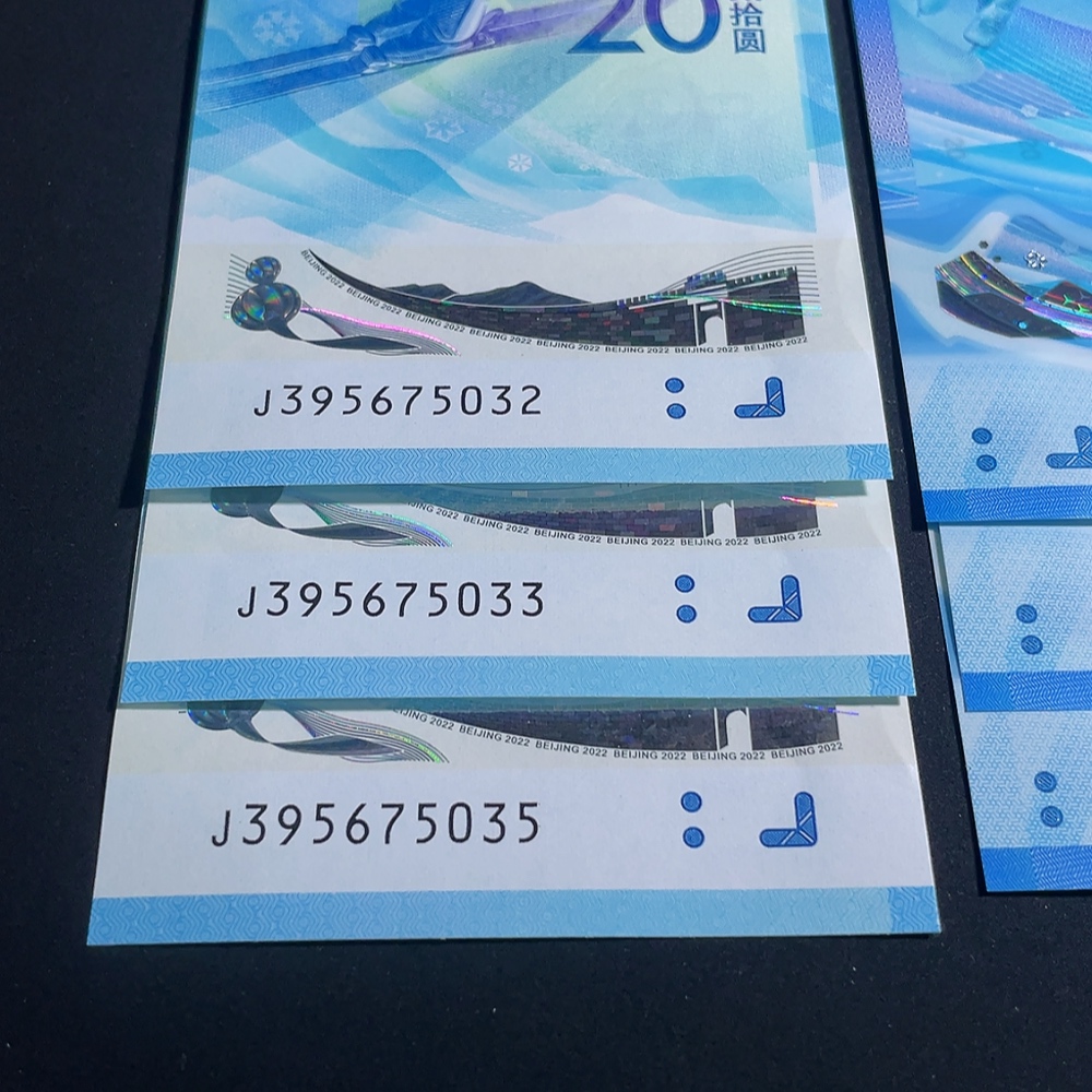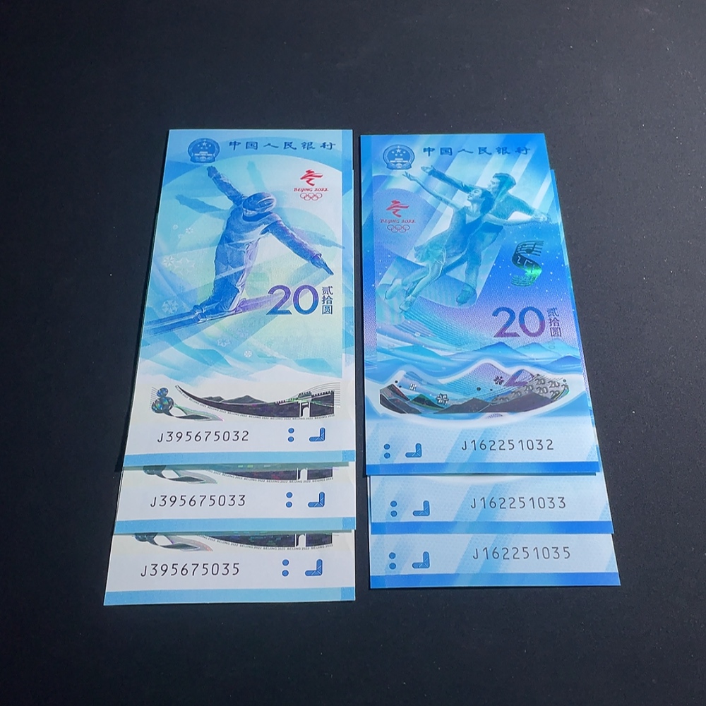 2022 Beijing Winter Olympics Commemorative Banknote - Ice Sports & Snow Sports Triple Consecutive Number with Matching Ending Triplets Pair