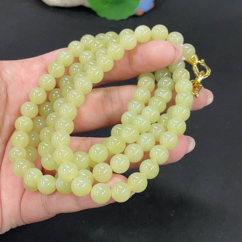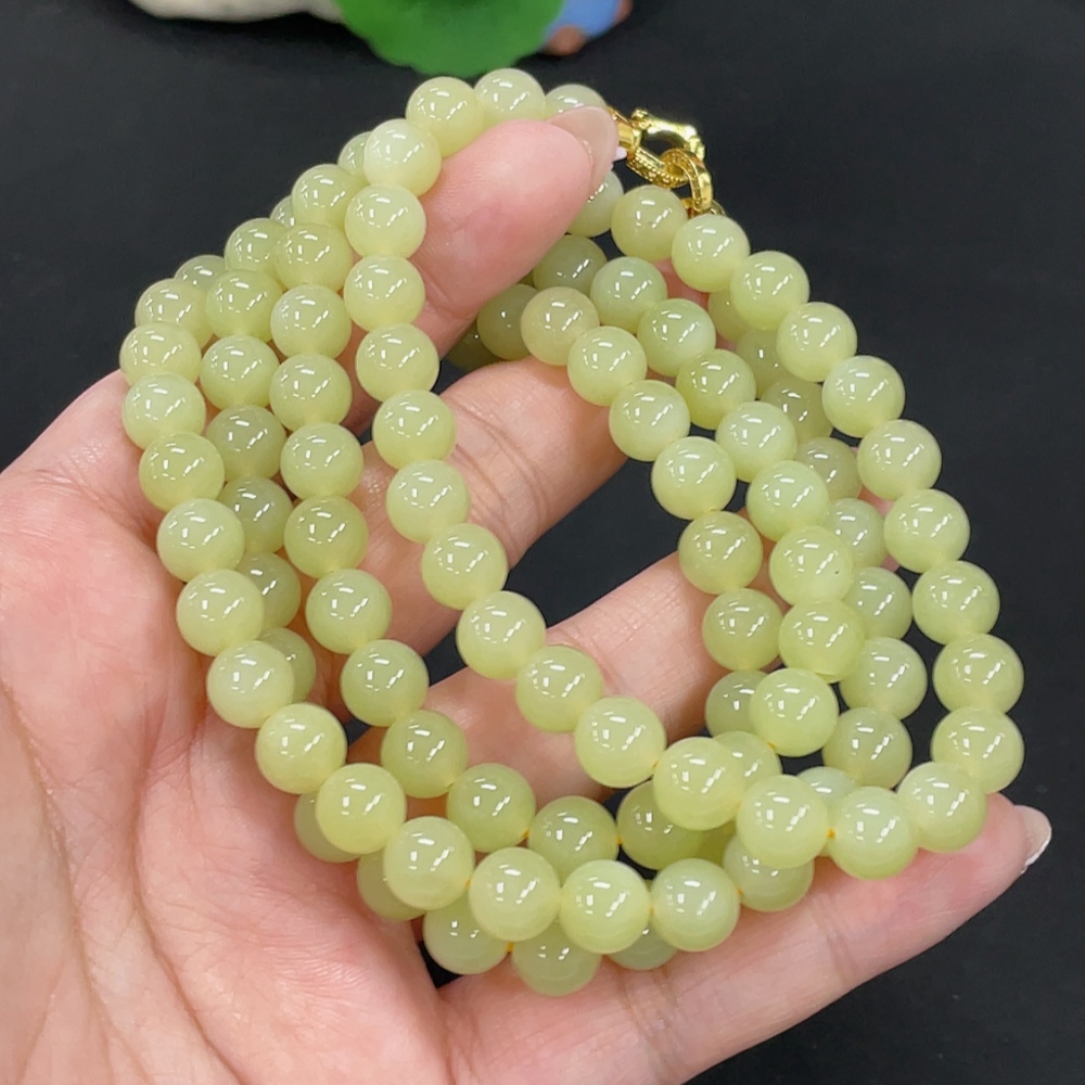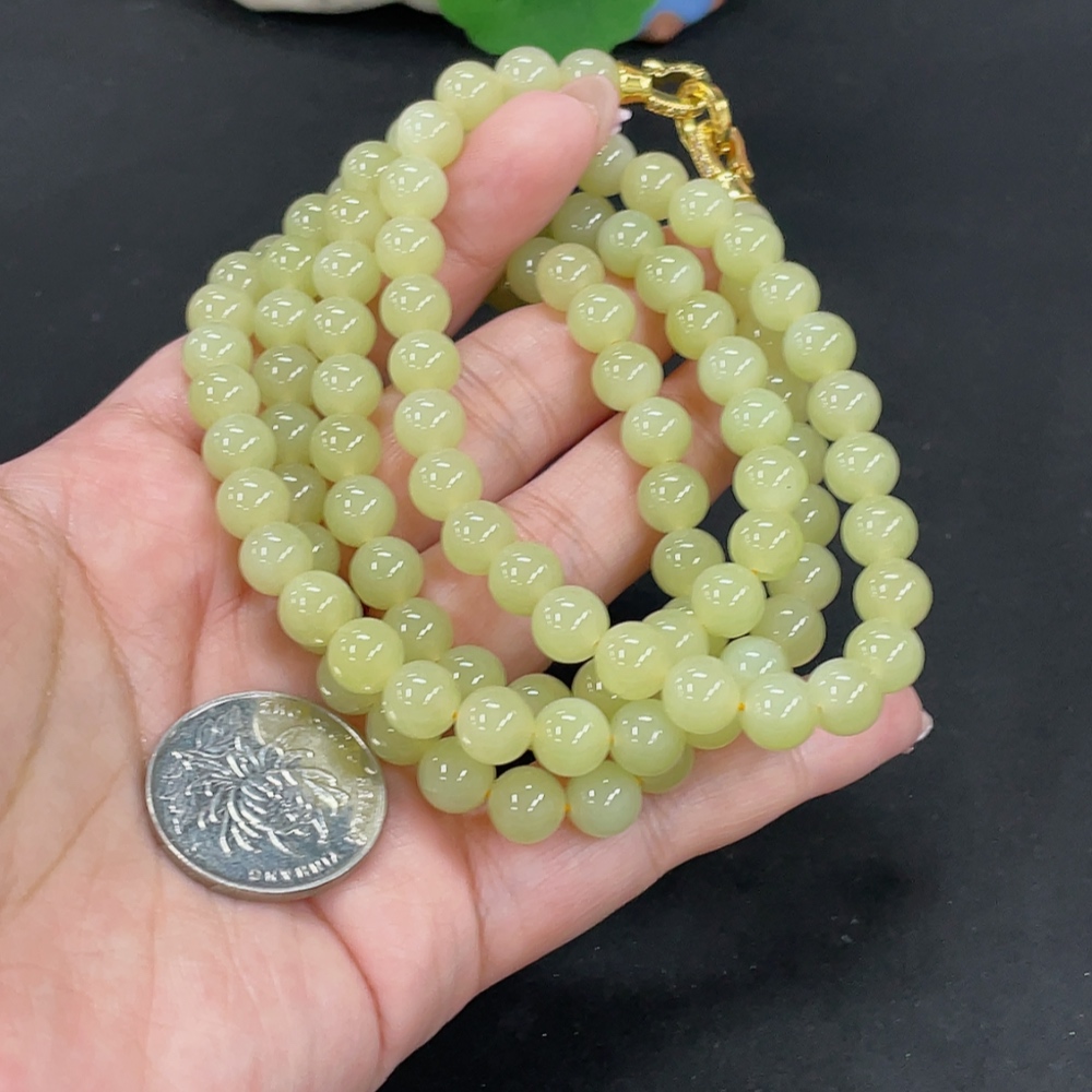 Hetian Jade Bead Necklace Non-Gold Approx. 7.8mm Total Weight Approx. 87.9g
