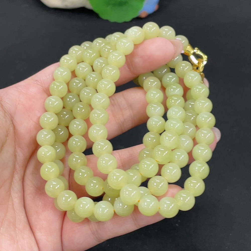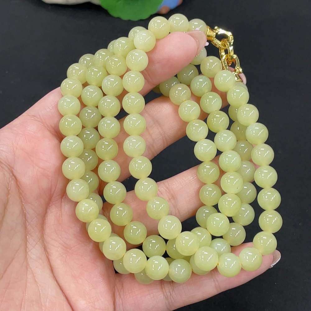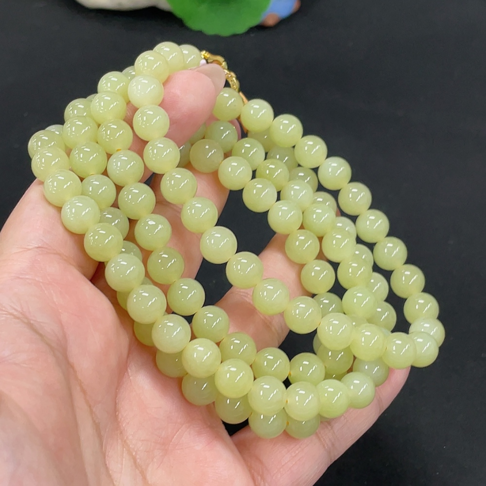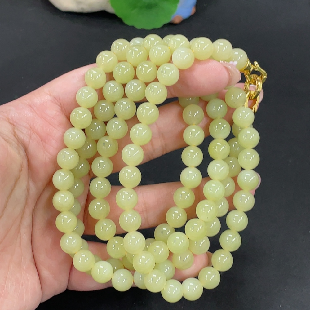Hetian Jade Bead Necklace Non-Gold Approx. 7.8mm Total Weight Approx. 87.9g