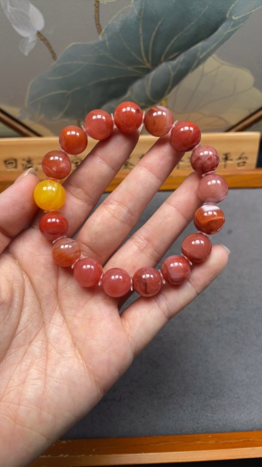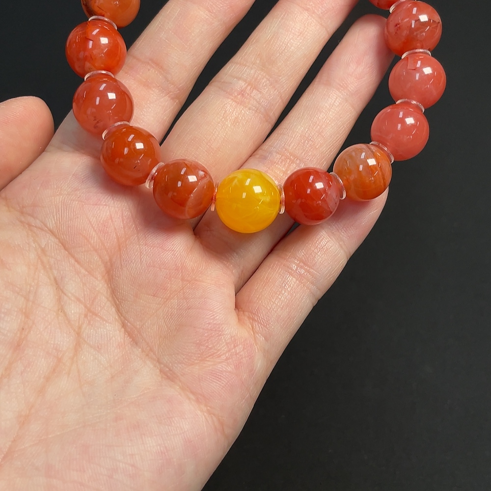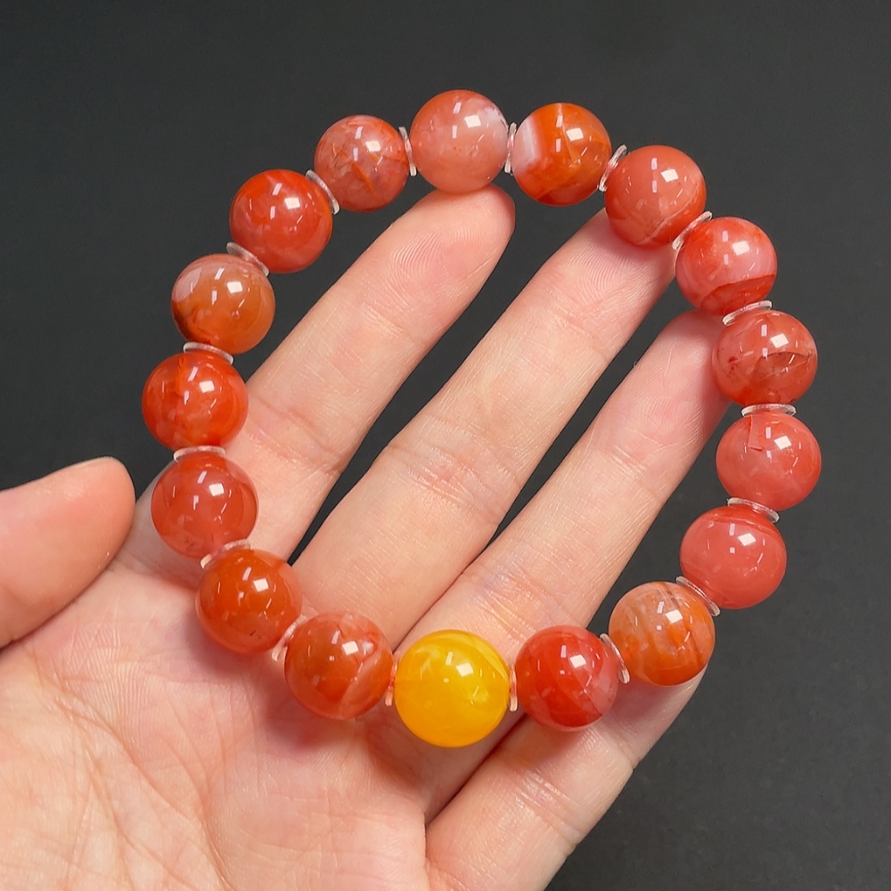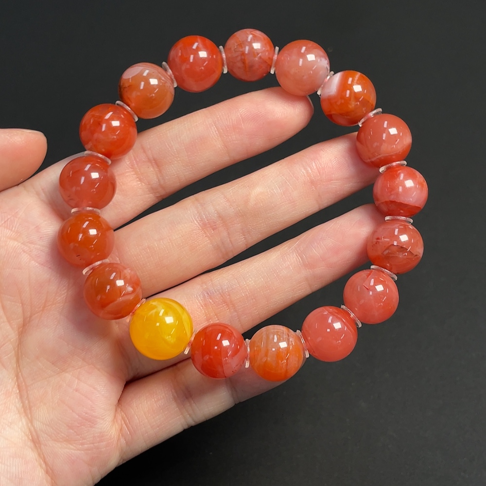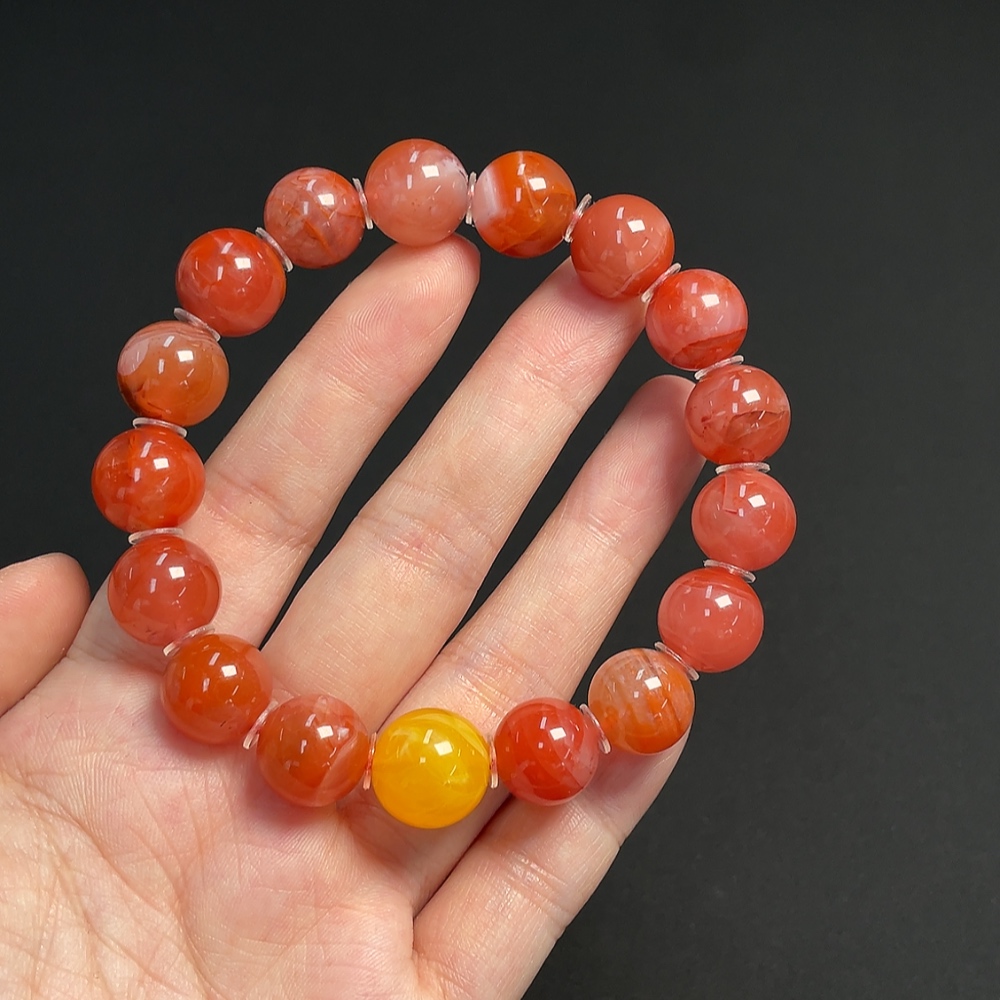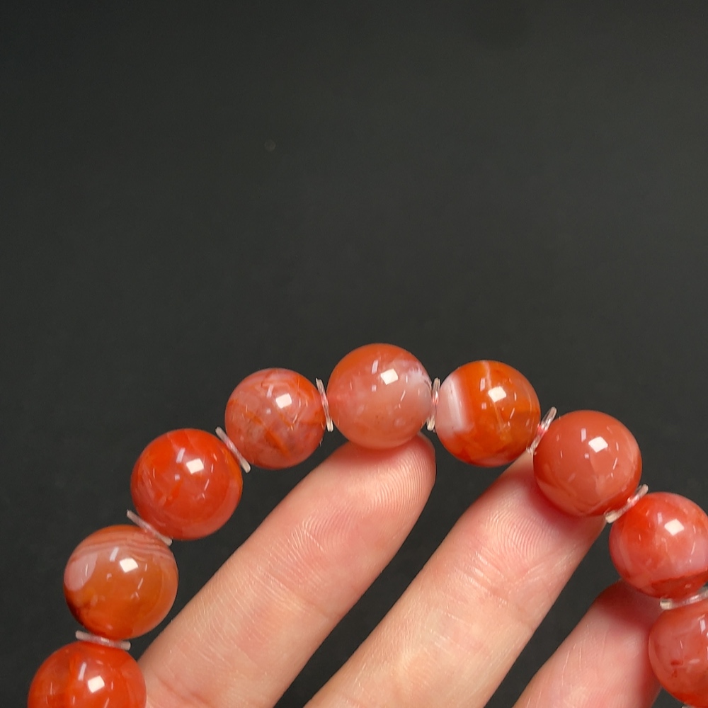 South Red Agate Bracelet with Visible Organic Matter, Possible Non-Natural Accent Stones, Total Weight Approx. 45.25g, Size Around 12.8mm