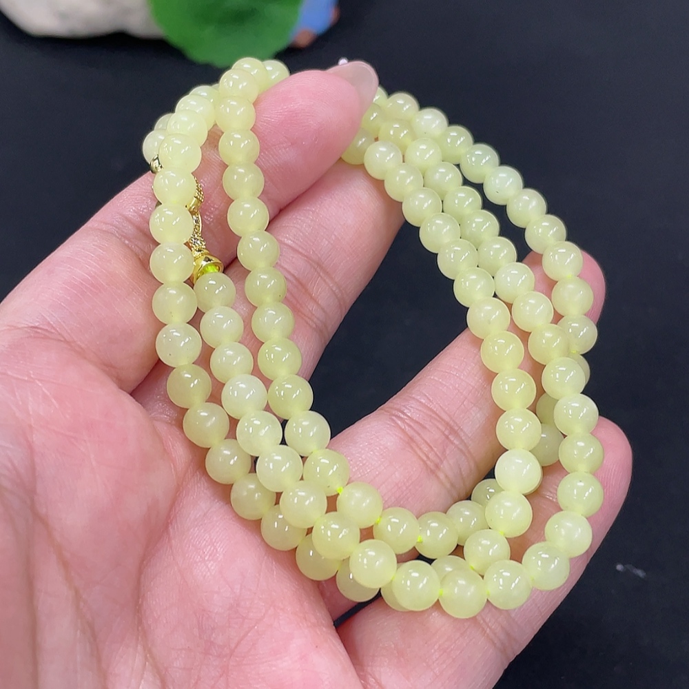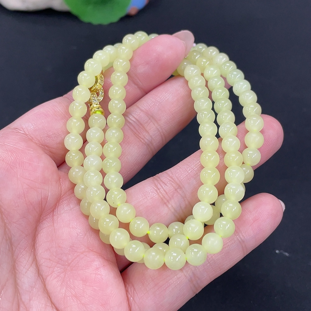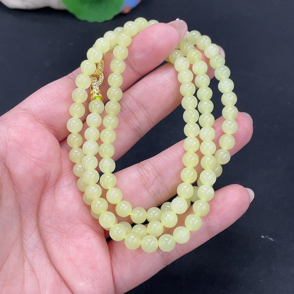 Hetian Jade Bead Necklace Approx. 5.7mm Non-Gold Total Weight Approx. 34.3g Non-Gold
