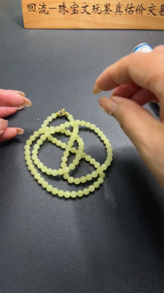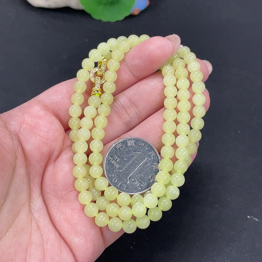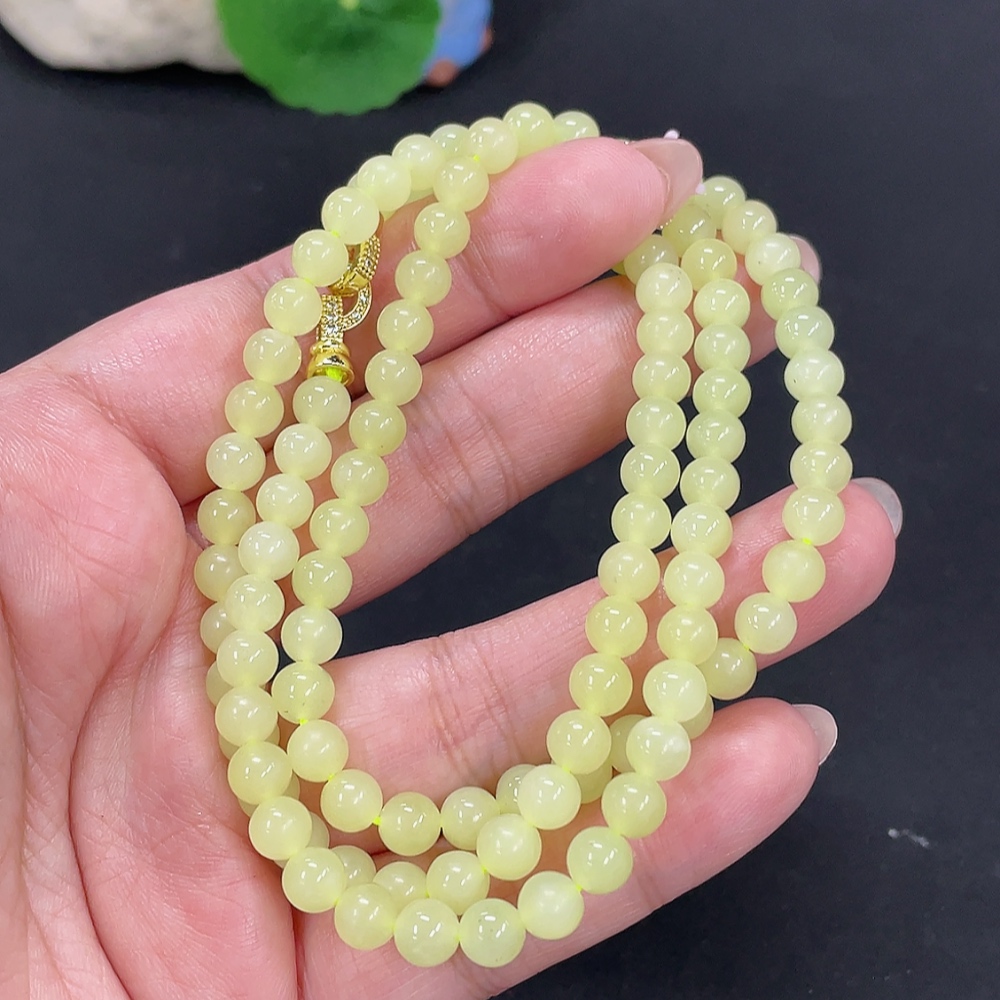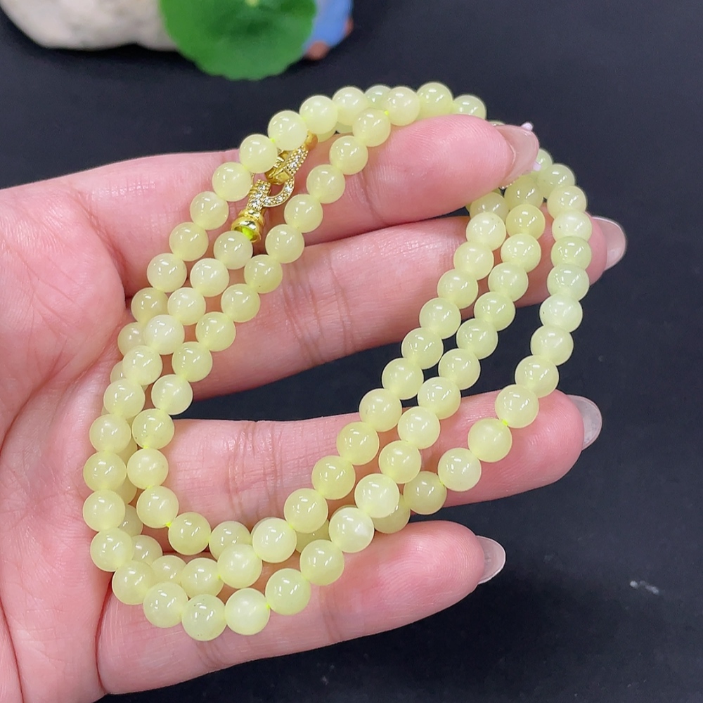 Hetian Jade Bead Necklace Approx. 5.7mm Non-Gold Total Weight Approx. 34.3g Non-Gold