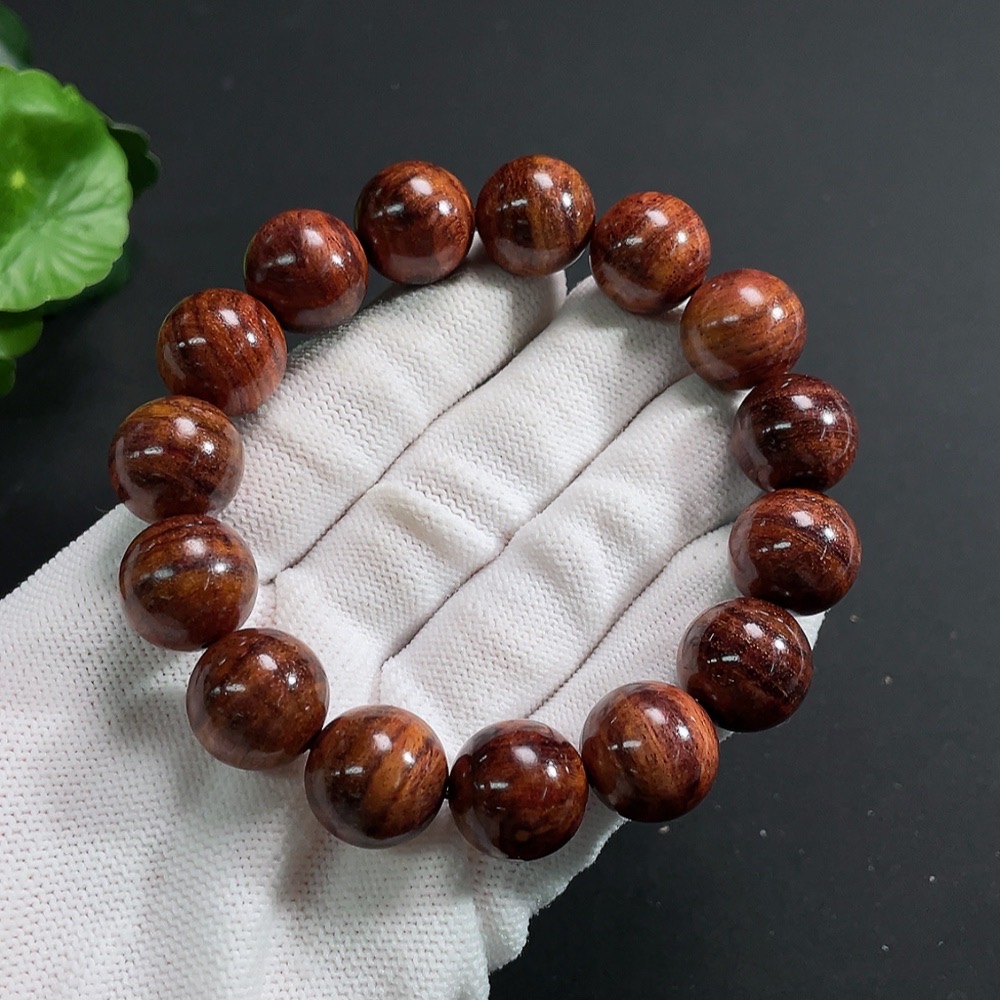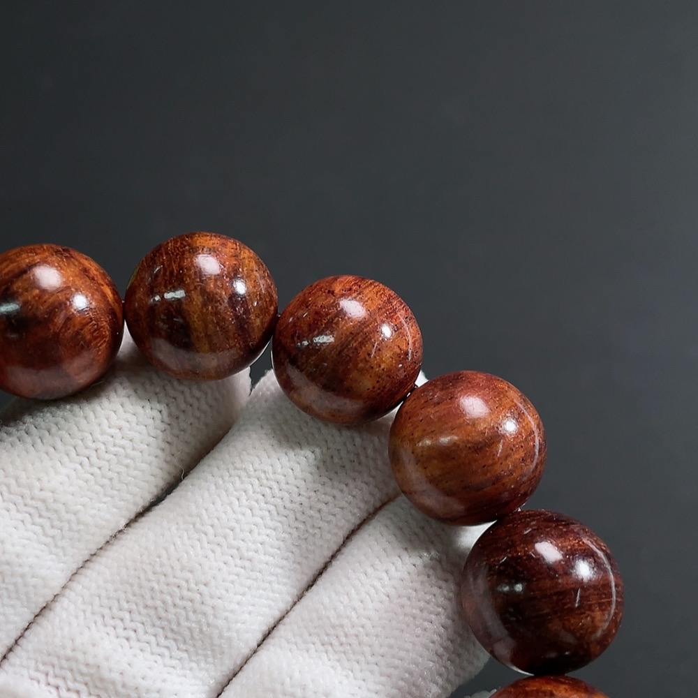 Huanghuali Wood Bracelet, Total Weight Approx. 24.4g, Bead Size 15mm