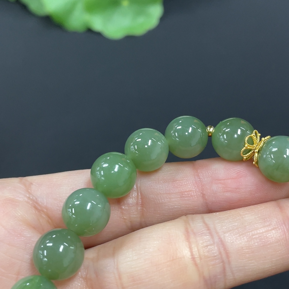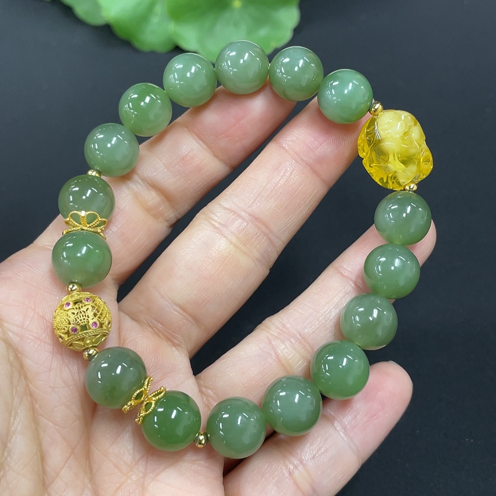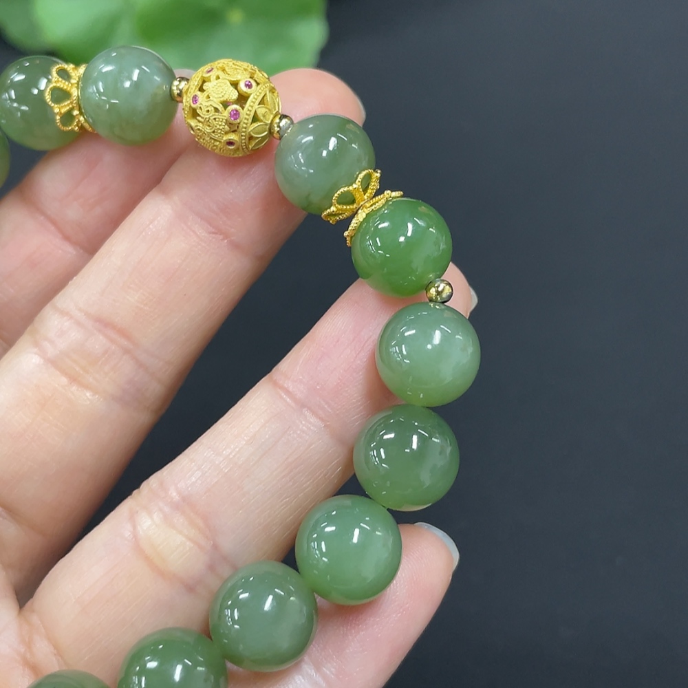 Hetian Jade Jasper Bracelet, approx. 9.8mm, non-gold inlaid, total weight about 27.5g, with non-Hetian Jade beads