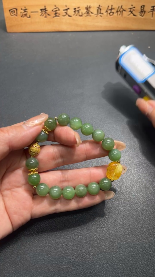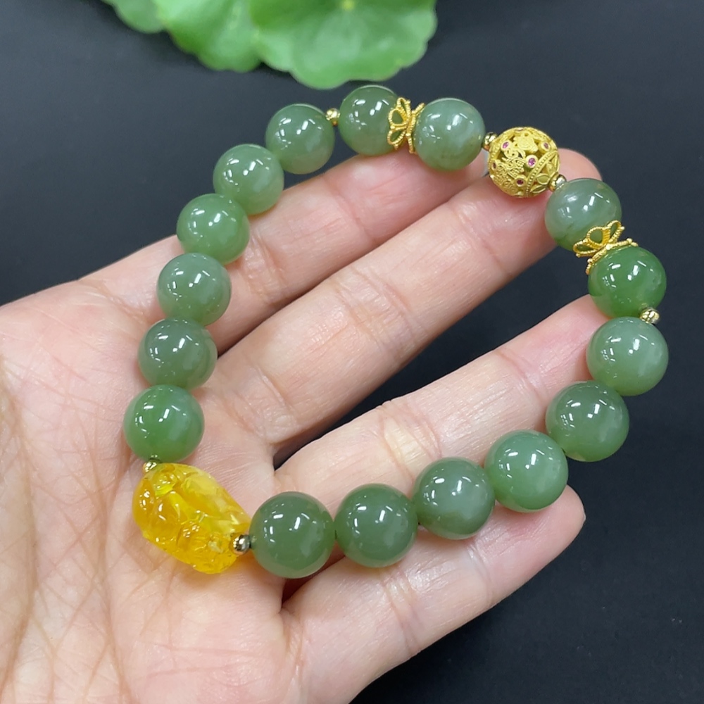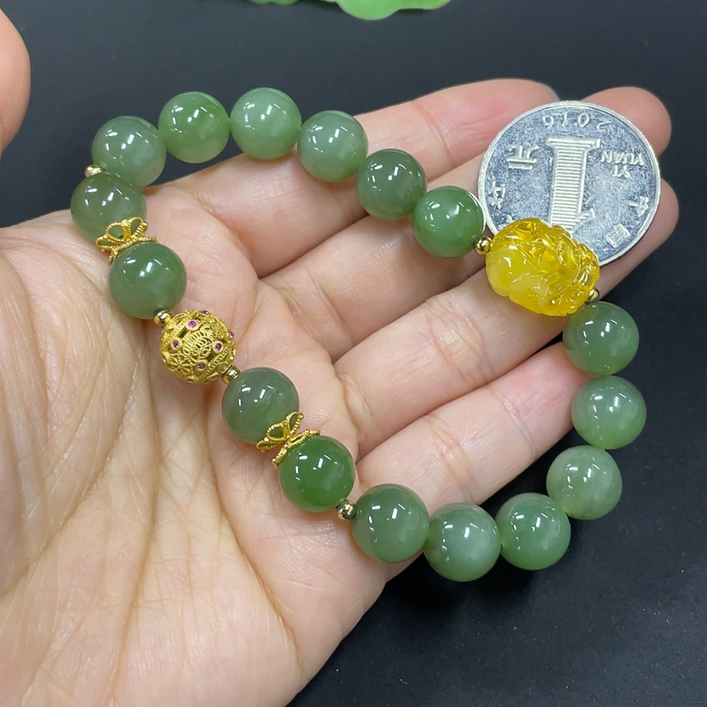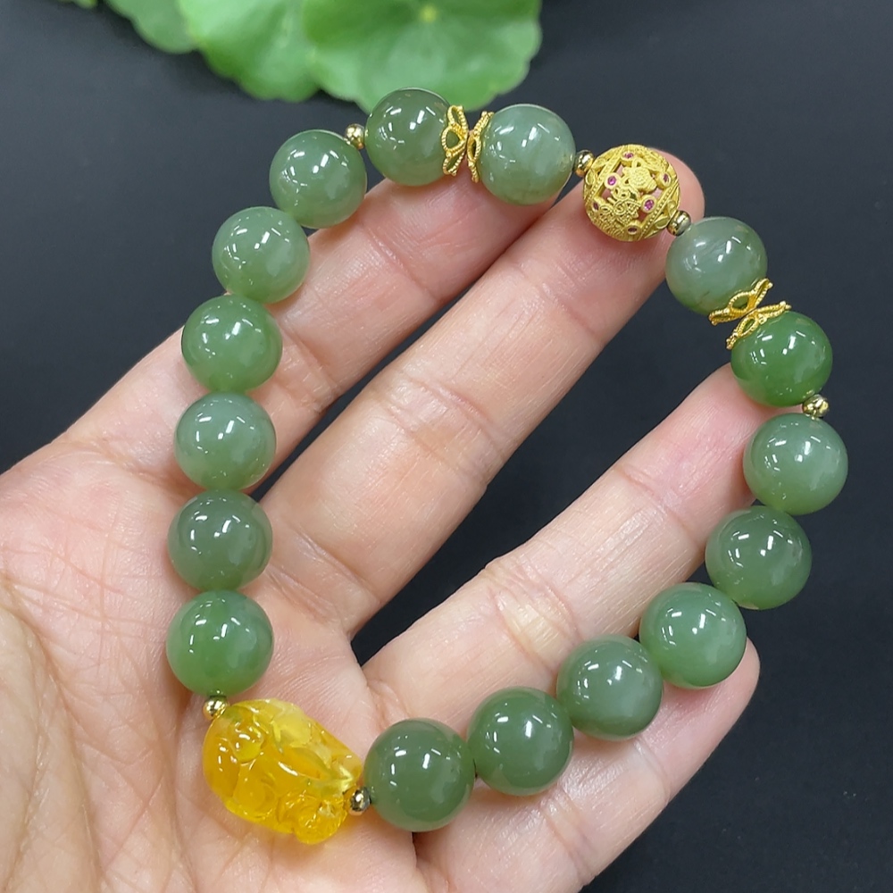 Hetian Jade Jasper Bracelet, approx. 9.8mm, non-gold inlaid, total weight about 27.5g, with non-Hetian Jade beads