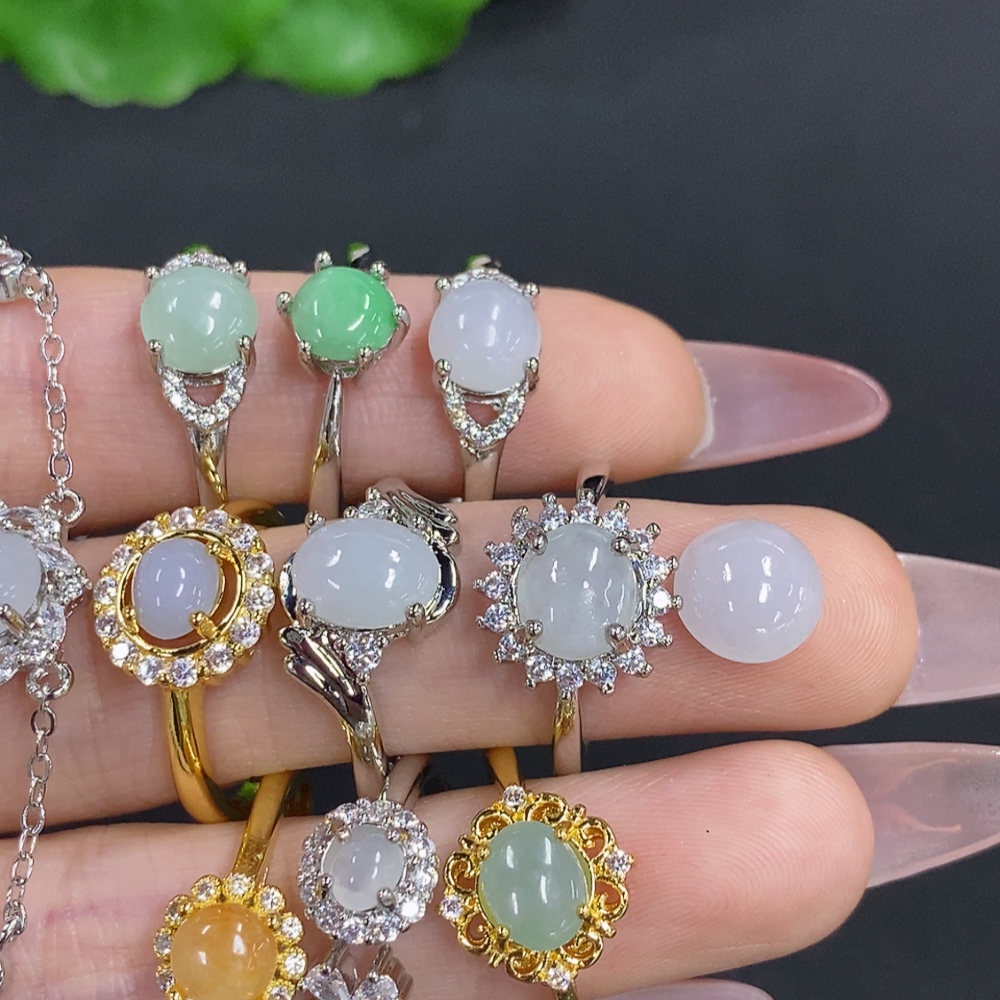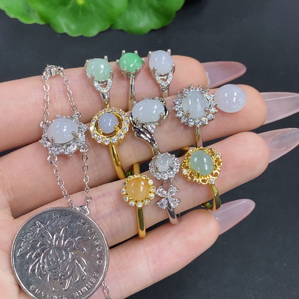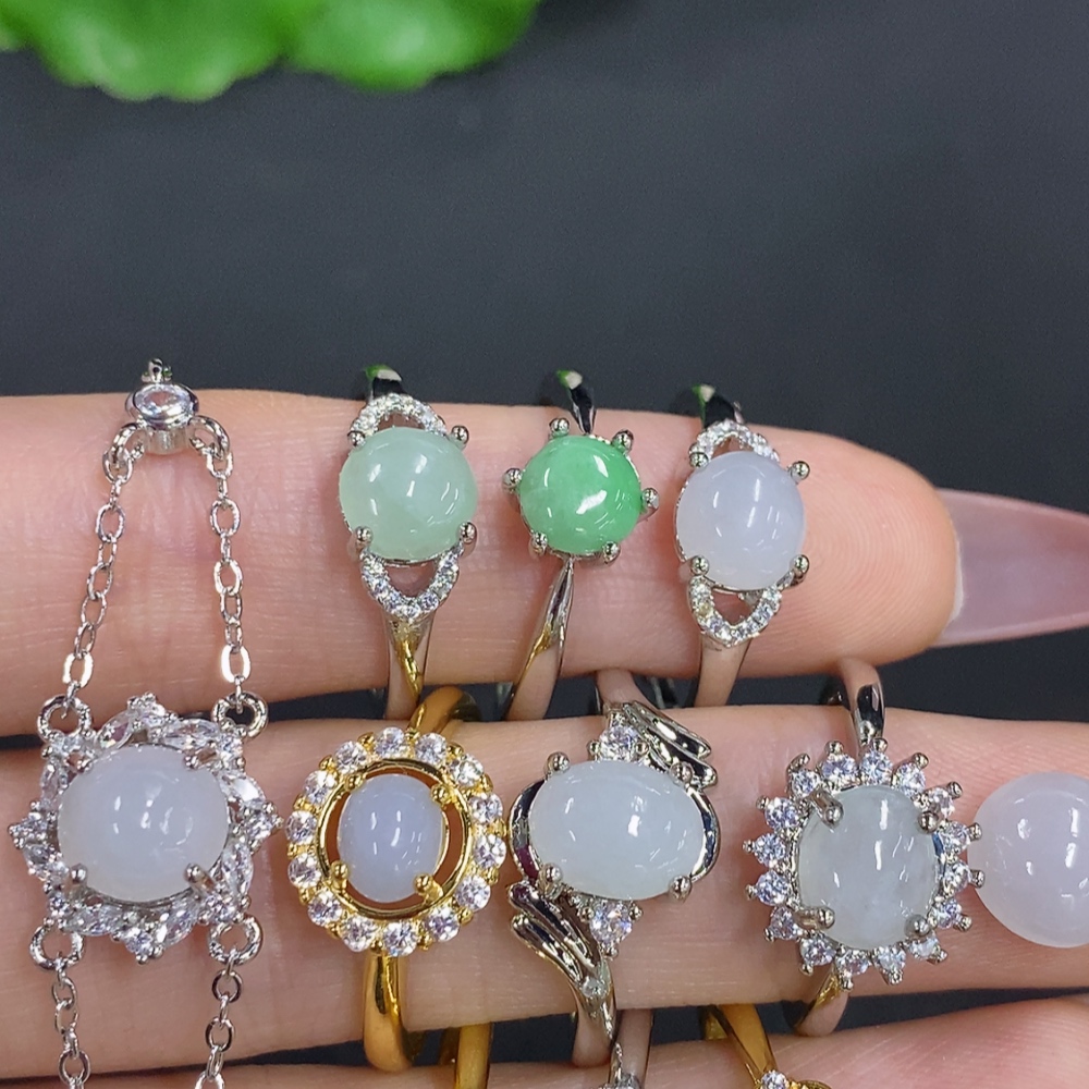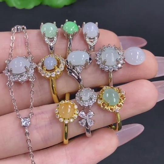 Jadeite Inlaid Bracelet with Ring and Cabochon Sell as a Lot Adjustable Size Non-Gold Inlaid