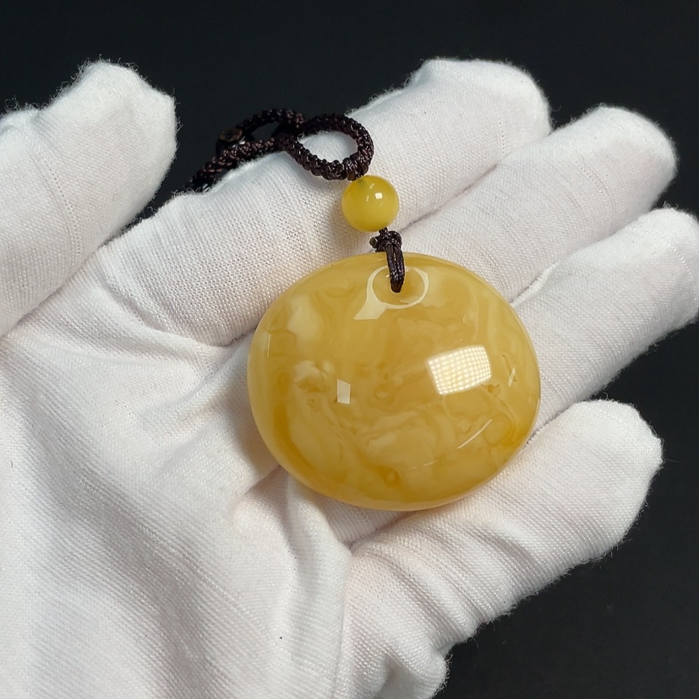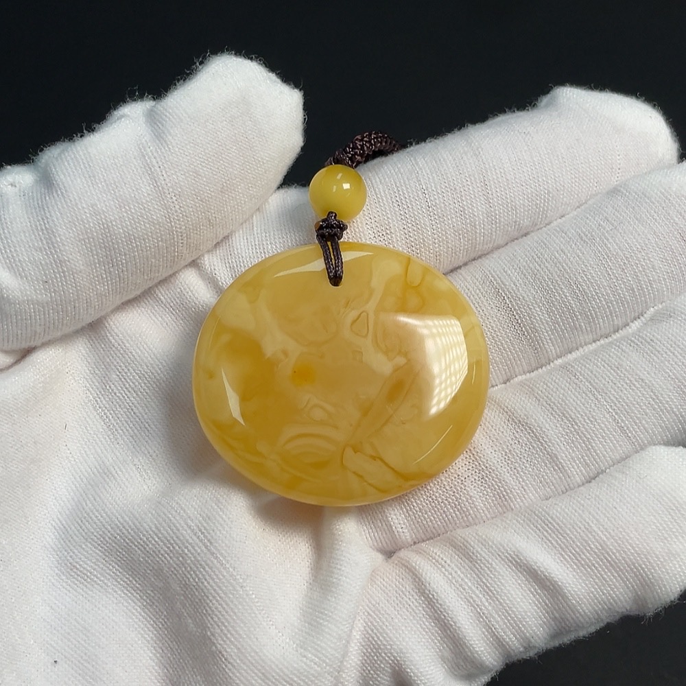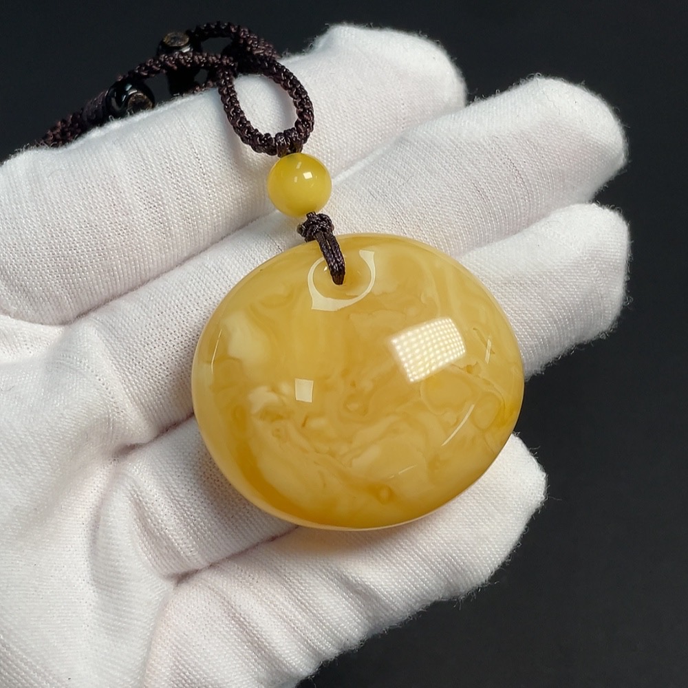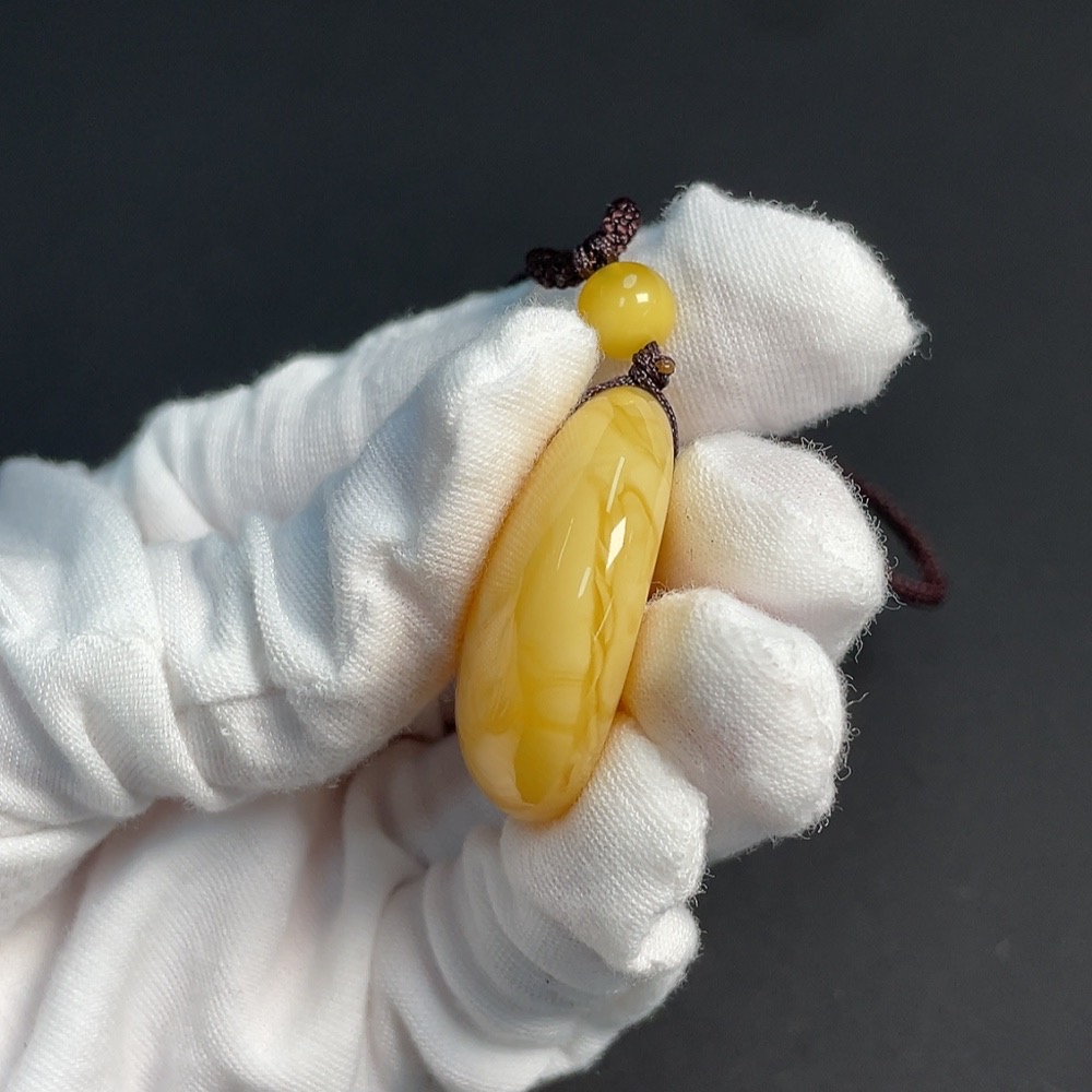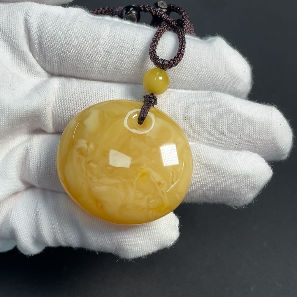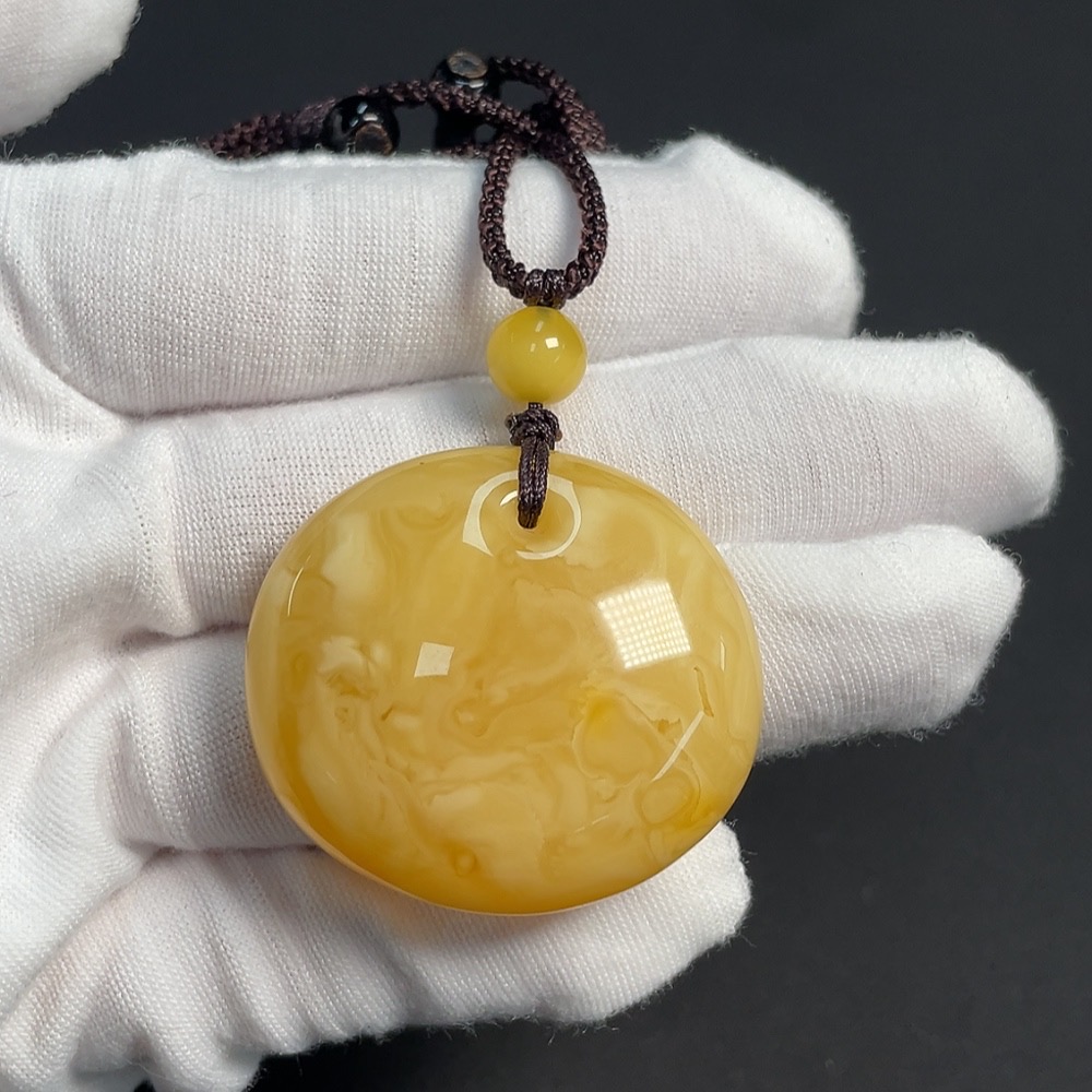 Amber Beeswax Pendant, Total Weight Including Cord Approx. 12.34g, Stones May Not Be Natural