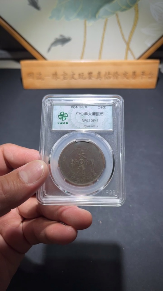 Qing Dynasty Copper Coin with 'Feng' in Center, 20 Wen Copper Coin