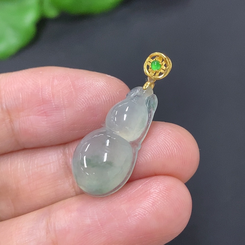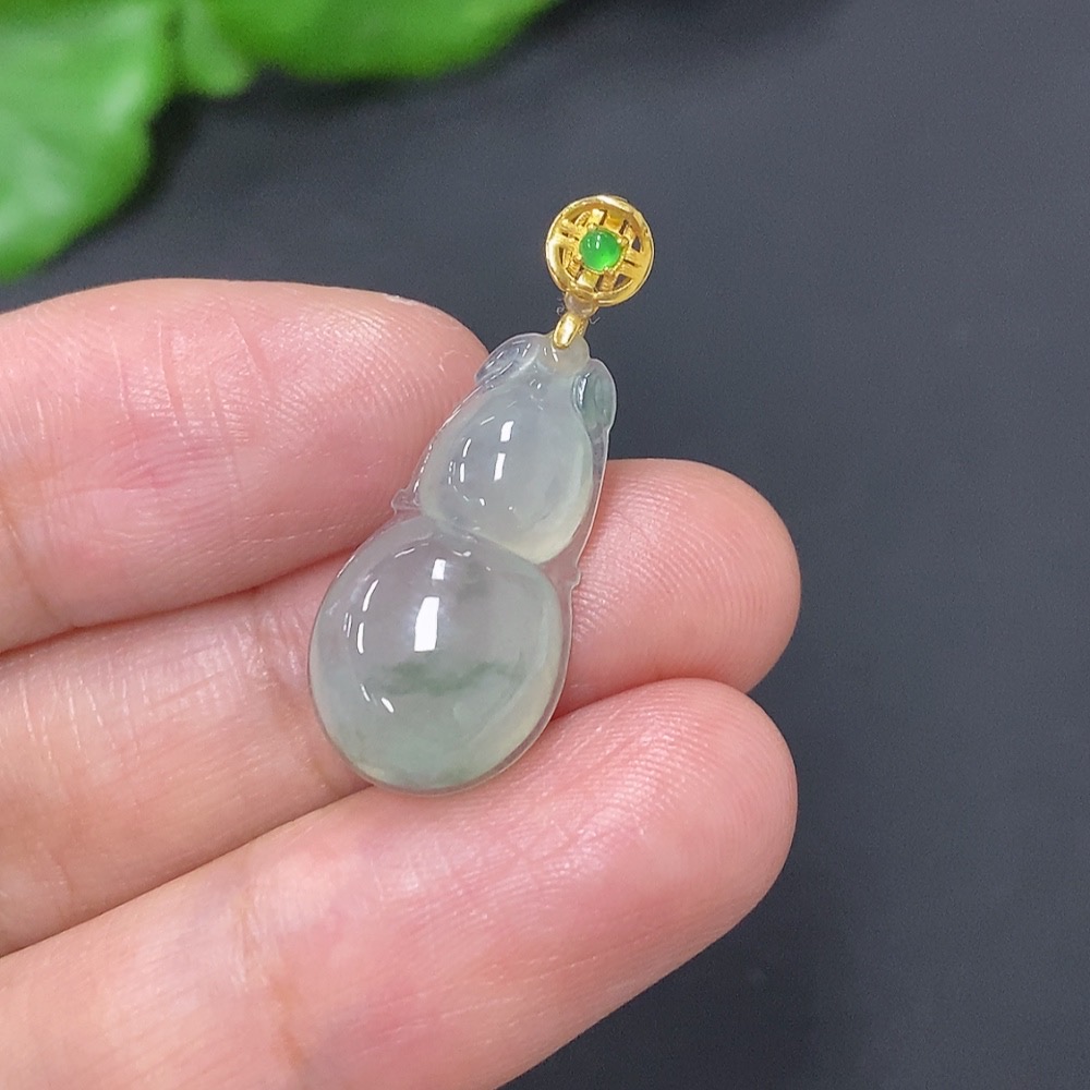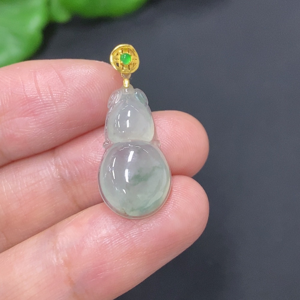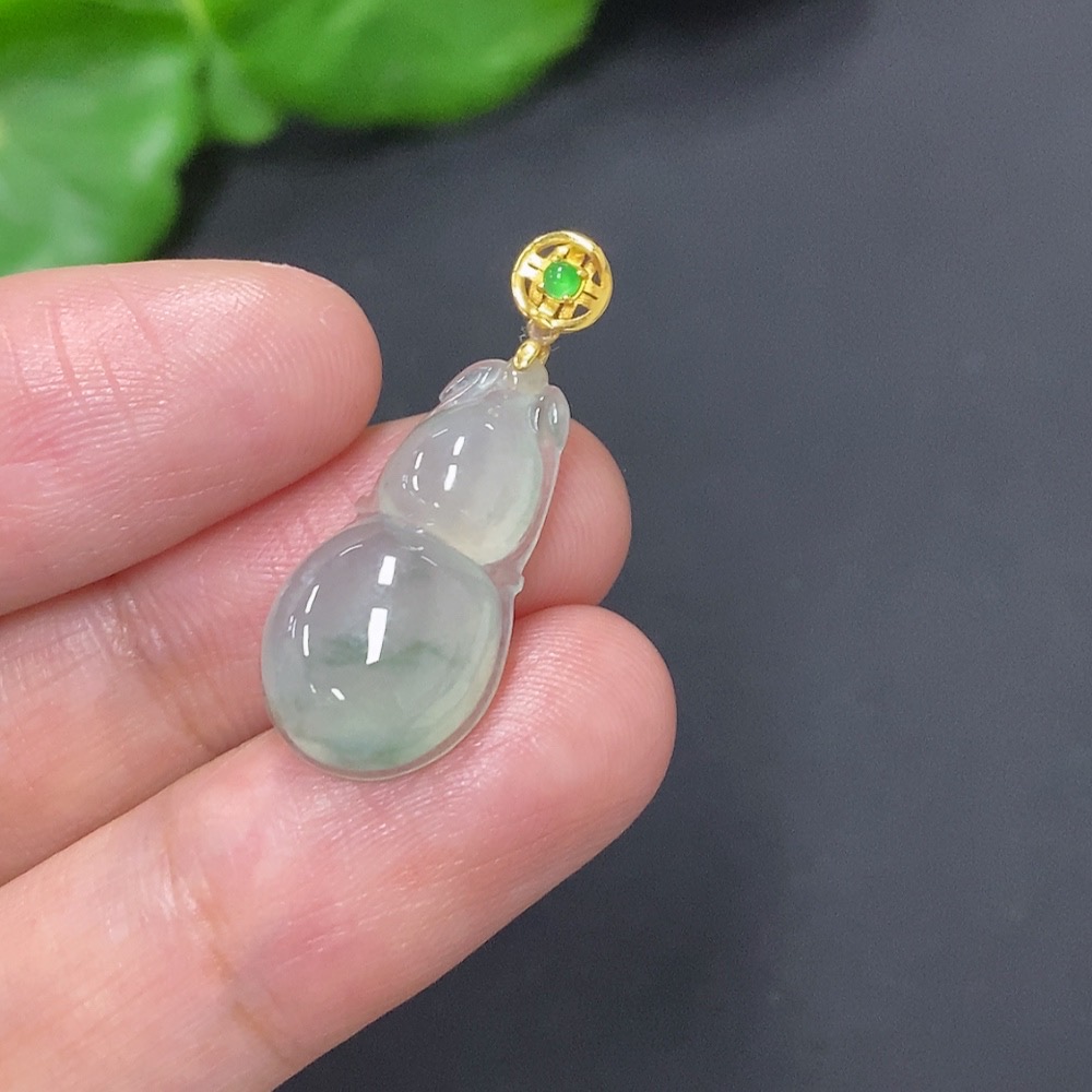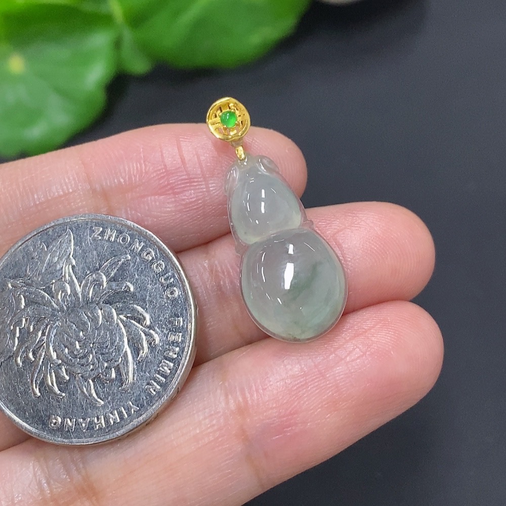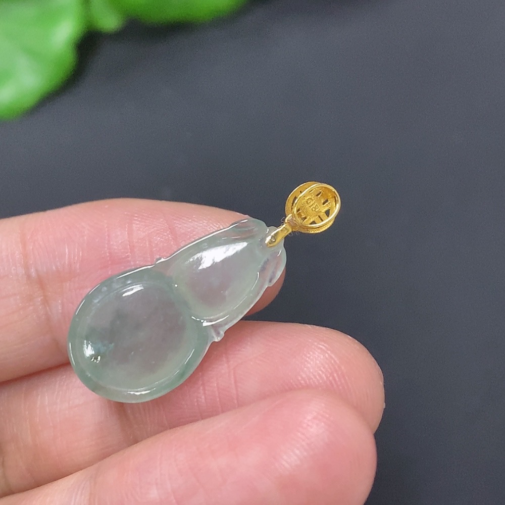 Jadeite Gourd Pendant with 18K Gold Clasp, Total Weight Approximately 2g
