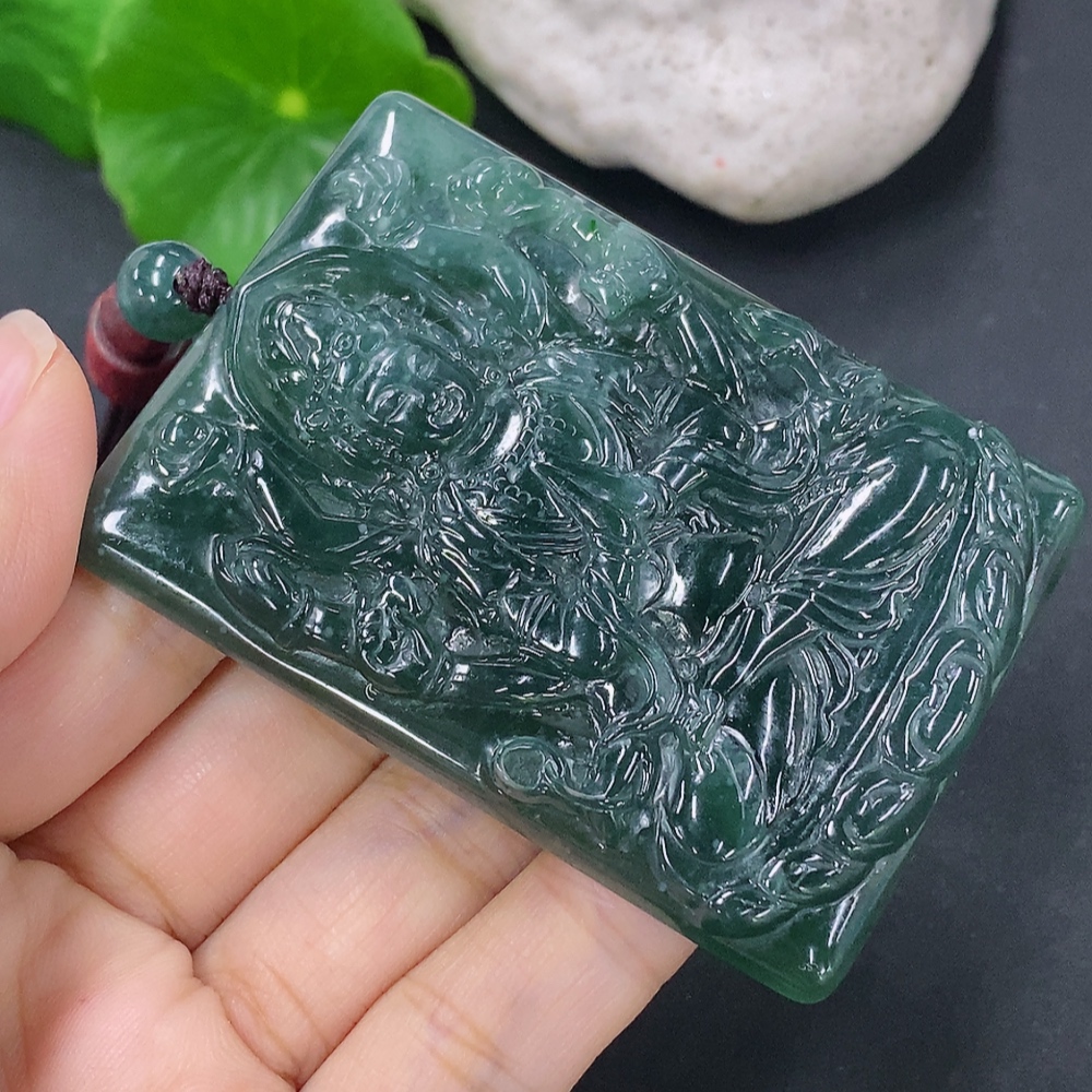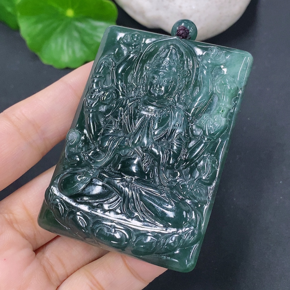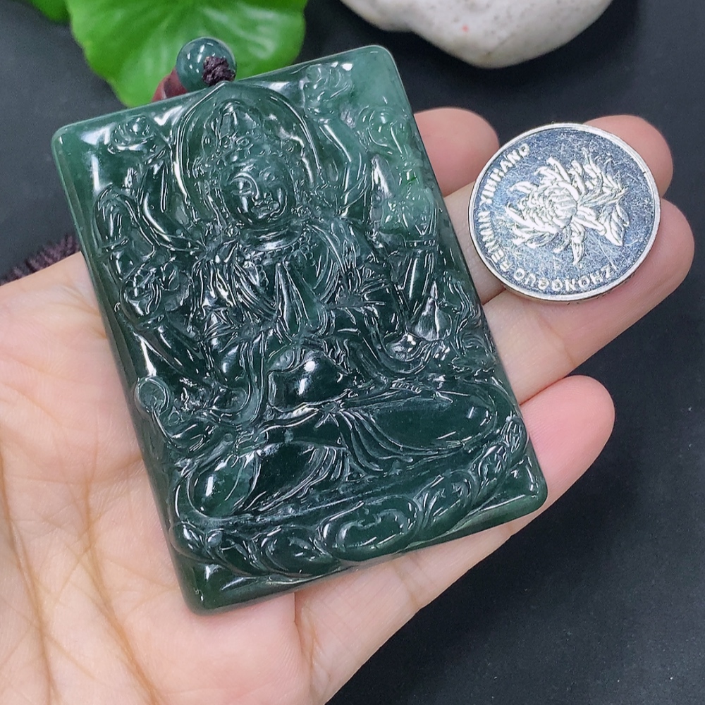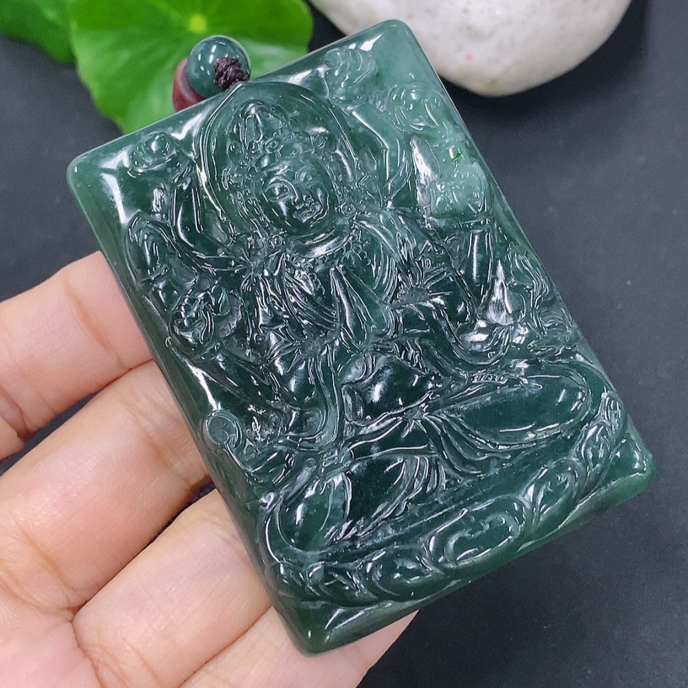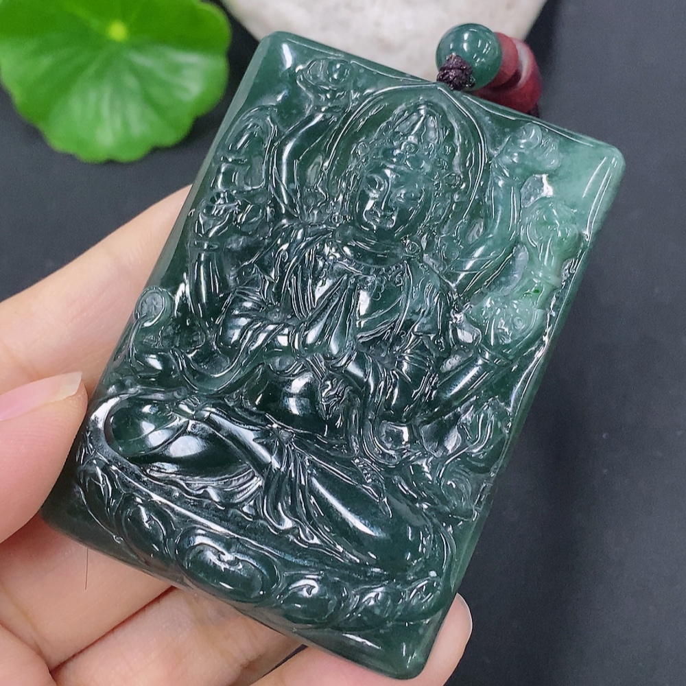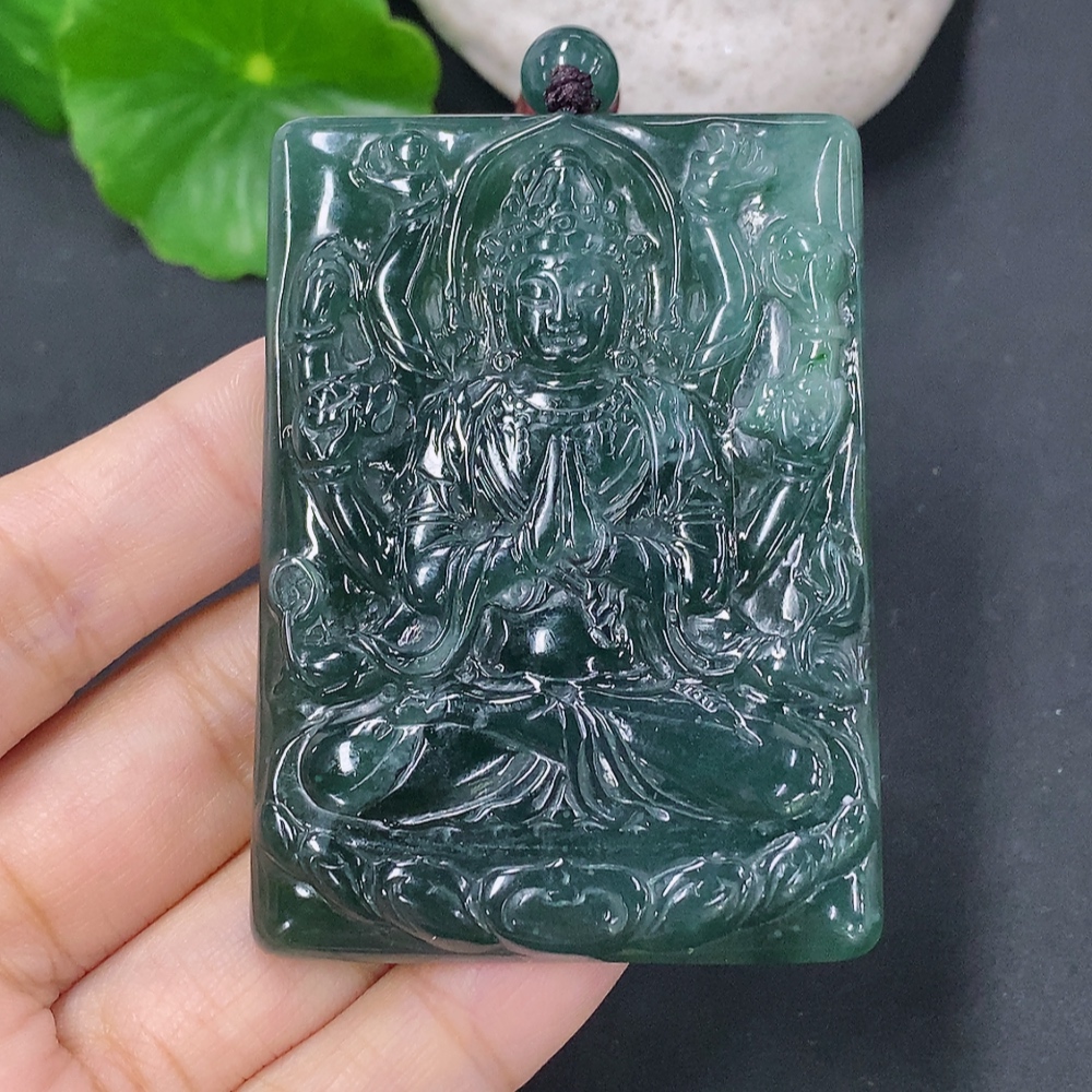 Jadeite Pendant of Thousand-Hand Guanyin, Total Weight Including Rope: 44.63g