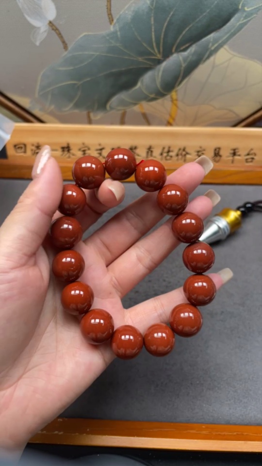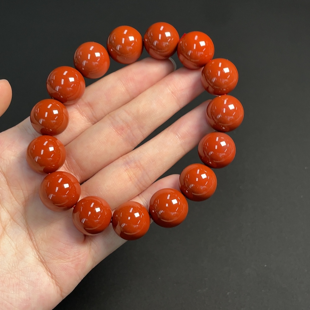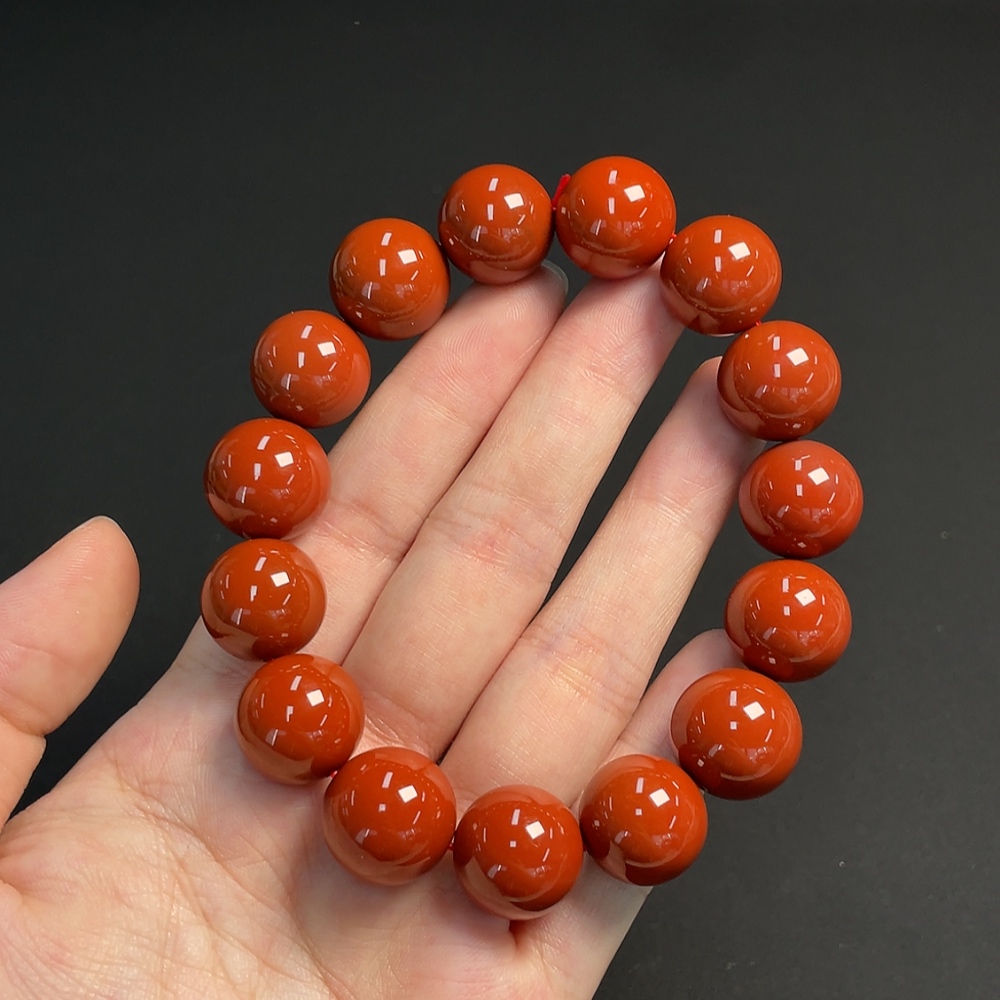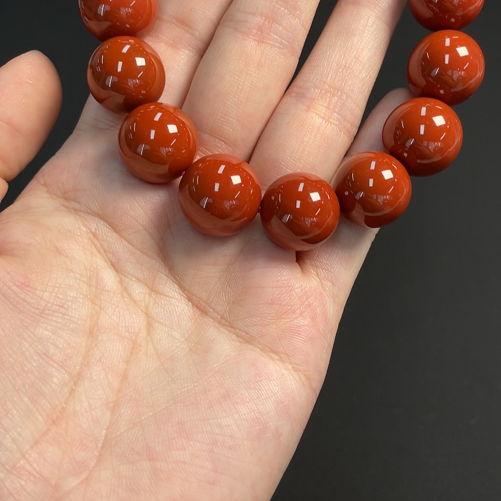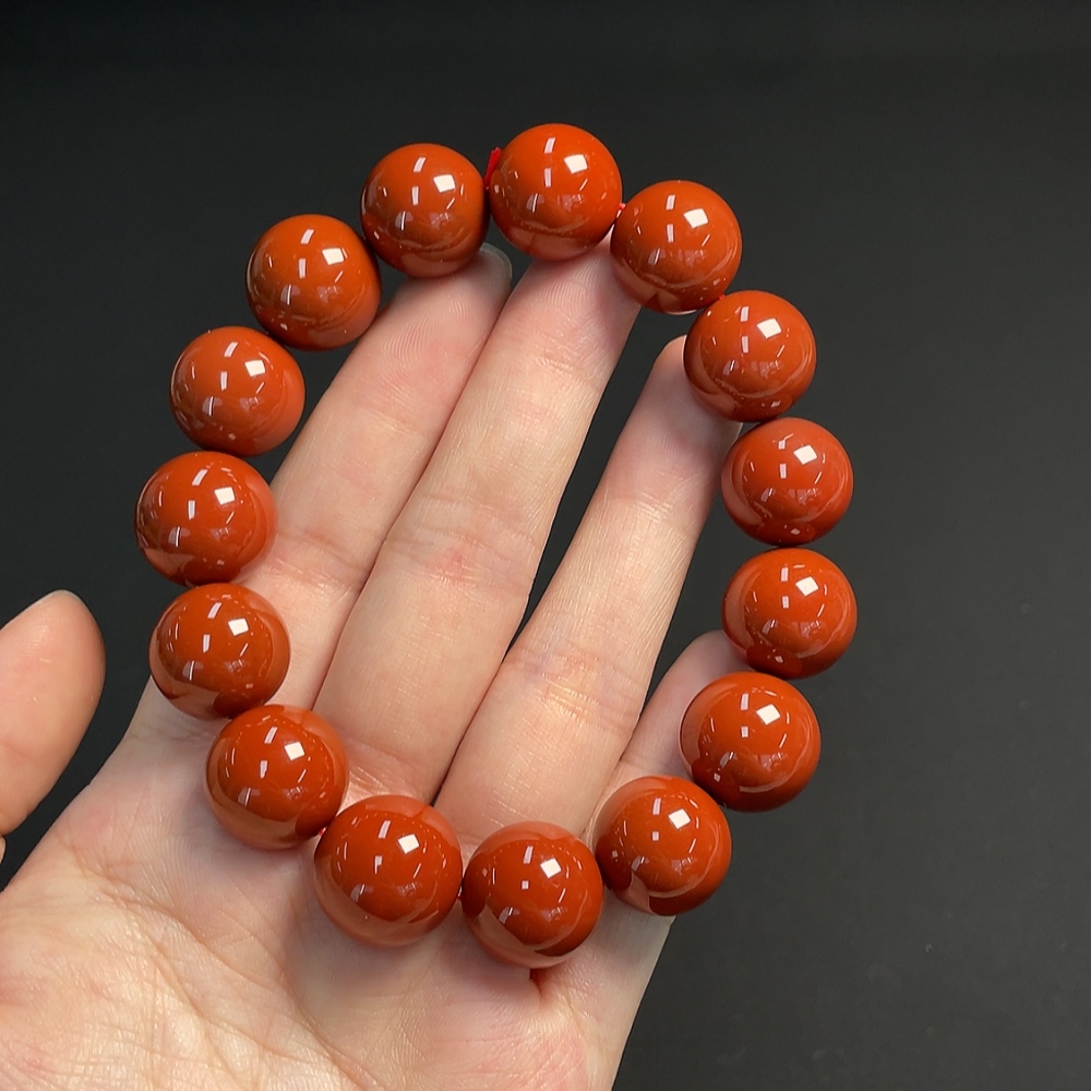 South Red Agate Bracelet with Visible Organic Matter, Total Weight Approximately 73.33g, Size About 15.5mm