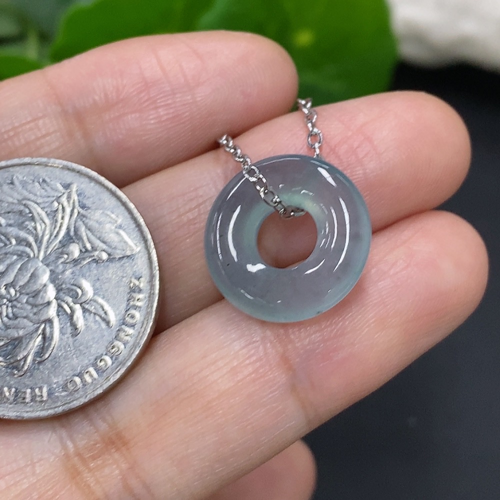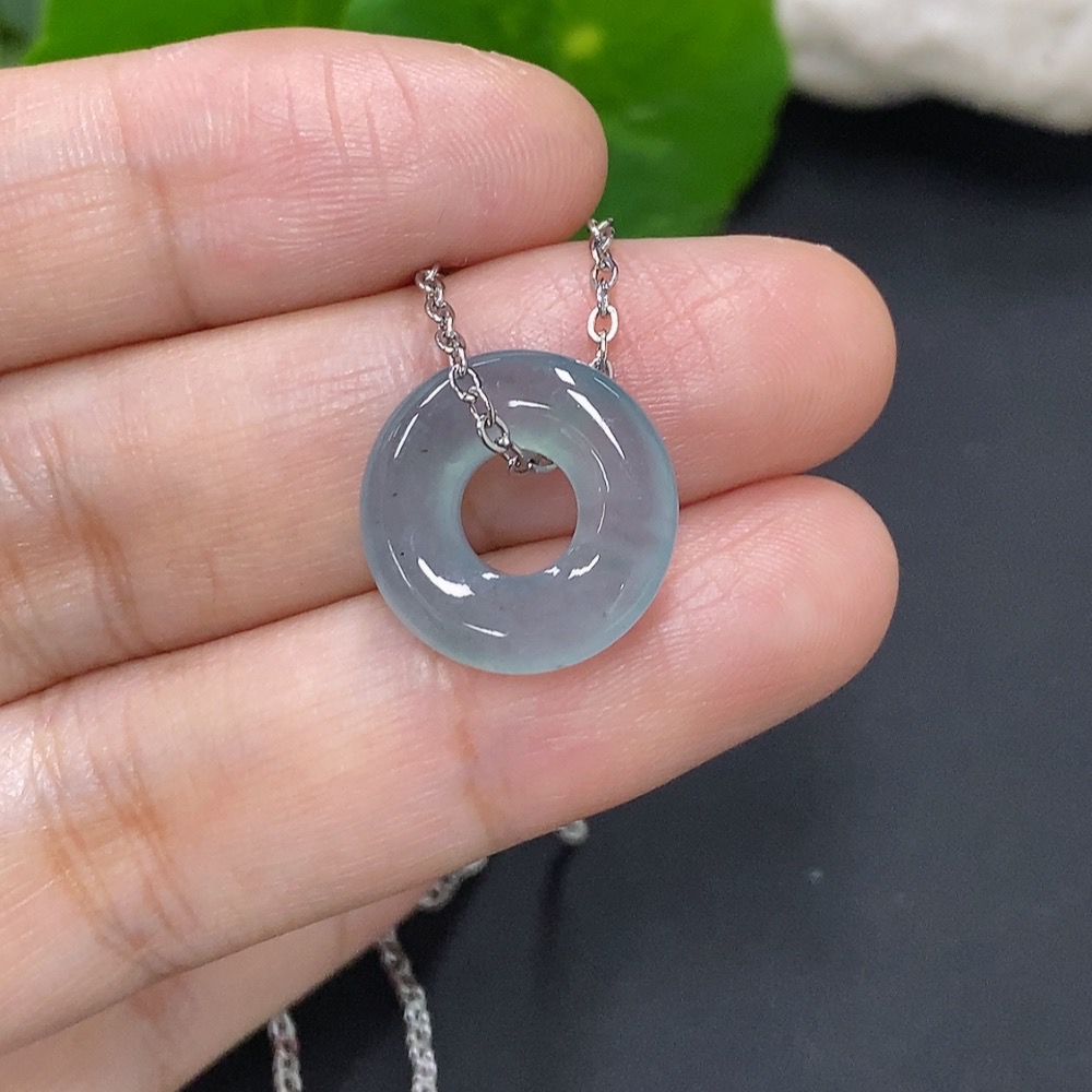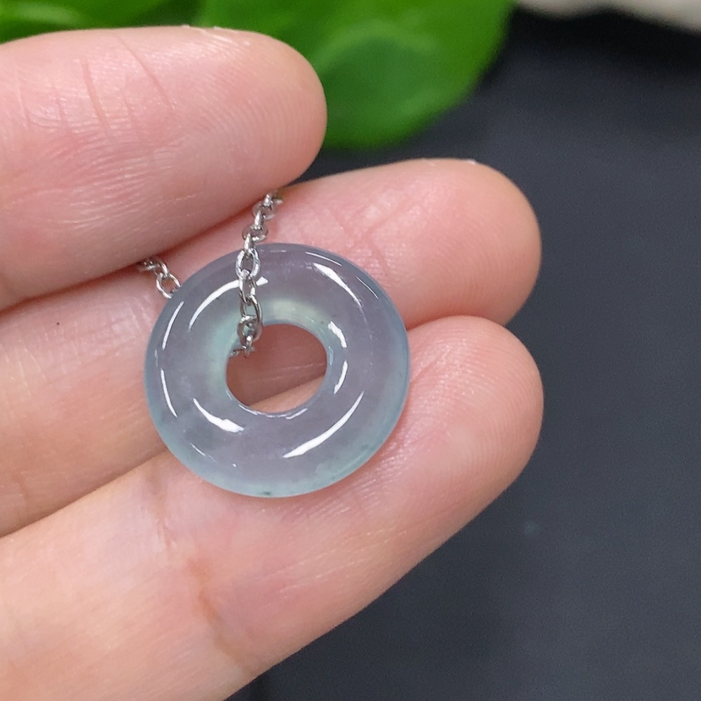 Jadeite Donut Pendant Non-Gold Inlaid Total Weight Approx. 3.4g (Including Chain)