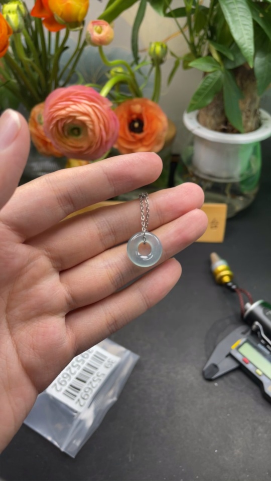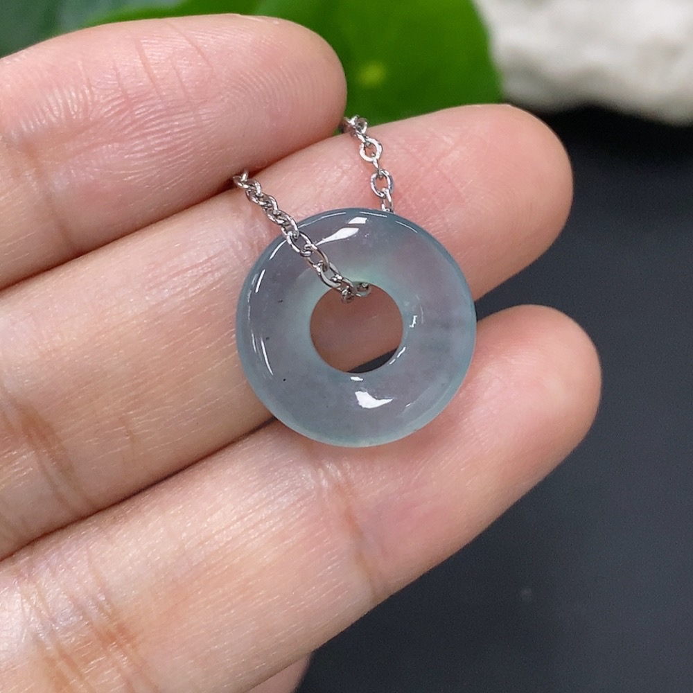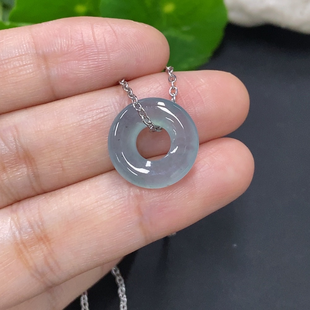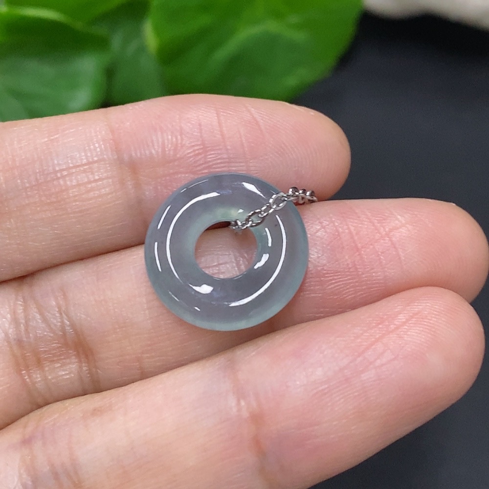 Jadeite Donut Pendant Non-Gold Inlaid Total Weight Approx. 3.4g (Including Chain)