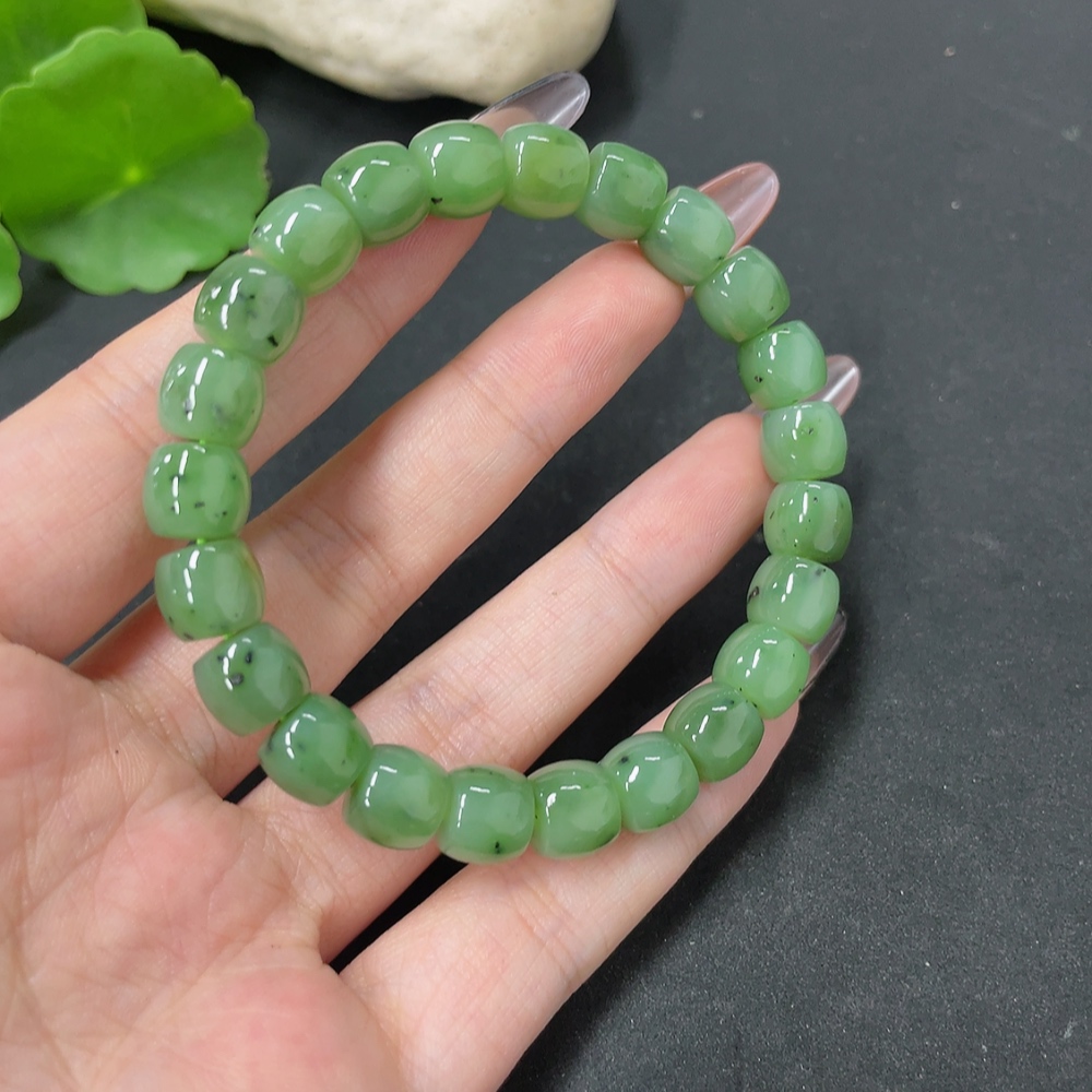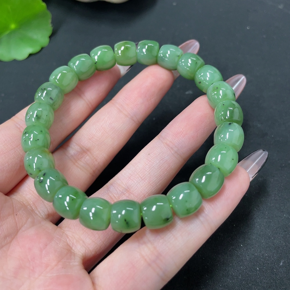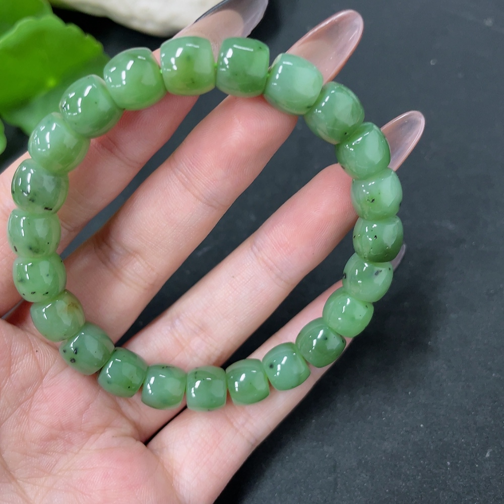 Hetian Jade Bead Necklace, approx. 8.7mm, total weight approx. 28.3g