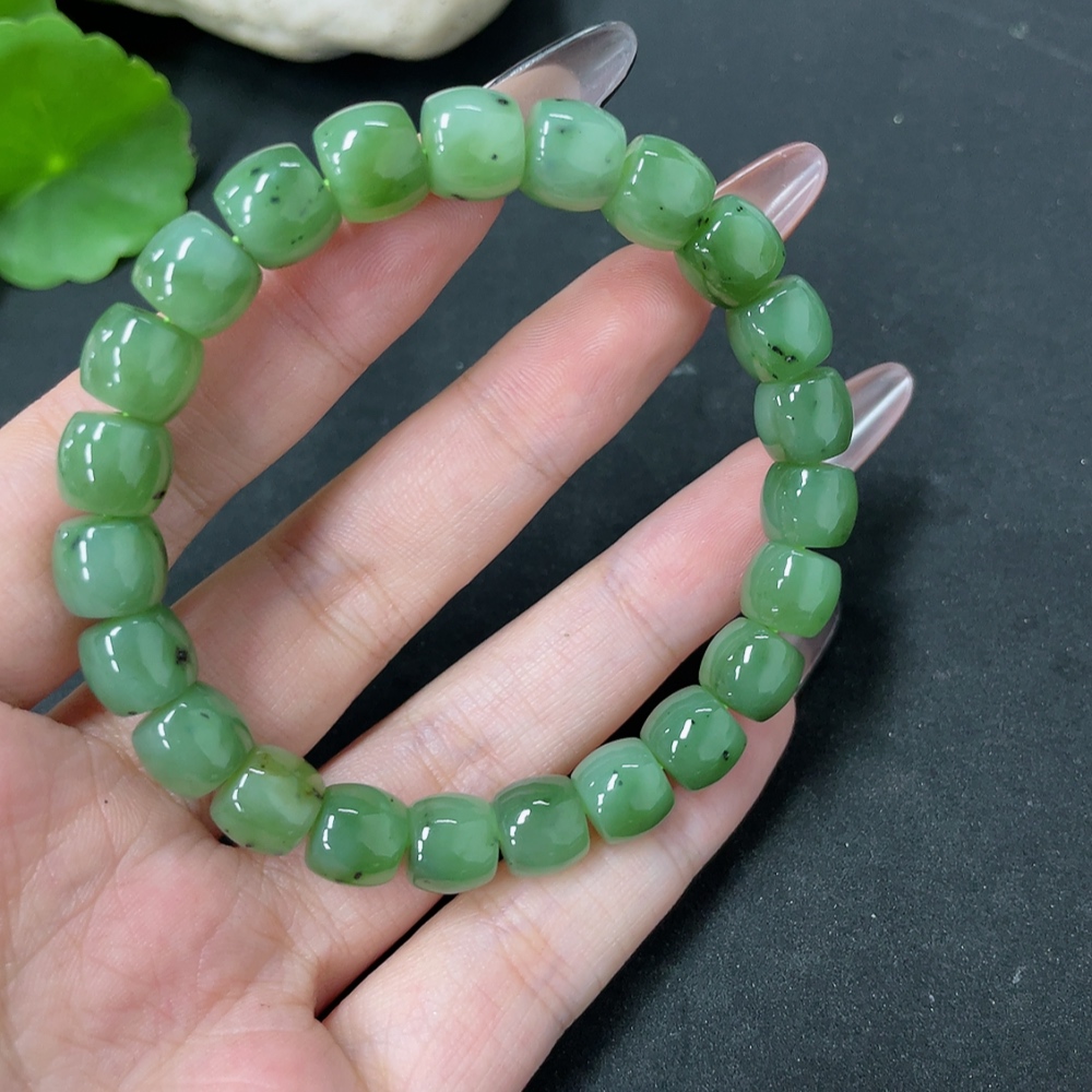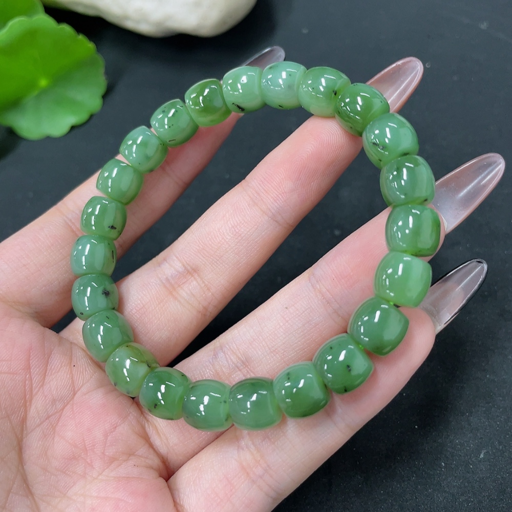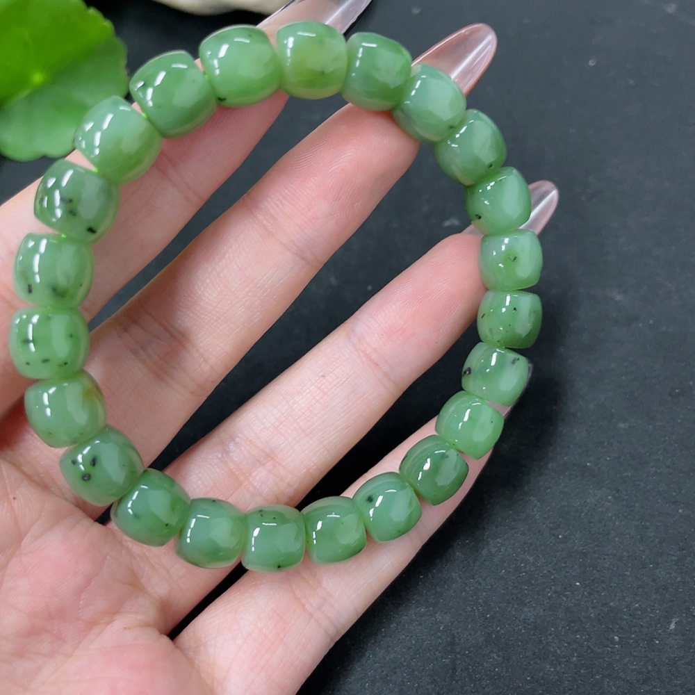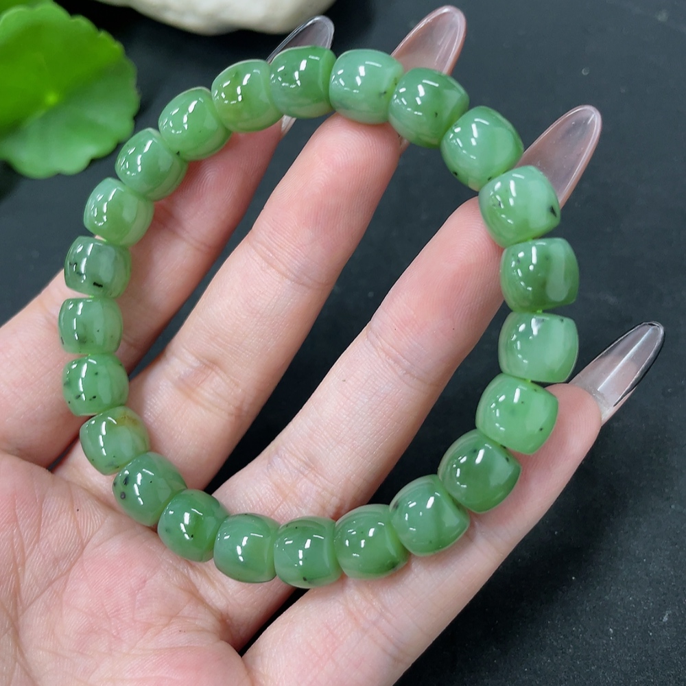 Hetian Jade Bead Necklace, approx. 8.7mm, total weight approx. 28.3g